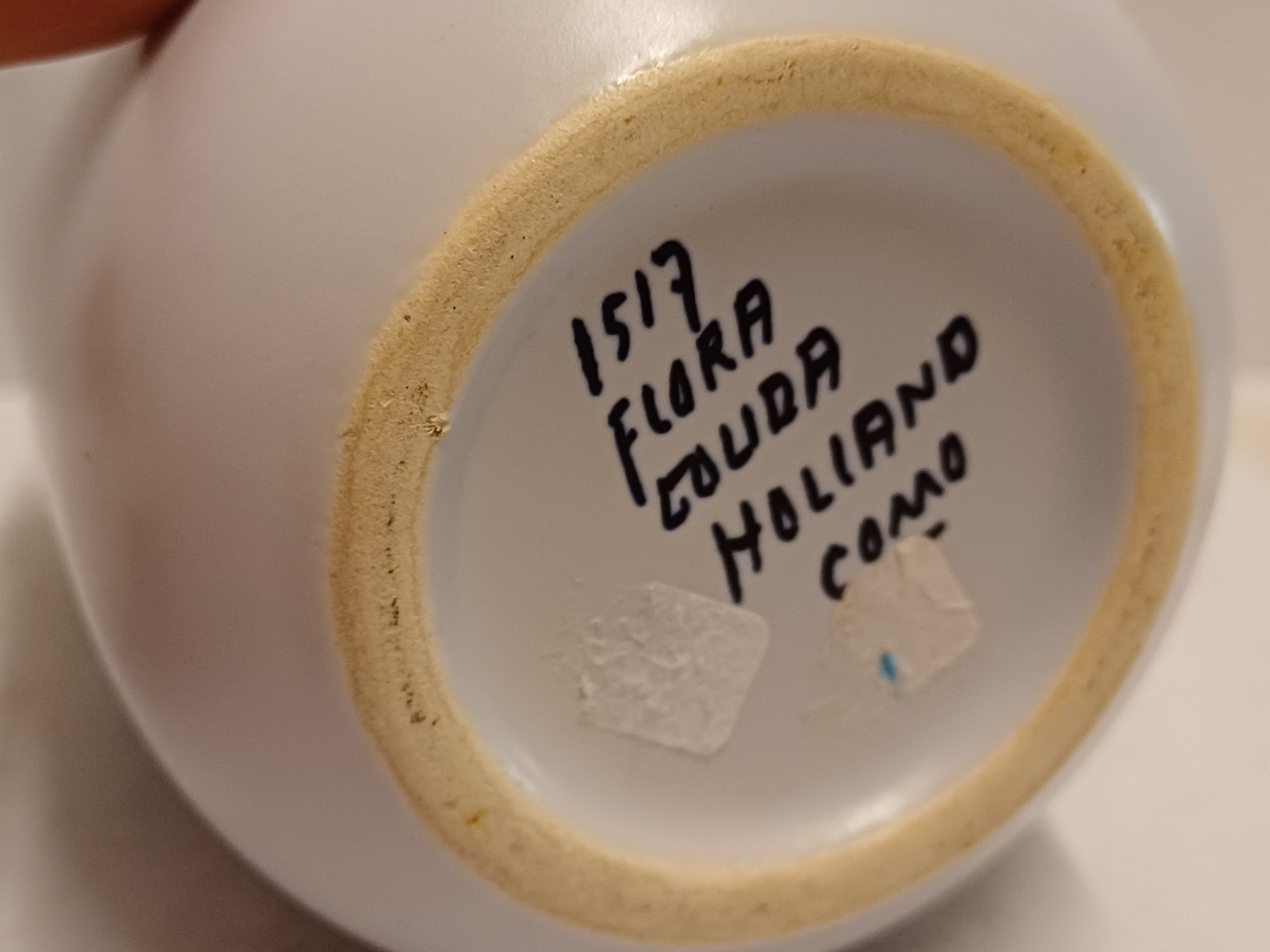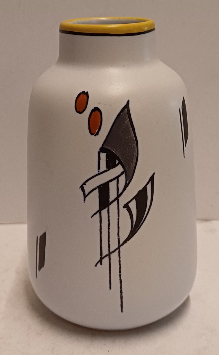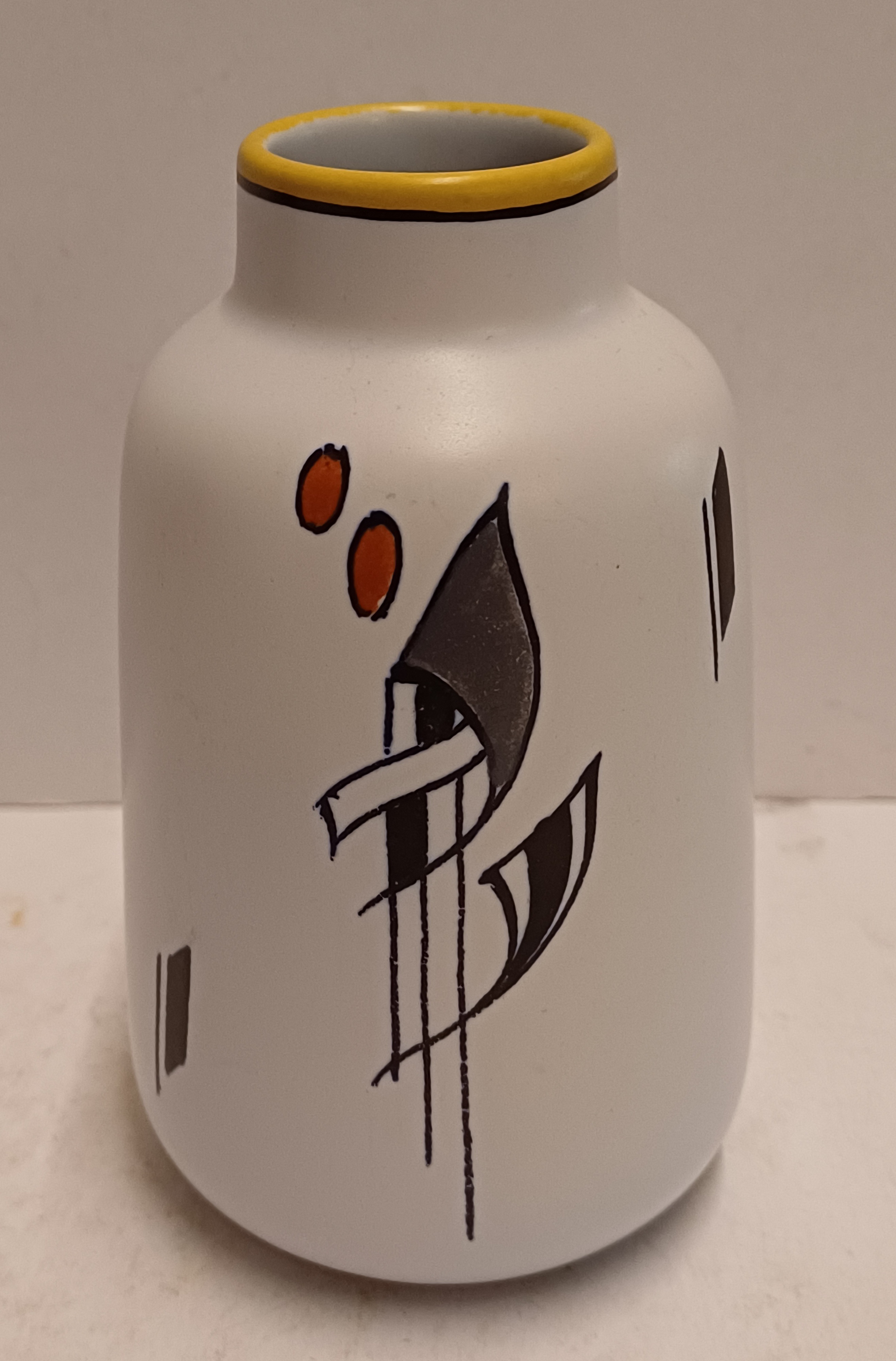 Vase en faïence avec décor sixties Como. Dessous avec marque peinte et numéro de modèle.