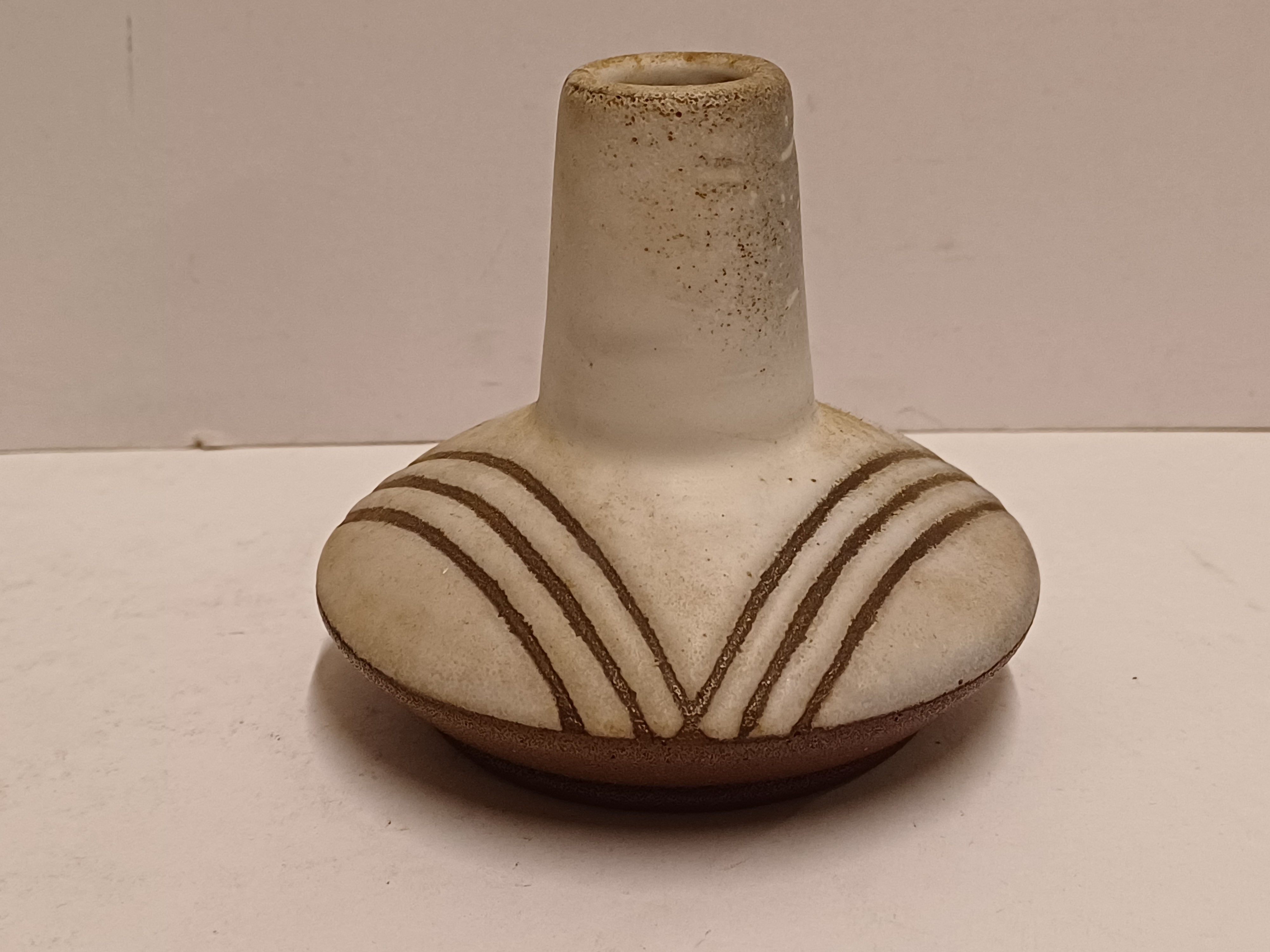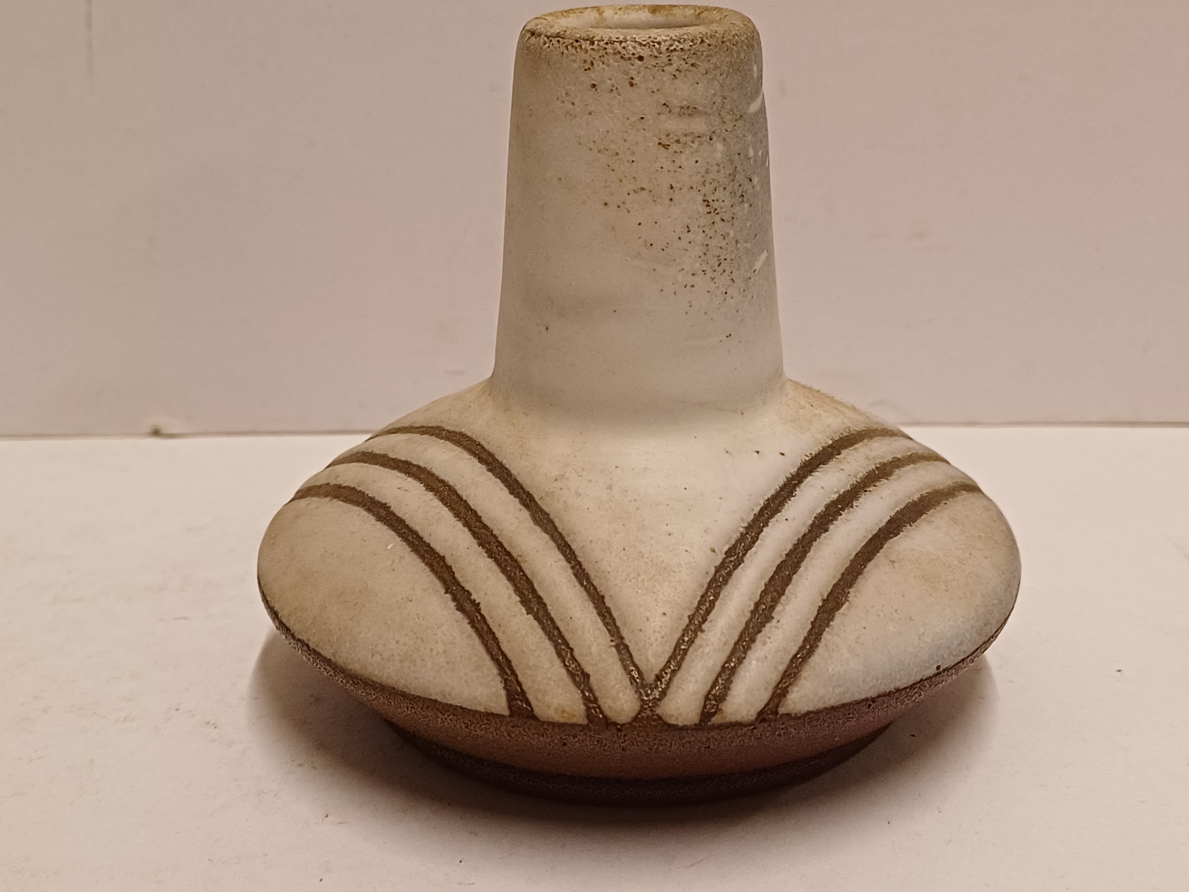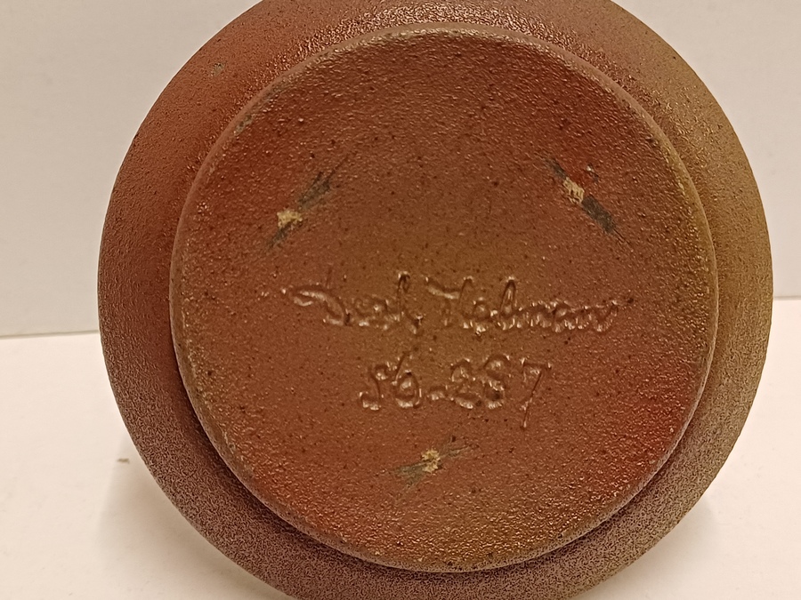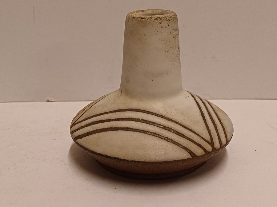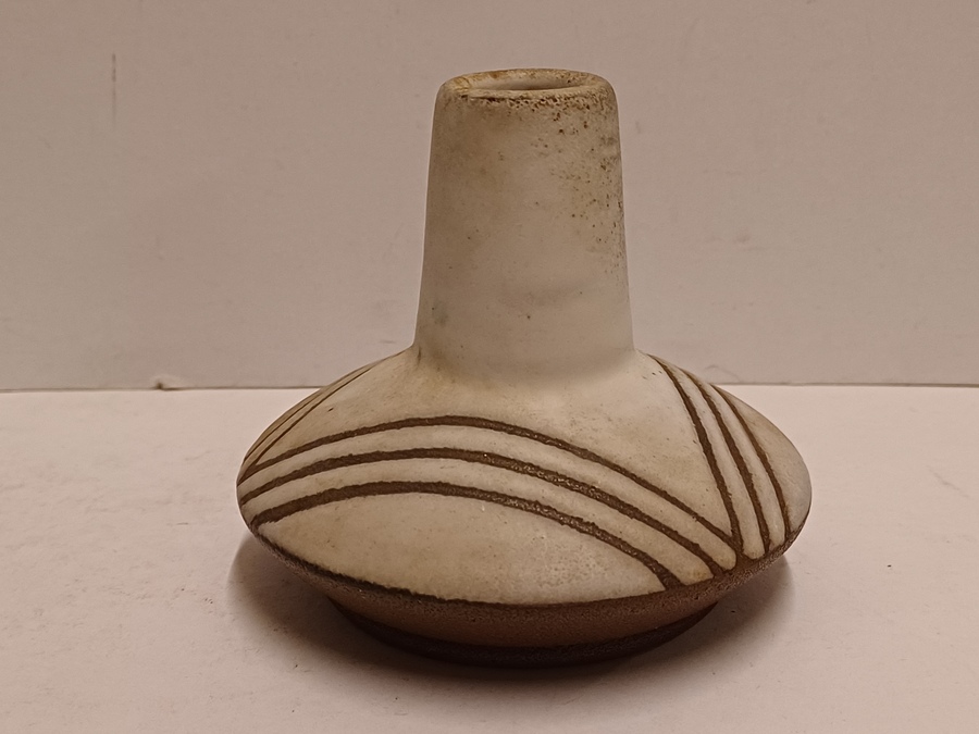 Vase en terracotta avec glaçure blanche et décor évidé. Base avec signature et datation (19)56-257.