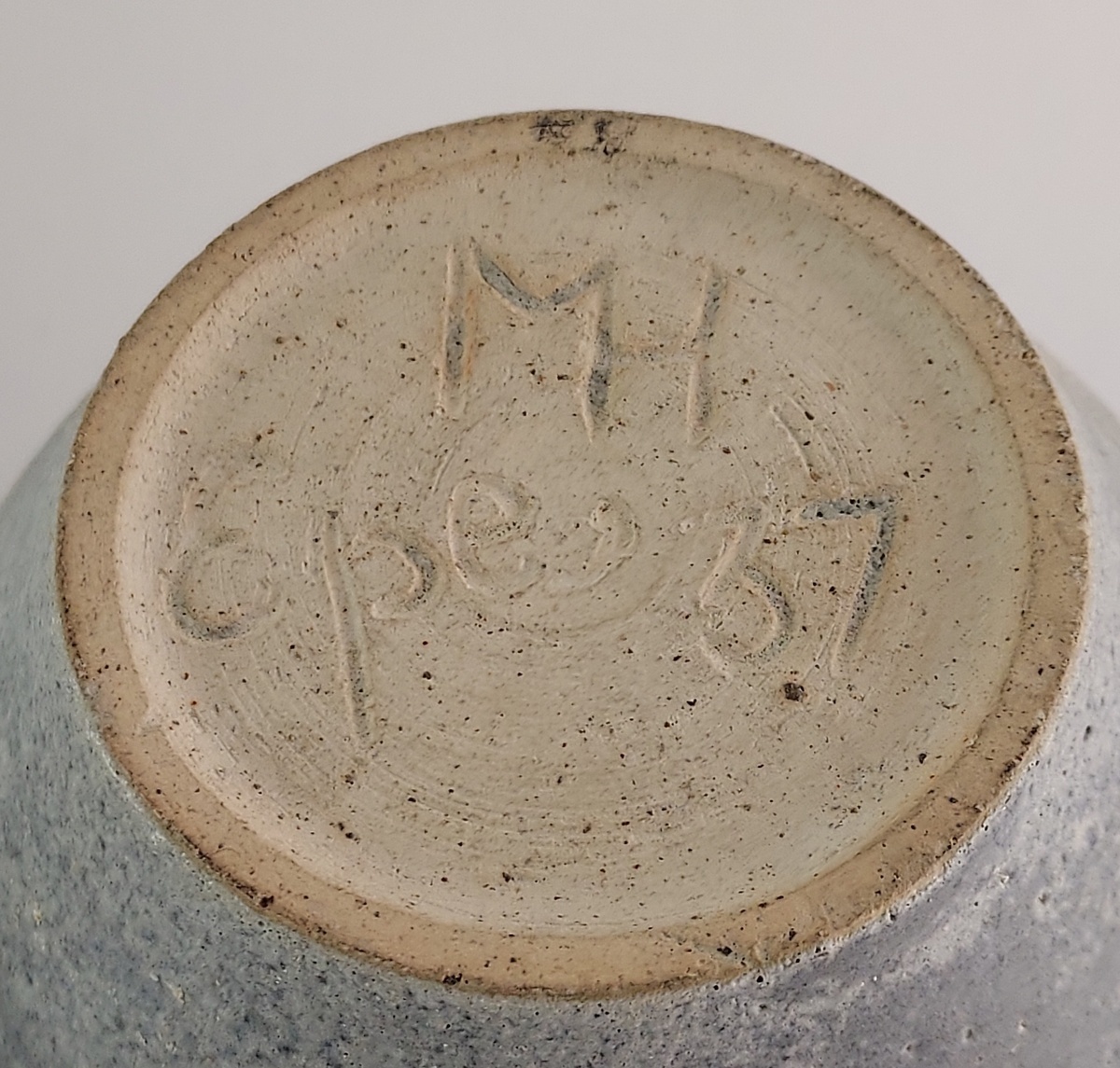 Grès émaillé gris, signé sur le dessous avec le monogramme inconnu MH Epe '37. Probablement quelqu'un de l'école de Lanooy.