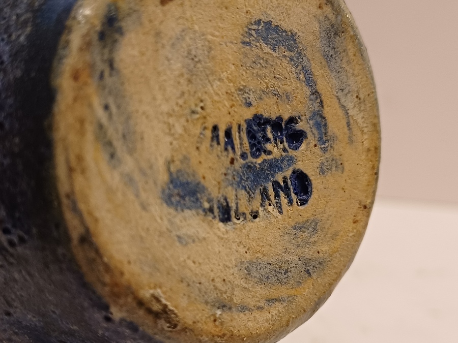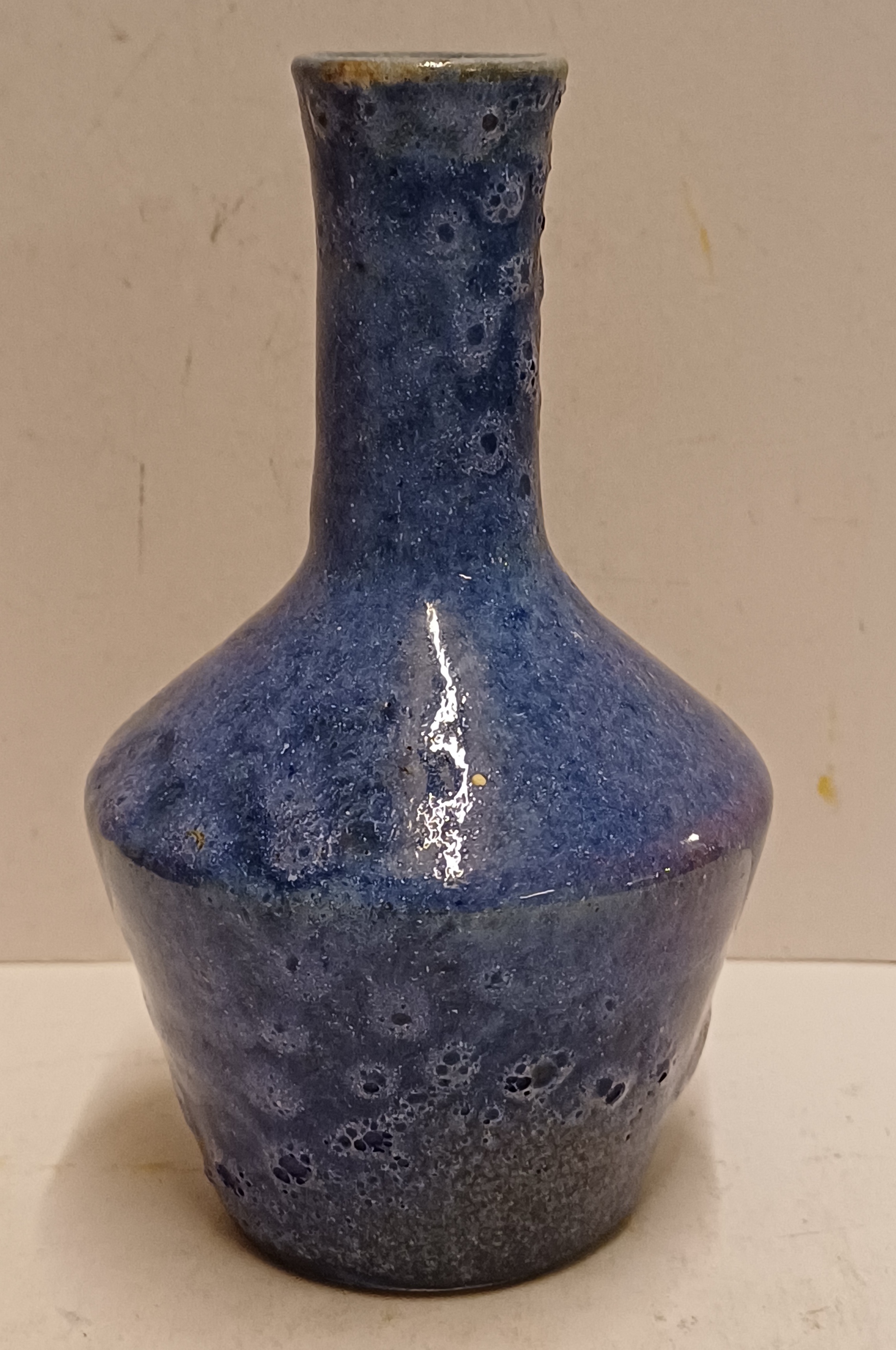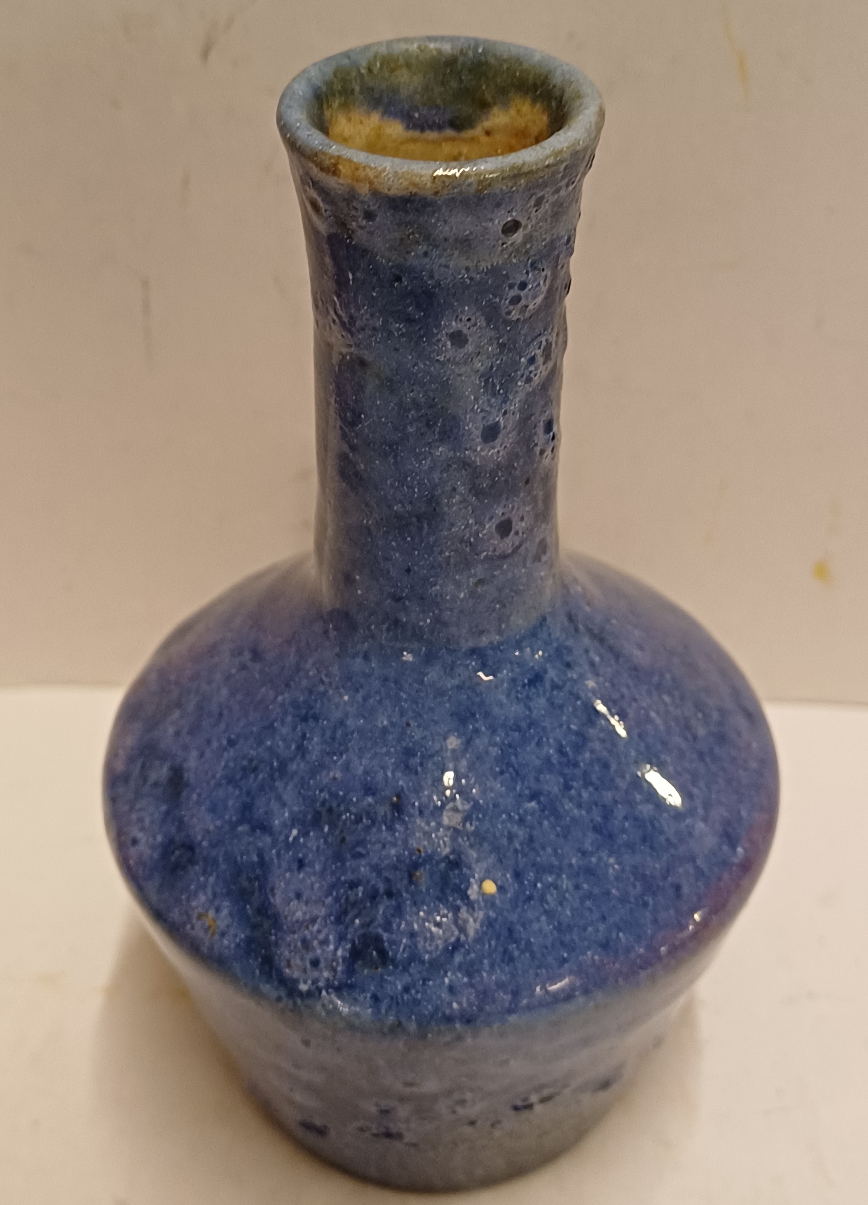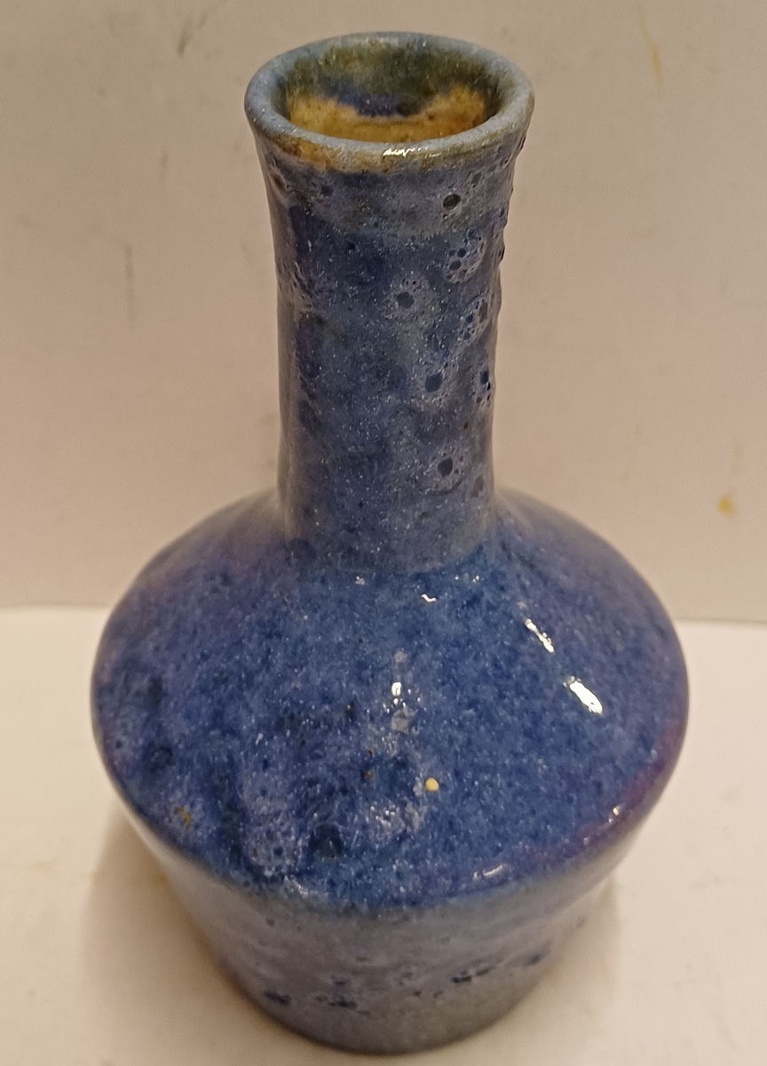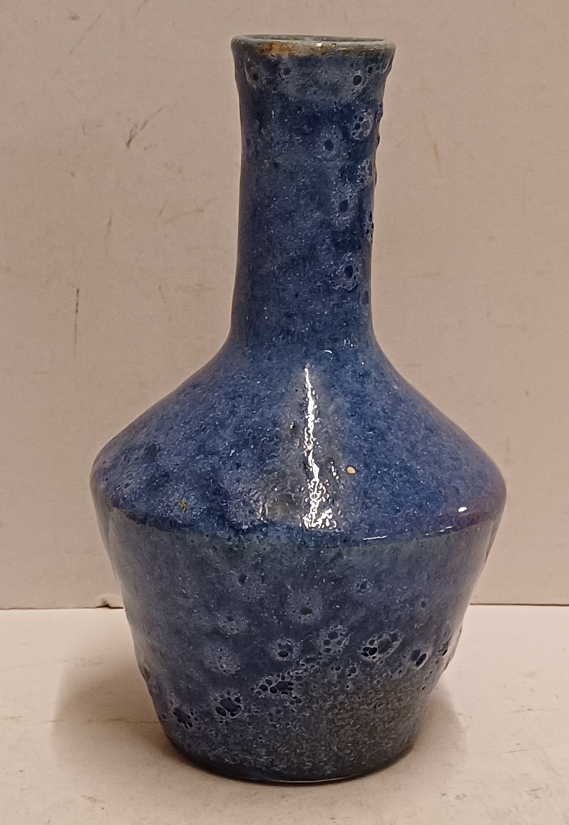 Aardewerken vaas met blauwe bruis glazuur. Onderzijde gemerkt.