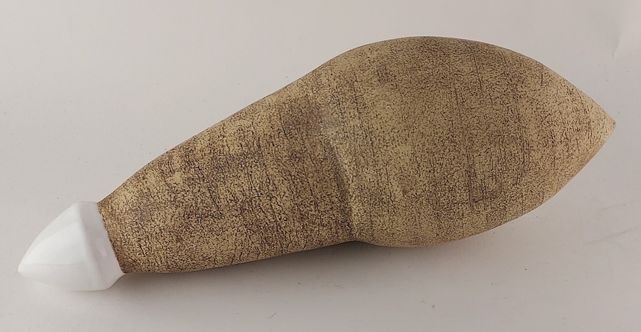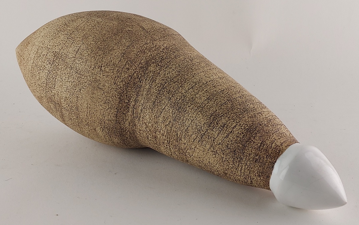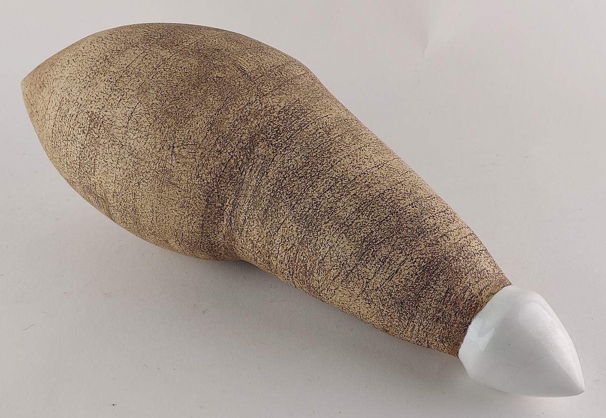 Sculpture en céramique avec glaçure en travertin et pointe blanche. Non signée. Ancienne collection Marjan et Gerard Unger Bussum.
