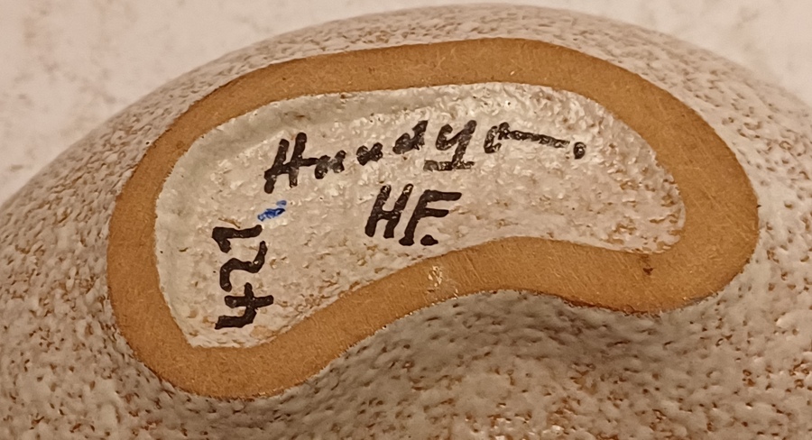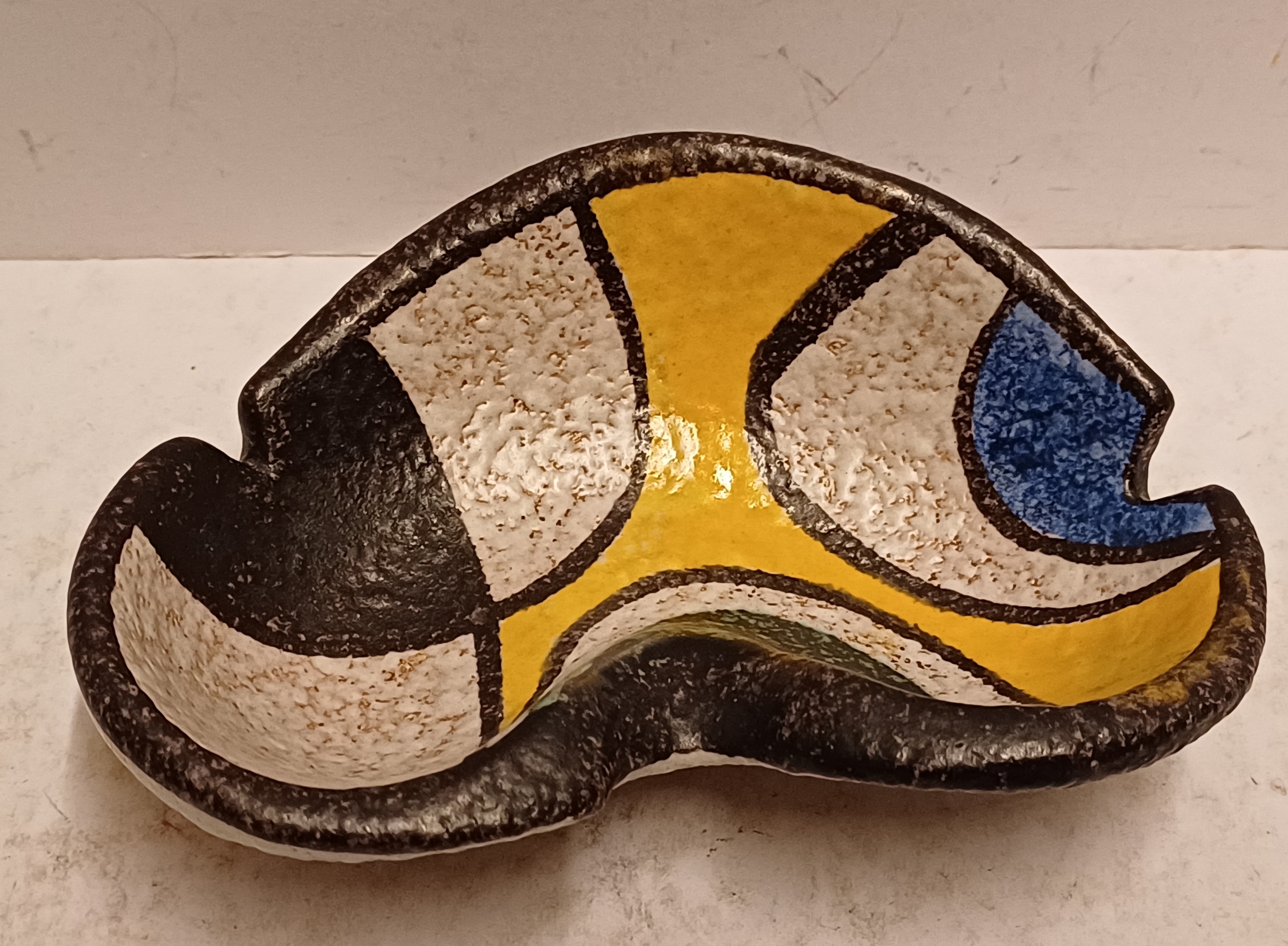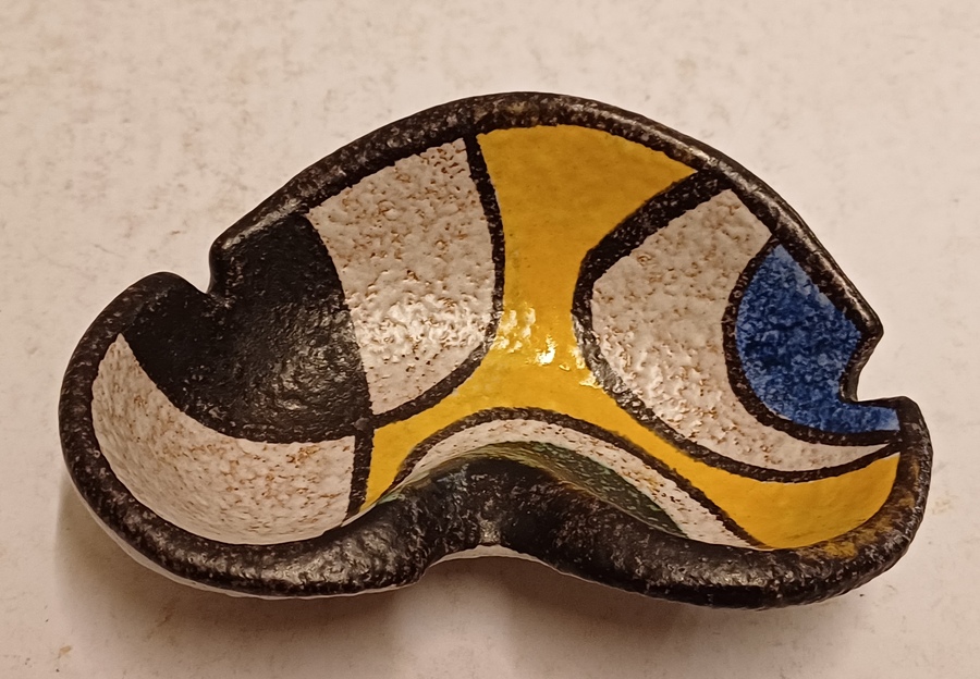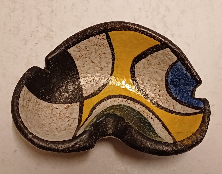 Asbak met gestileerd decor Milano naar ontwerp van Rudolf Schardt. Uitvoering Ruscha, onderzijde met signatuur.