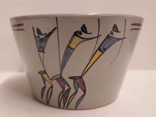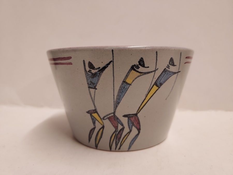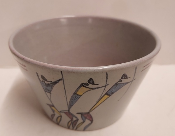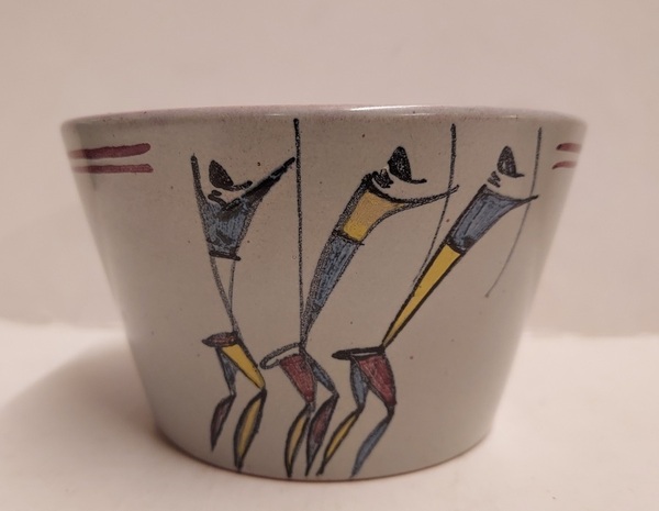 Coppetta con decoro dipinto di 3 guerrieri africani. Fondo firmato Zaalberg SA Handpainted.