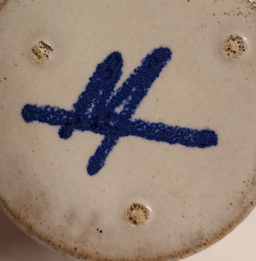 Vasetto con bande blu scuro. Firmato sulla parte inferiore.