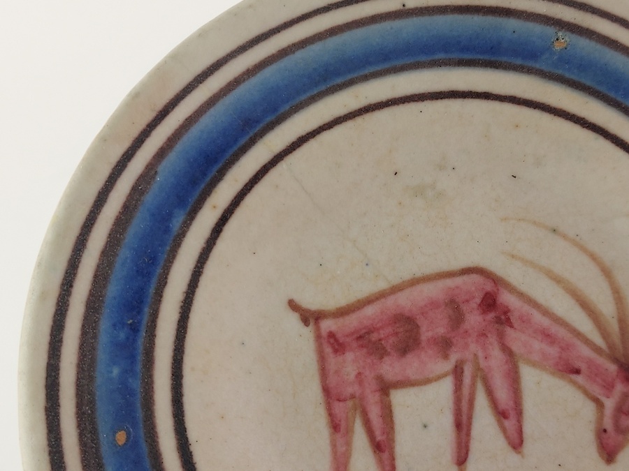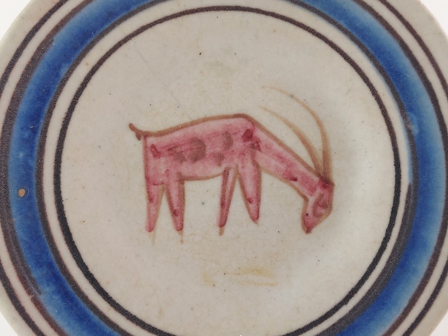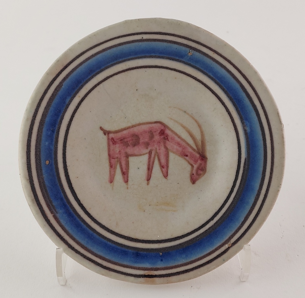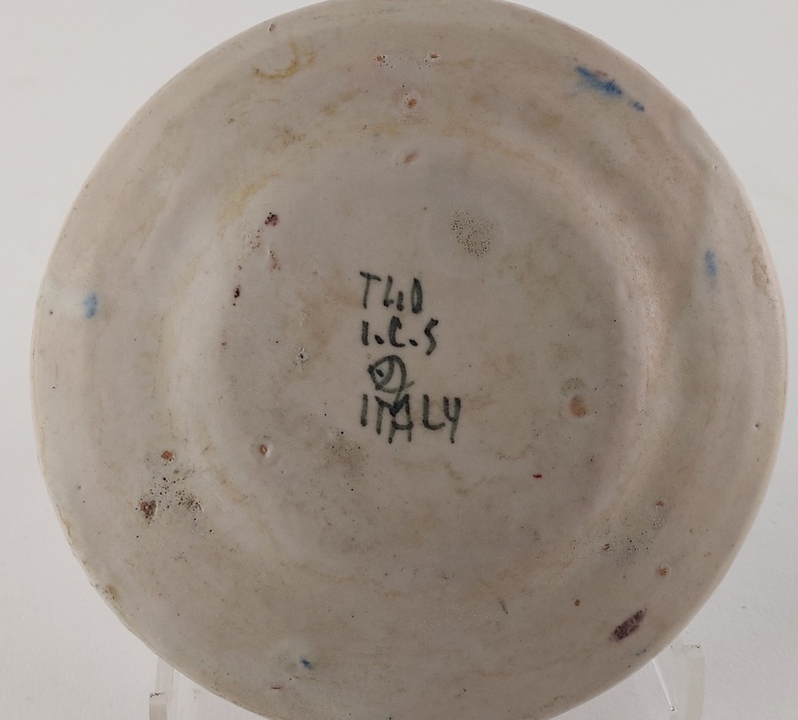 Con decorazione di un capro. Retro con marchio dipinto ICS (Industria Ceramica Saleritana), Italy e un piccolo pesce.