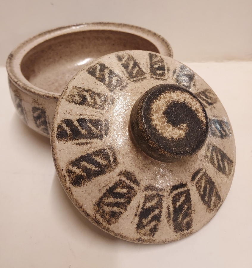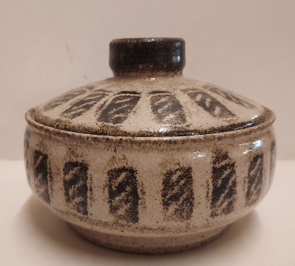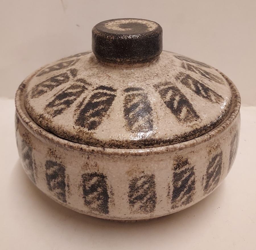 Scatola con coperchio decorata con motivi astratti in nero. Parte inferiore firmata H.C. Bronckhorst.