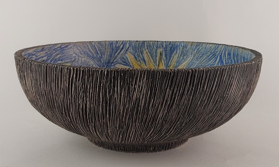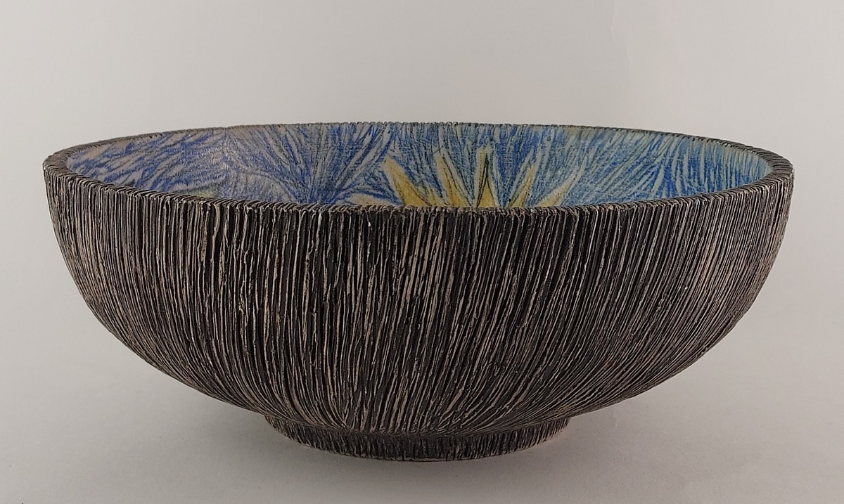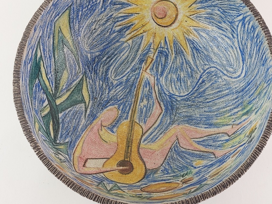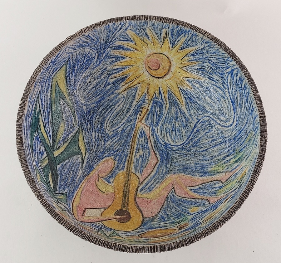 Ciotola con decorazione raffigurante una figura con chitarra.