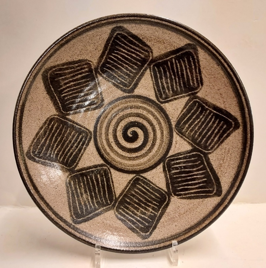 Piatto con decorazione nera. Retro completamente firmato.