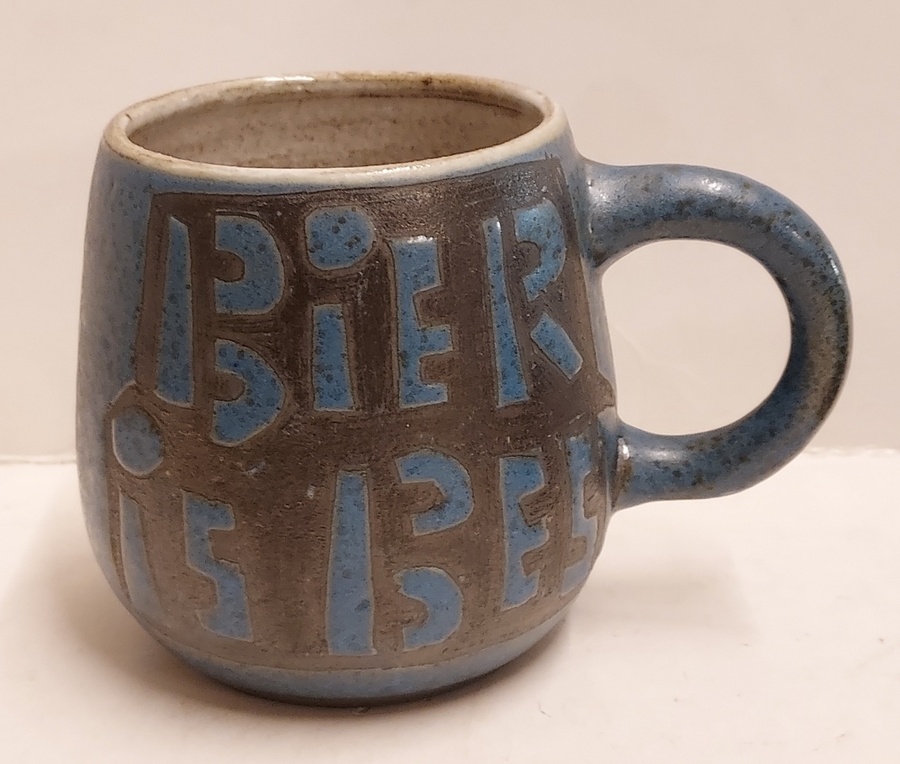 Boccale da birra con scritta "Bier is best". Parte inferiore con monogramma.