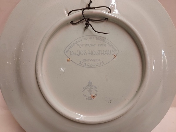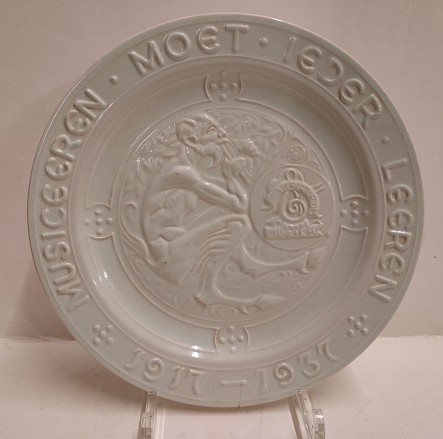 Piatto commemorativo Rotterdam Conservatorium 1917-1937, Plateelbakkerij Zuid Holland