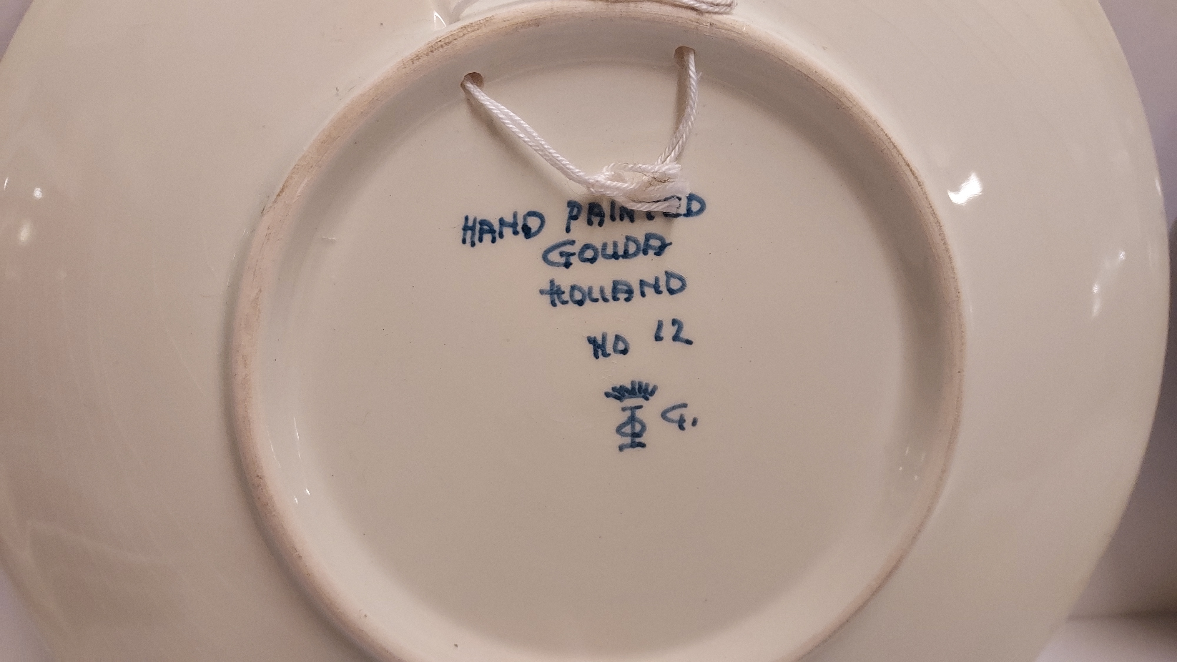 Decorazione Delft "Beatrix 30 aprile 1980 Nederland heet u welkom". Retro marcato "Handpainted Poly Gouda Holland".