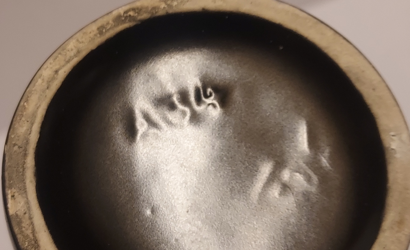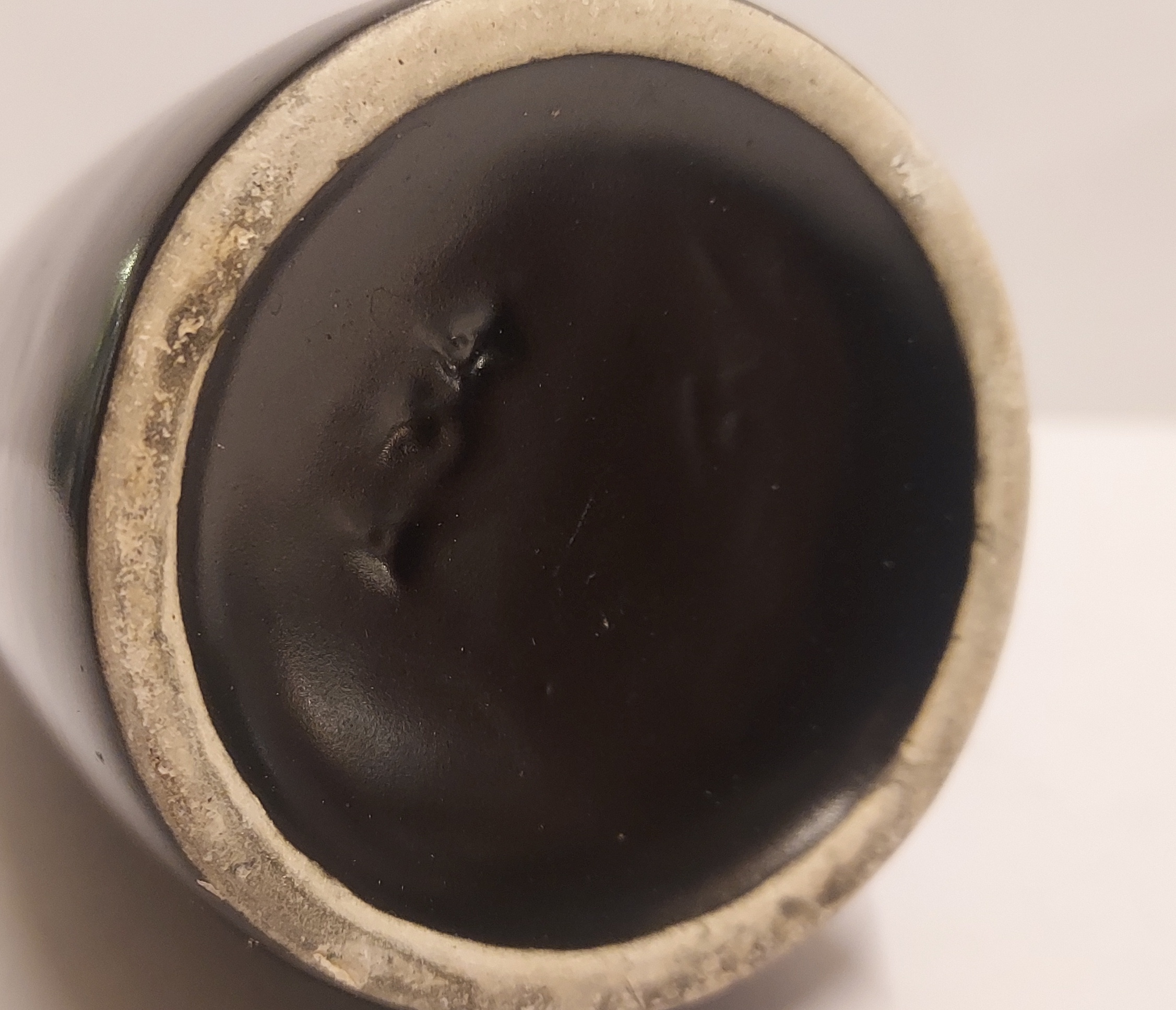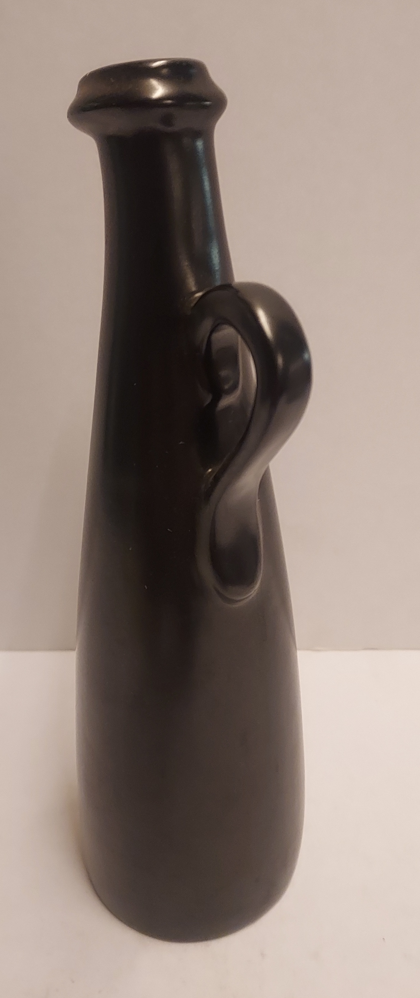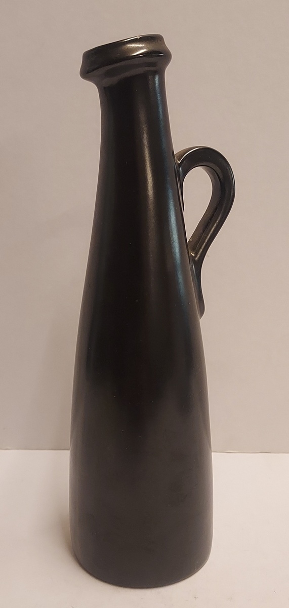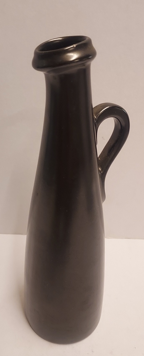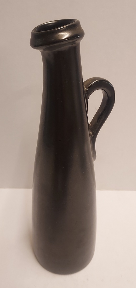 Vaso con manico in ceramica smaltata nero opaco. Sul fondo è presente il numero A34 fuso nella ceramica.
