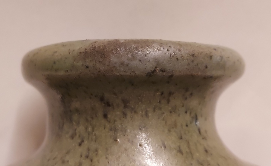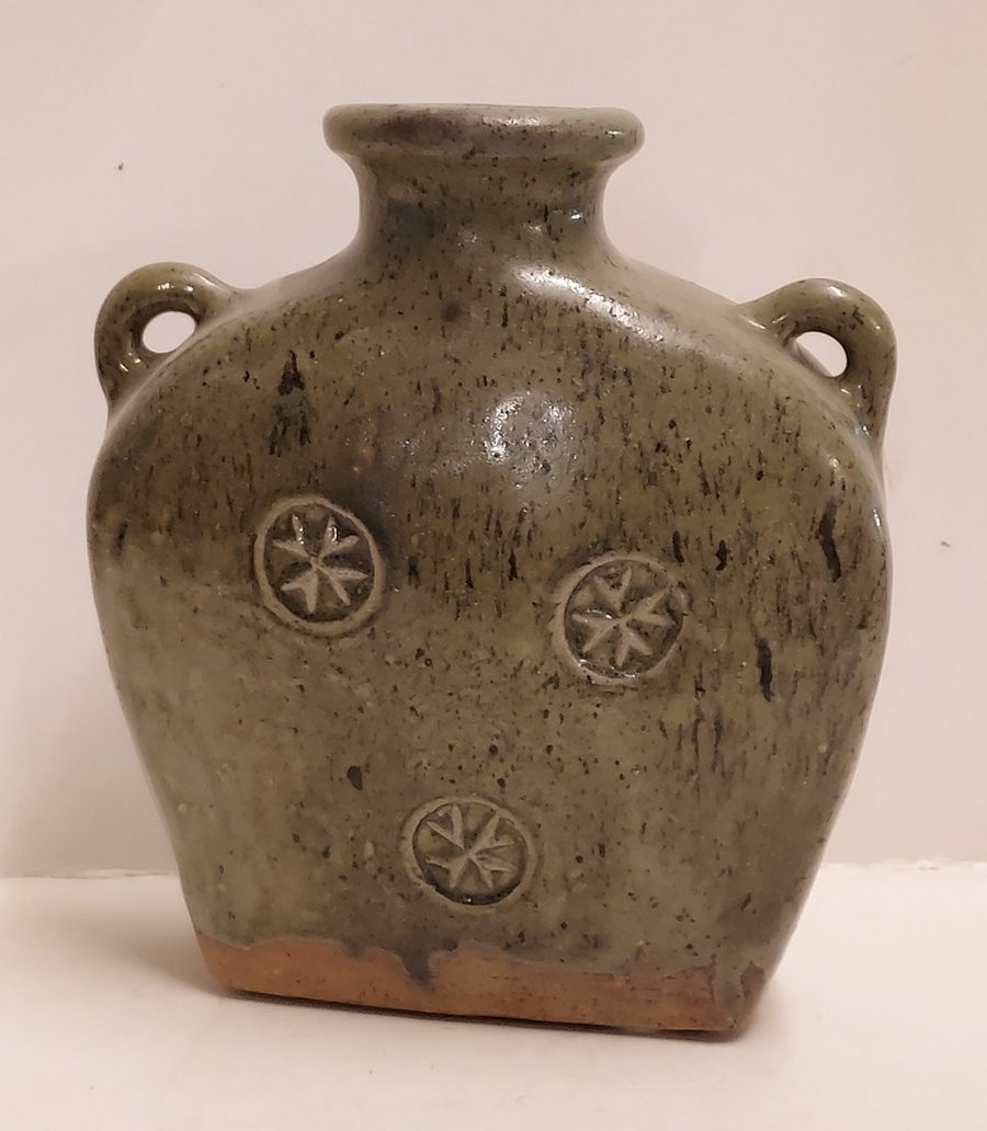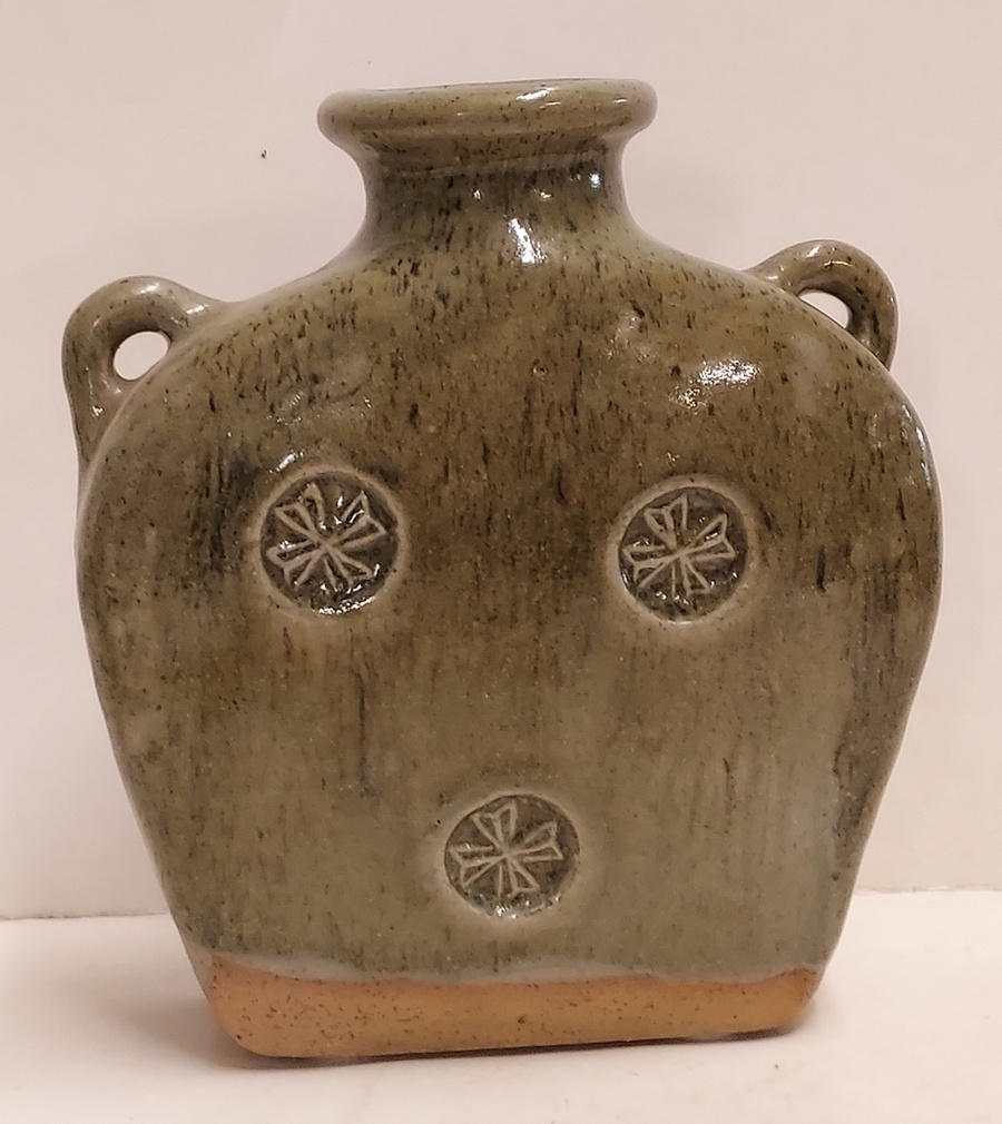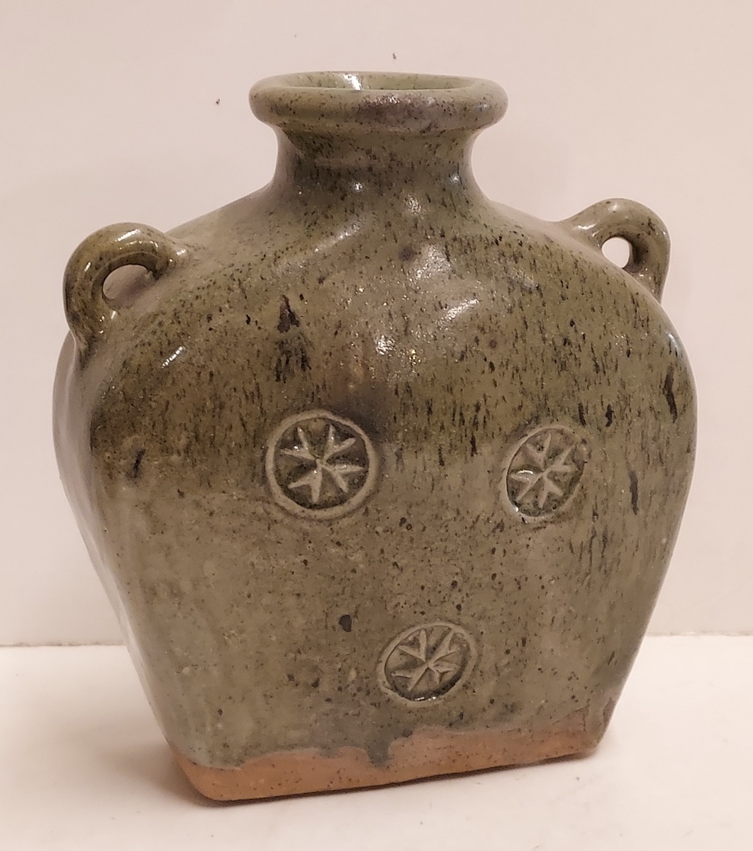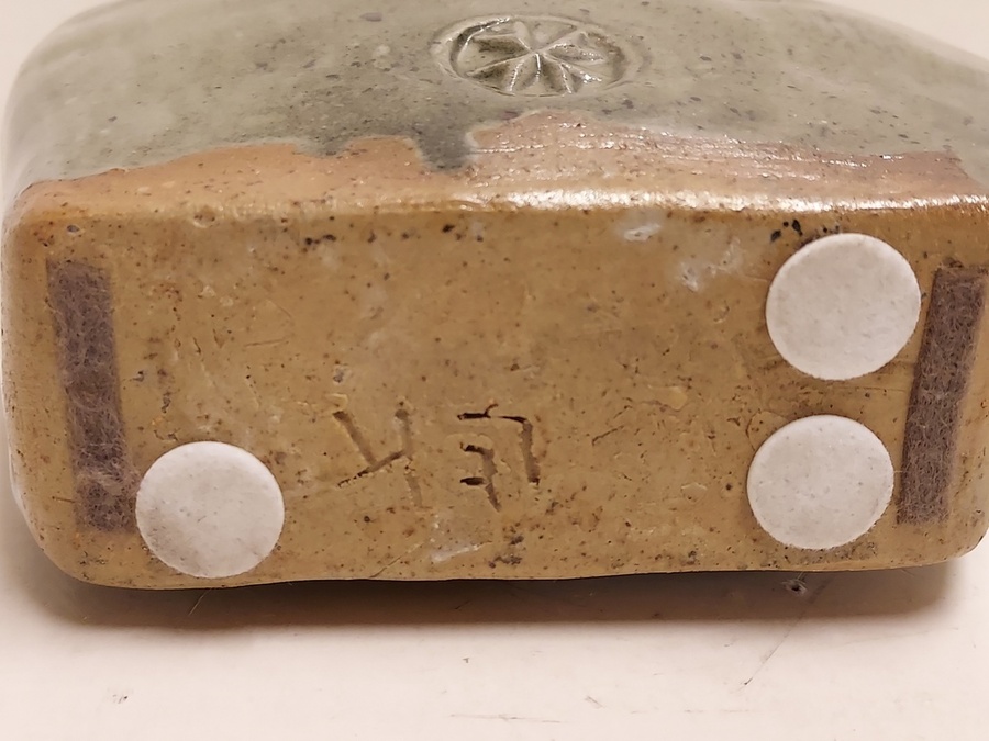 Brocca in gres con decoro timbrato e smalto verde celadon. Parte inferiore con monogramma. Ex collezione Ben Sleeuwenhoek.