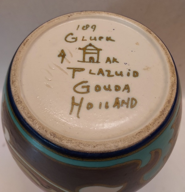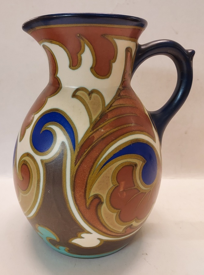 Brocca decorativa con decoro floreale Gluck, iniziali del pittore AK e lettera annuale 1929.