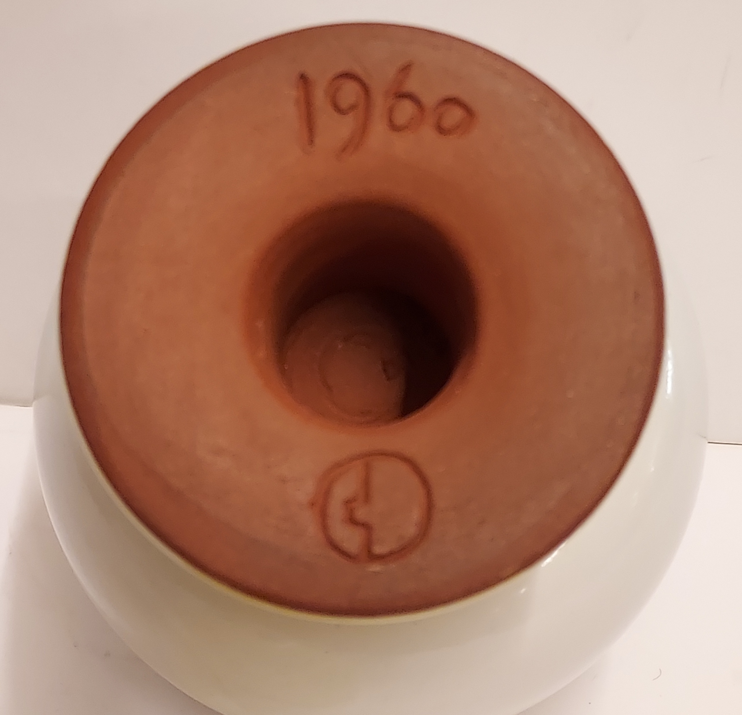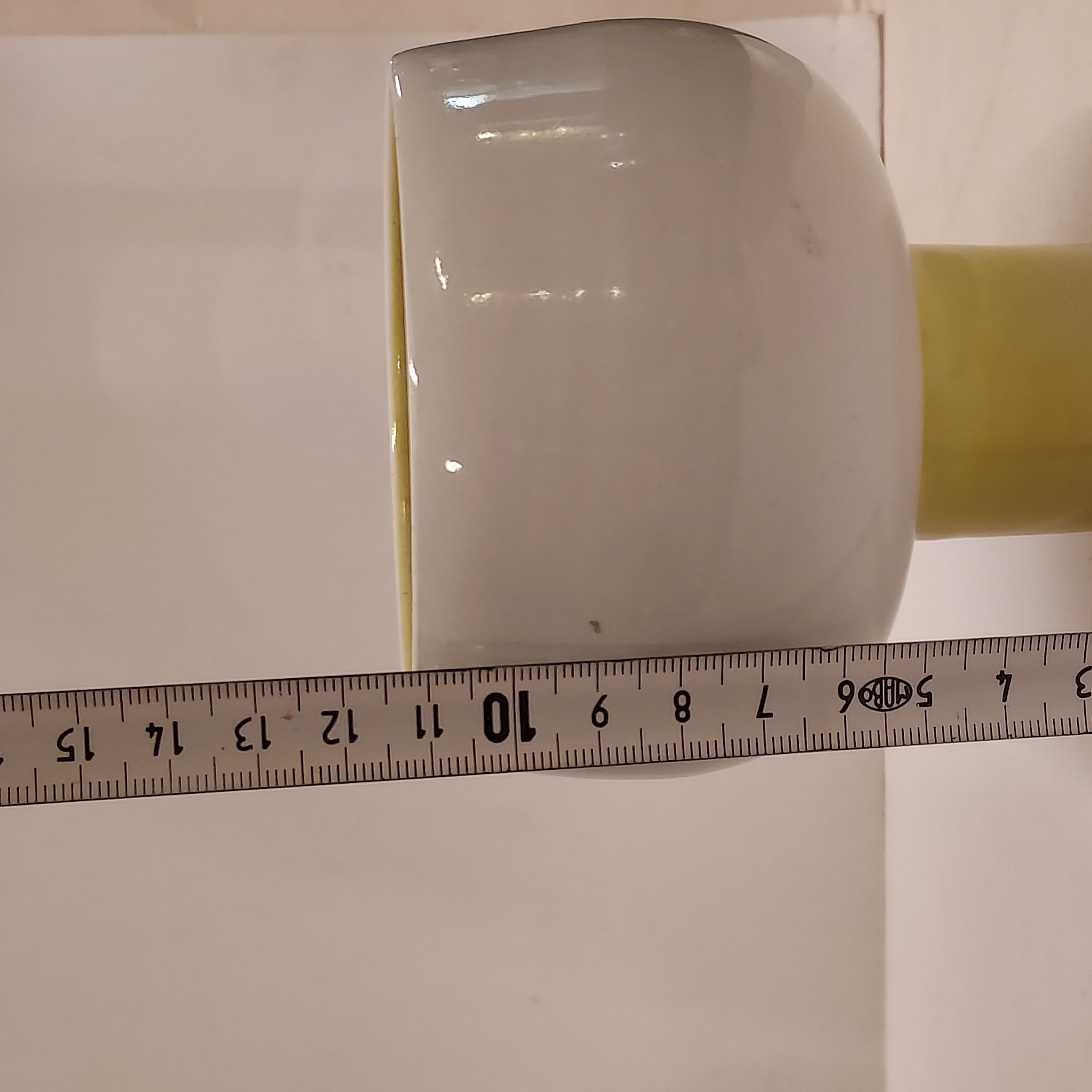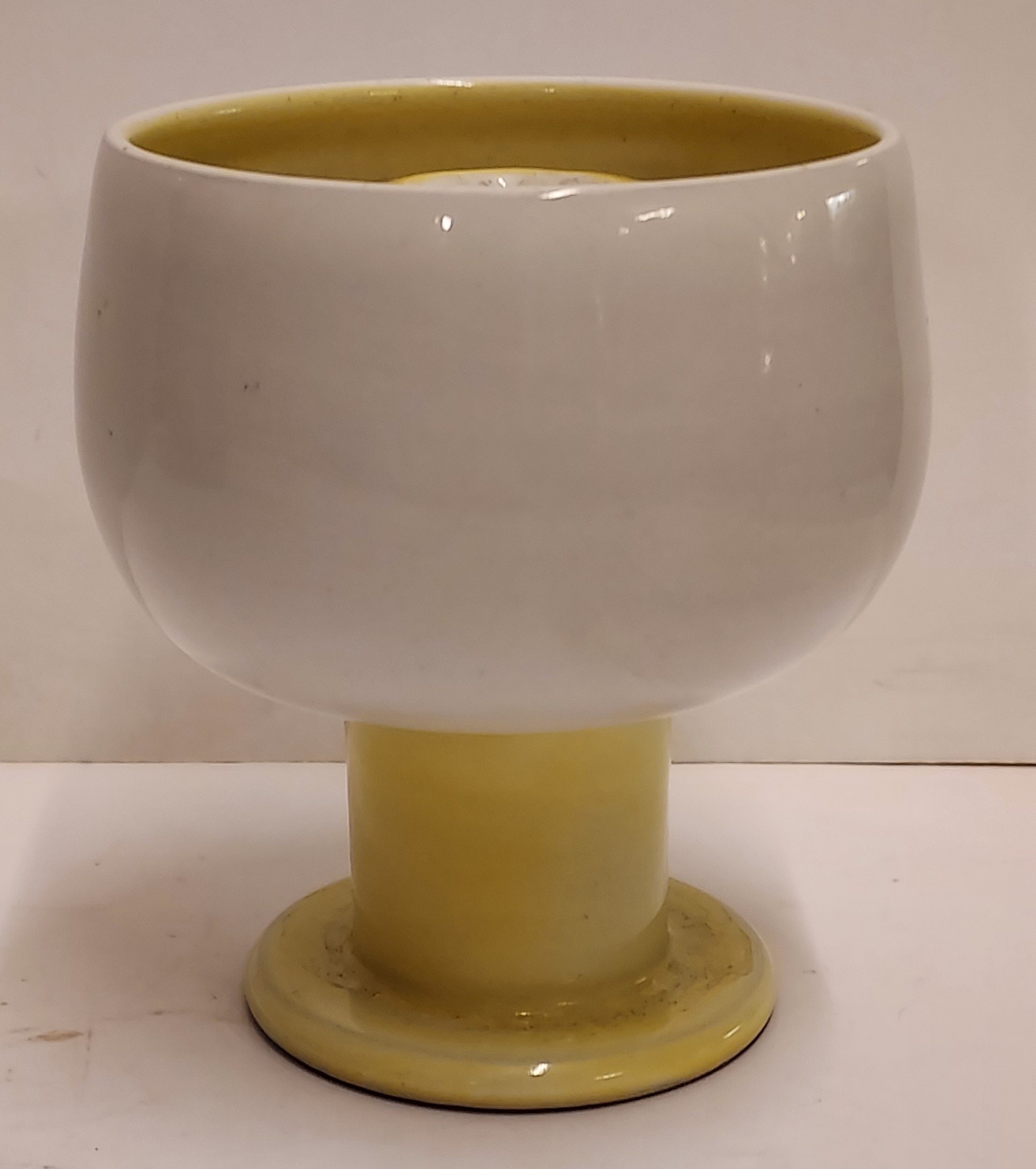 Piedistallo bianco con giallo e interno con spuntone per rose libero. Inferiore con logo a forma di alveare e data 1960. Design attribuito a Ettore Sottsass.