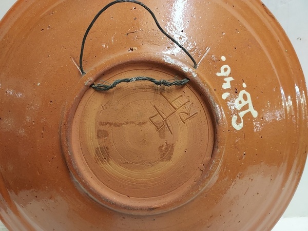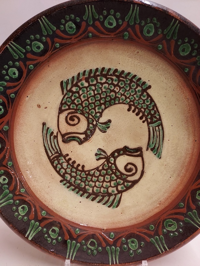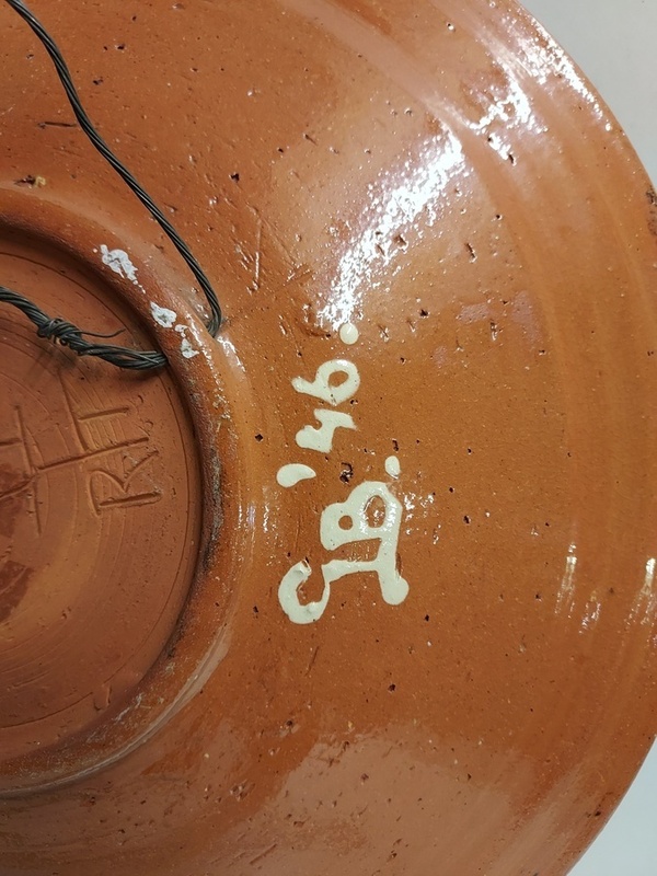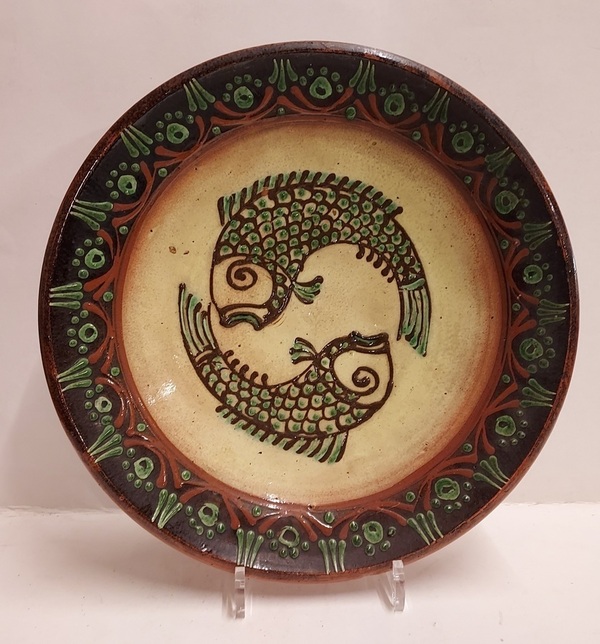 Piatto da parete con decorazione di 2 pesci. Retro con marchio di fabbrica e firma GB '46. Ex collezione Unger.
