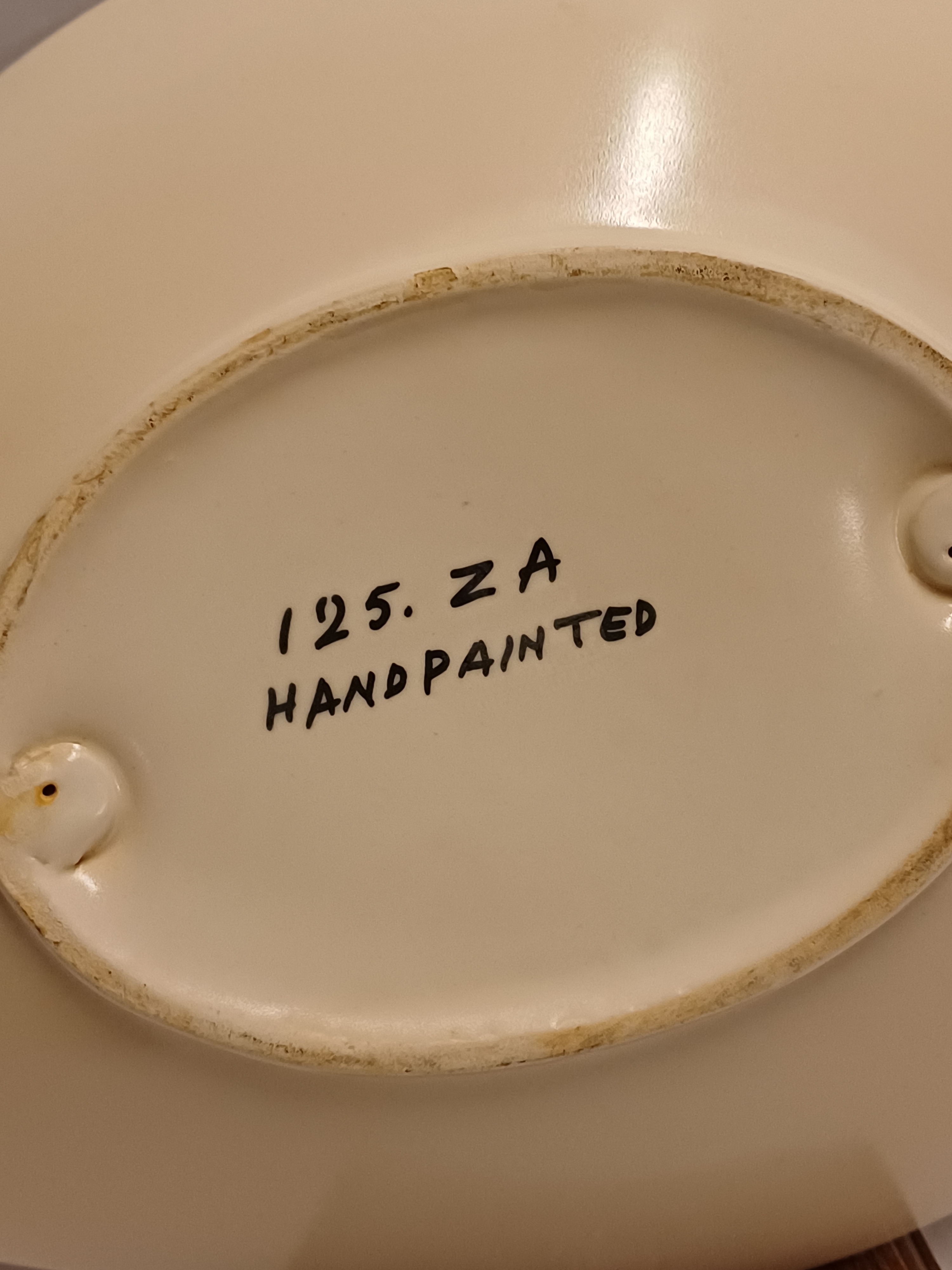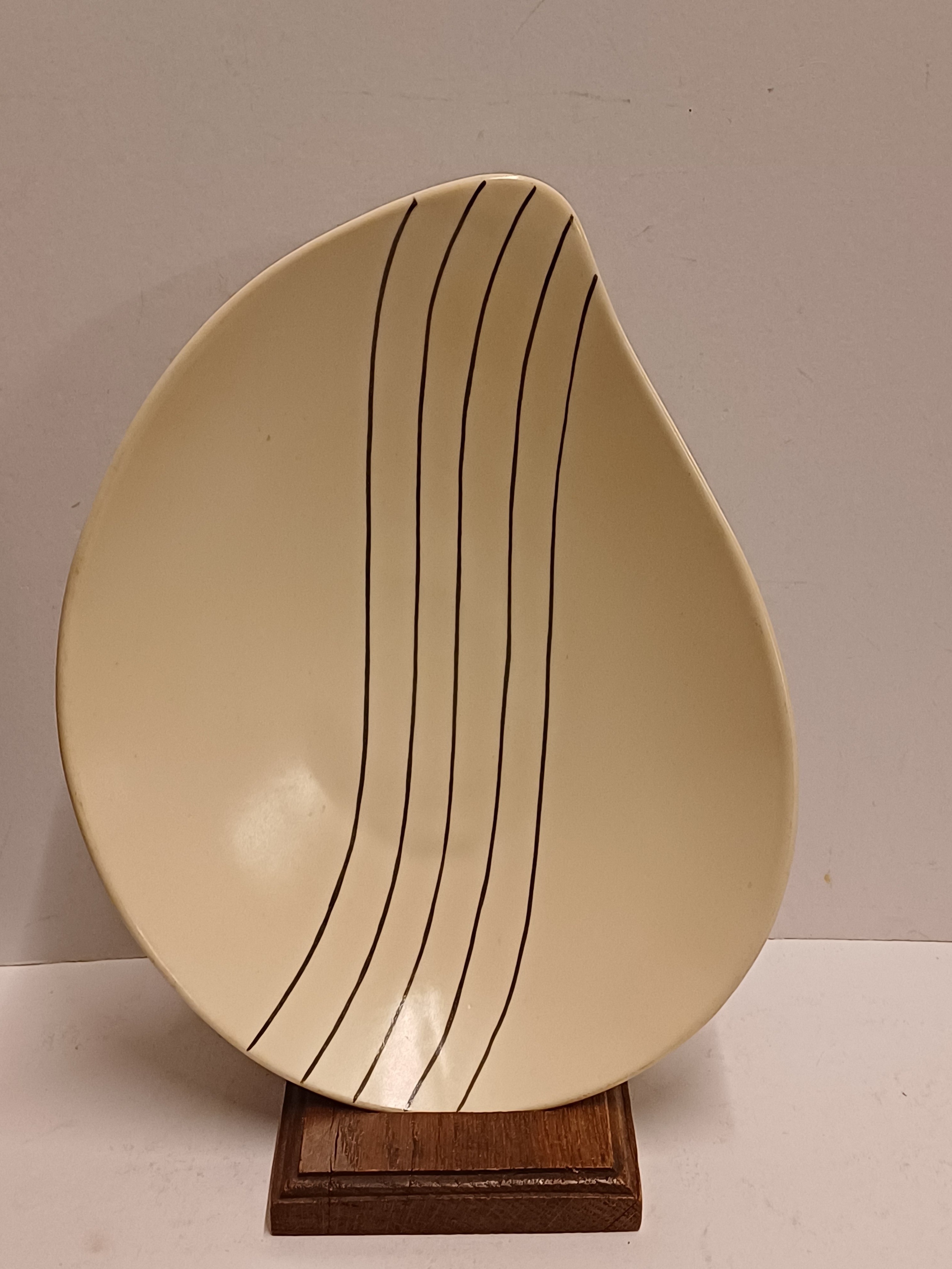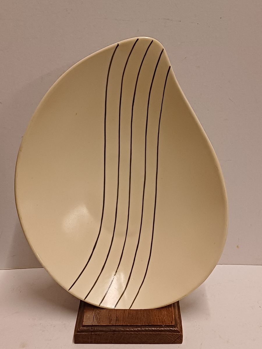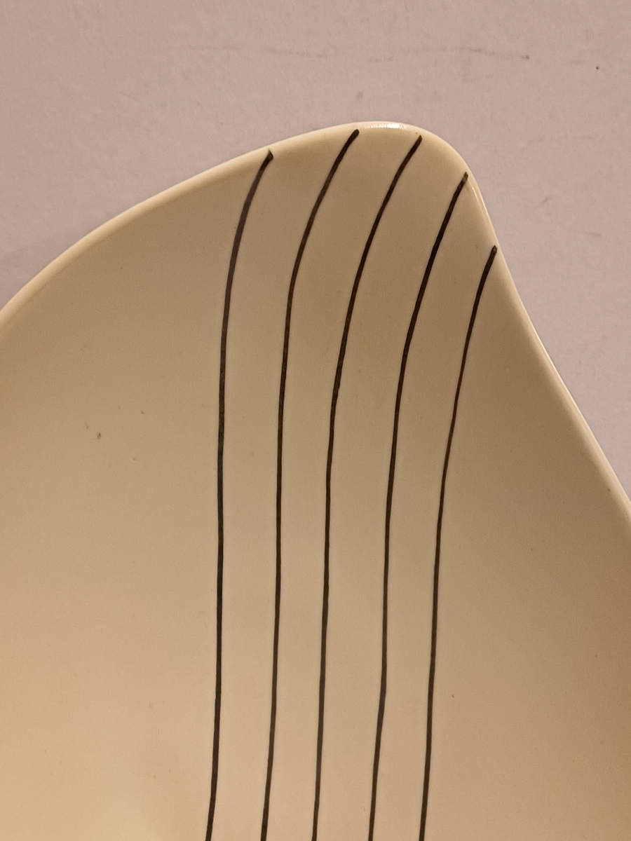 Piatto in terracotta con decorazione a linee nere. Retro con marchio cieco Sphinx e 125 ZA.
