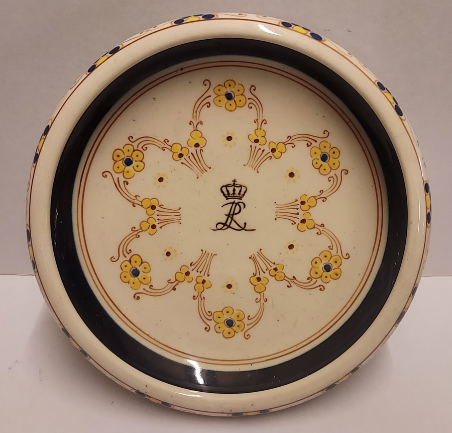 Con decorazione floreale e al centro il logo della Rotterdamsche Lloyd. Parte inferiore marcata.