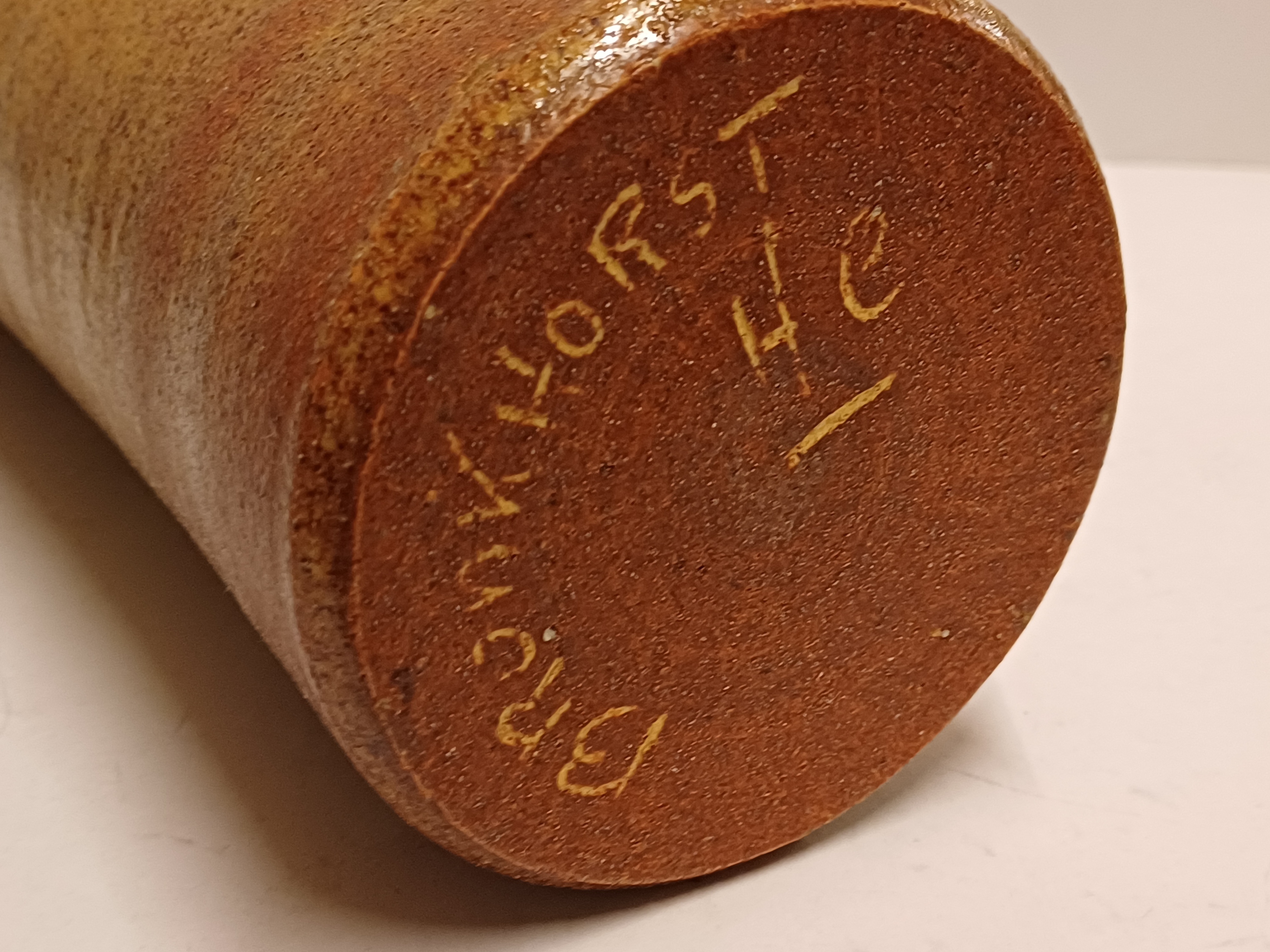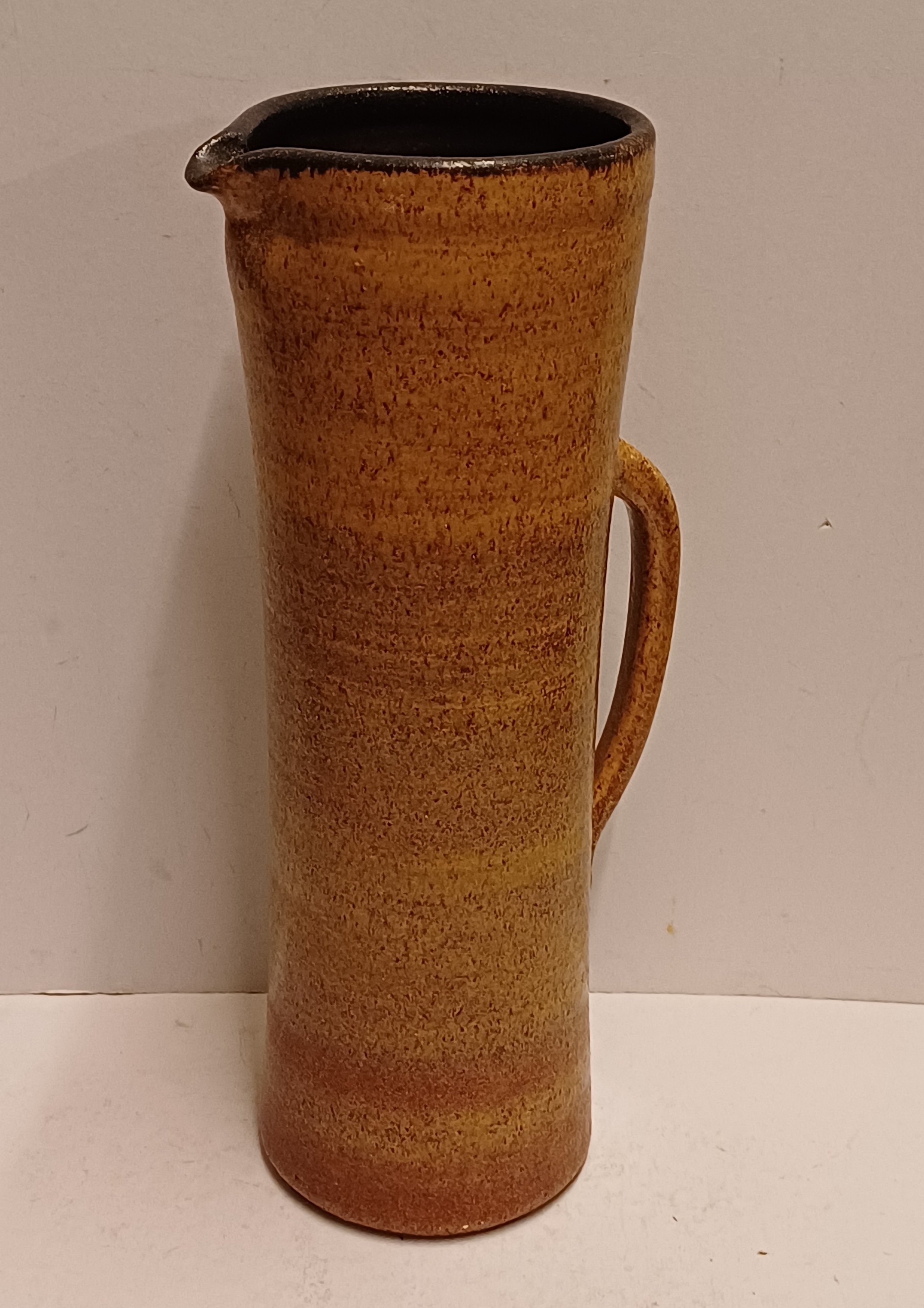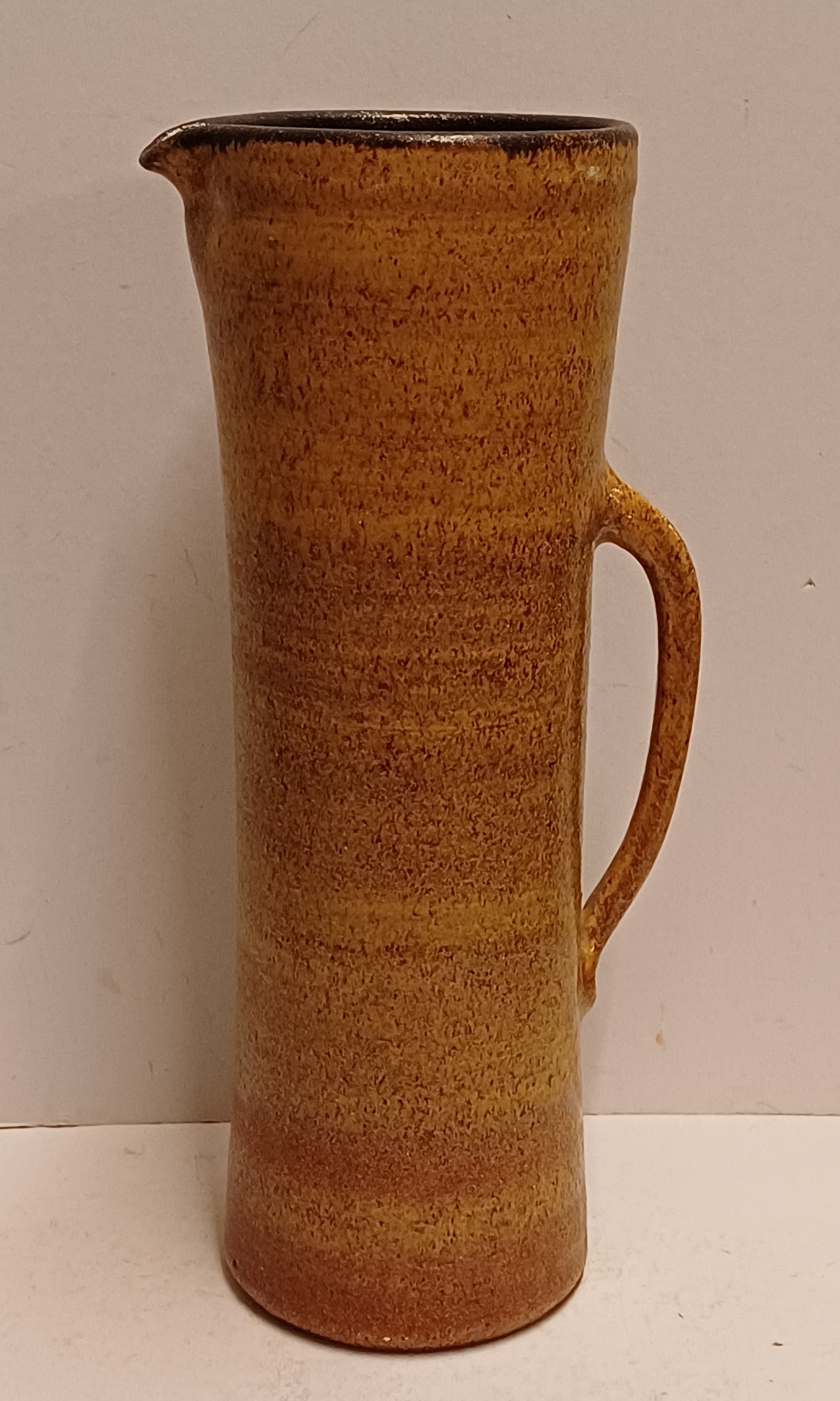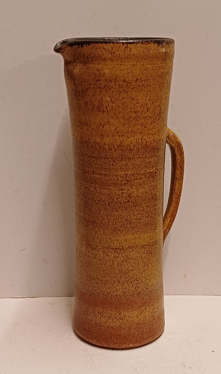 Brocca alta in ceramica con smalto marrone. Parte inferiore firmata.