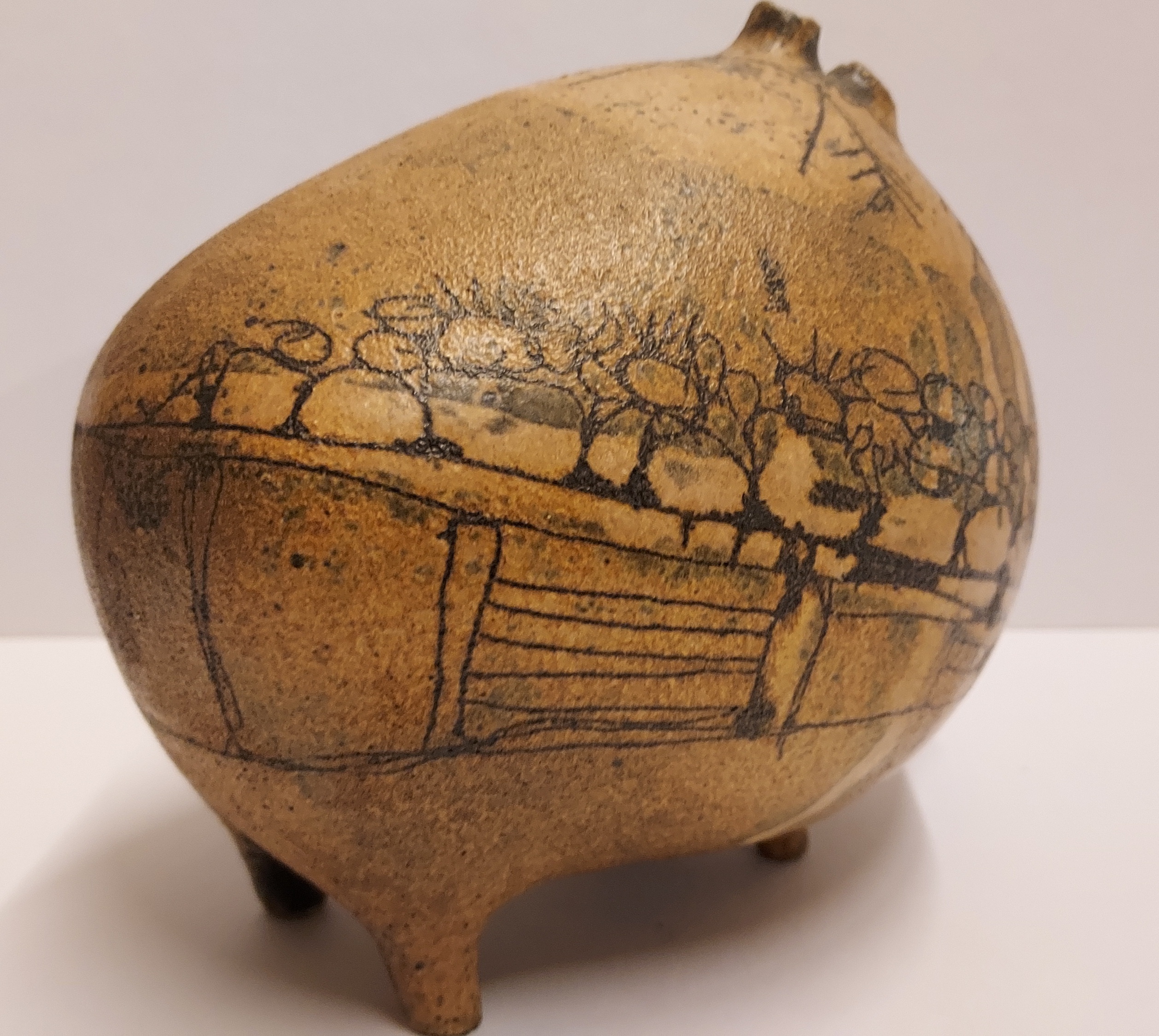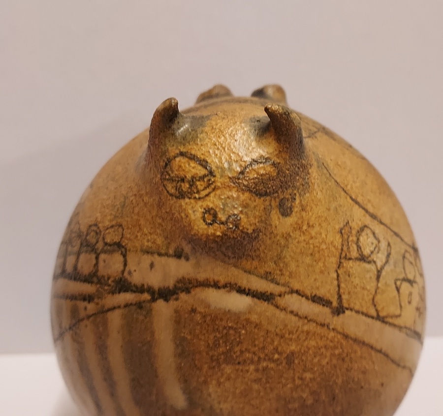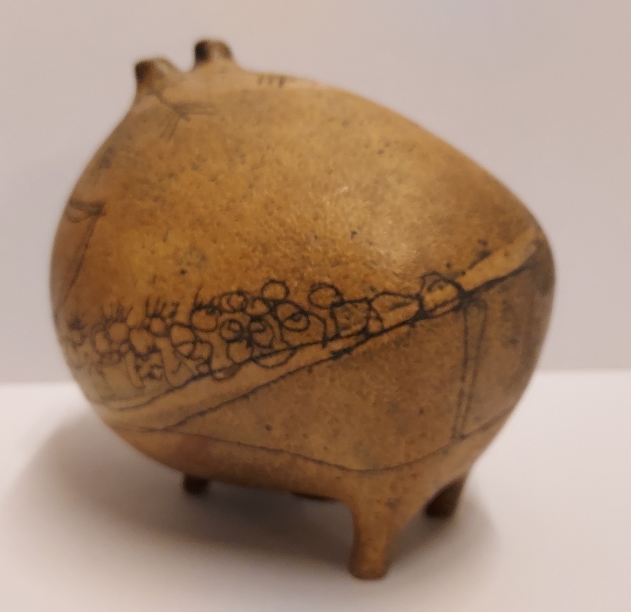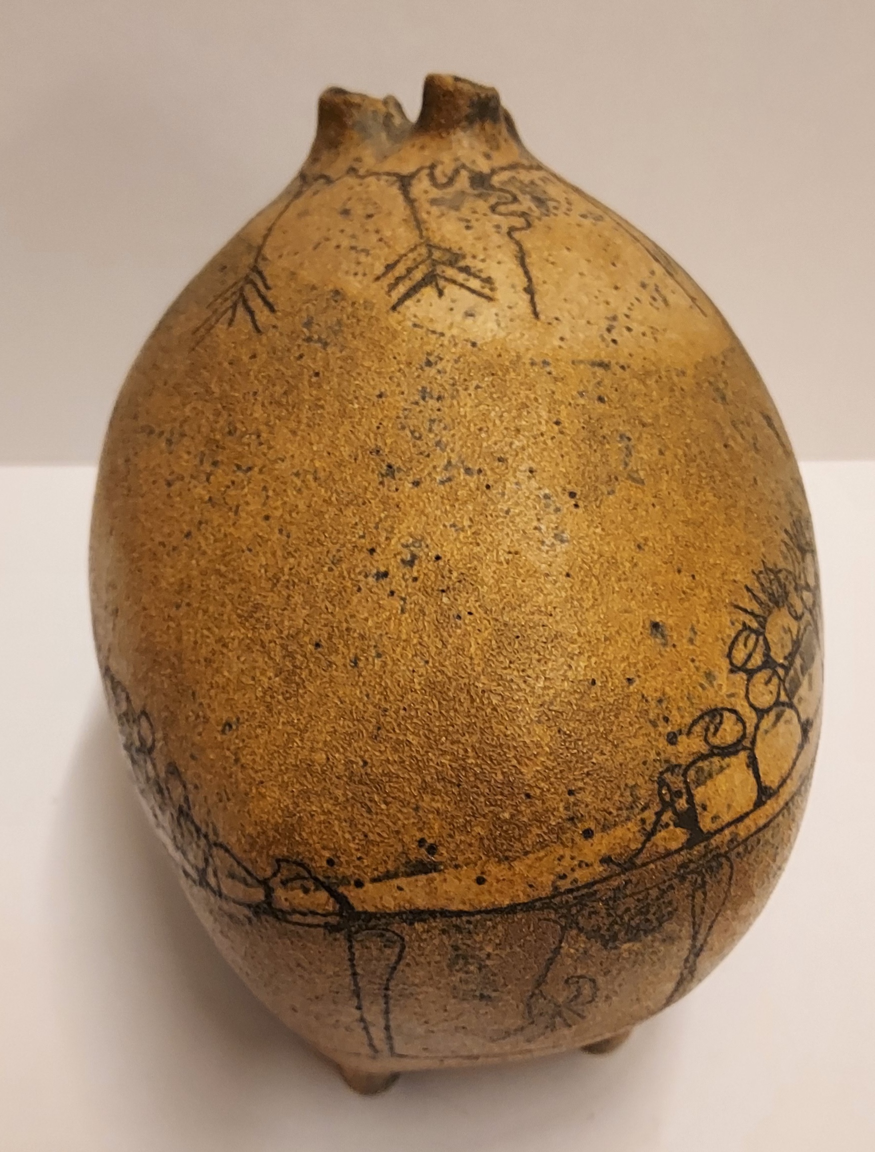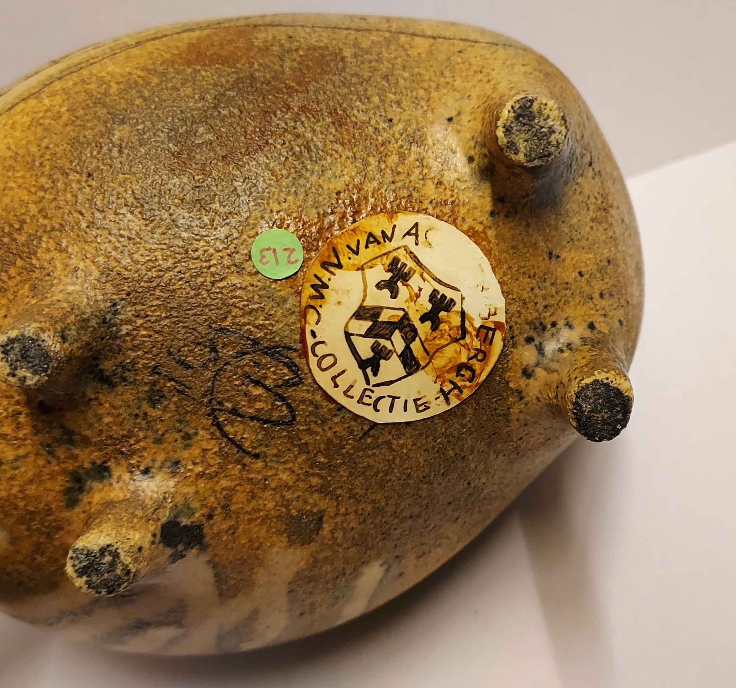 Pezzo modellato a mano in ceramica massiccia "Miereneter" con decorazione incisa. Firmato sul fondo da BvL. Realizzato dal reparto sperimentale della Porcleyne Fles Delft.