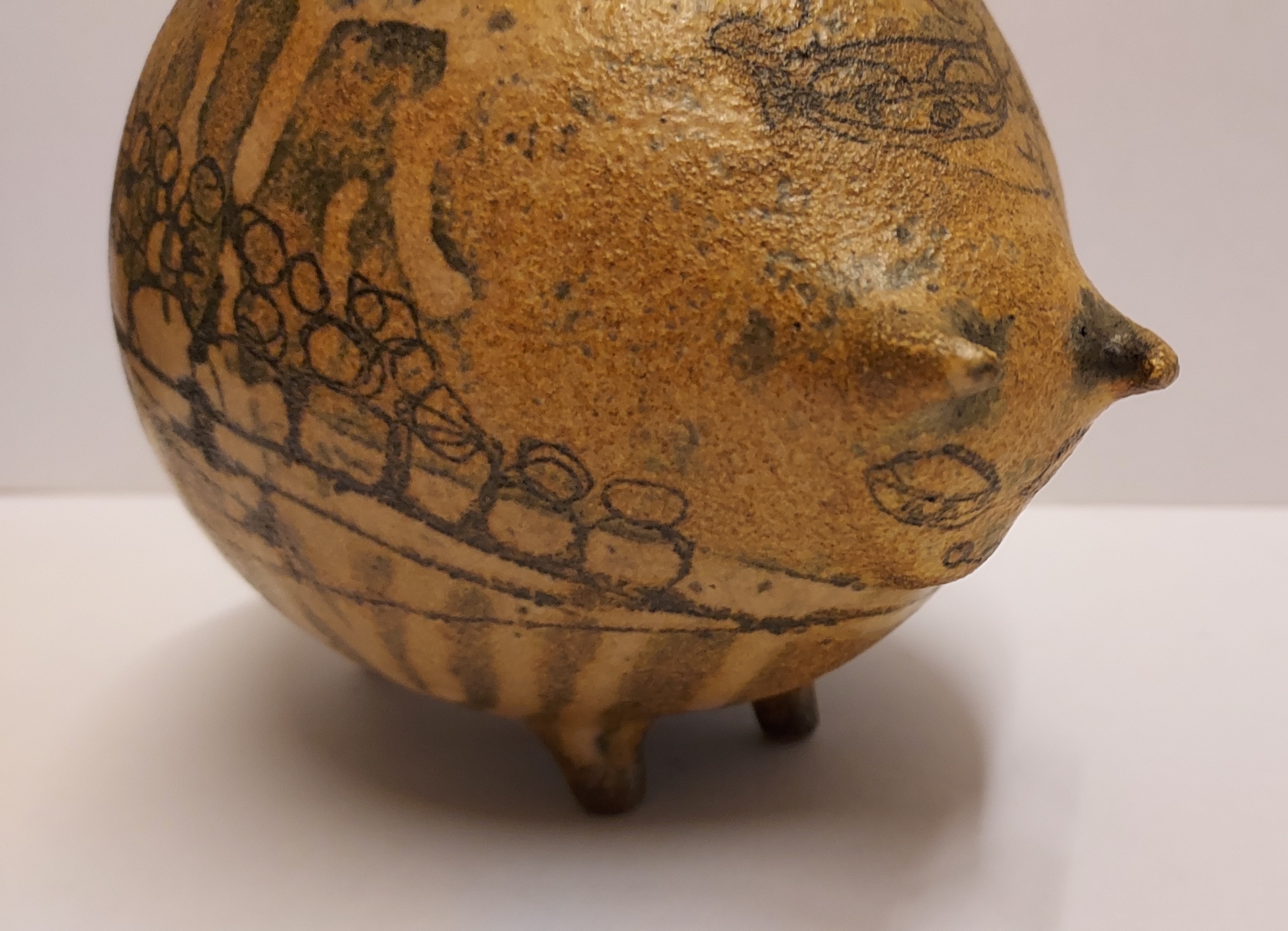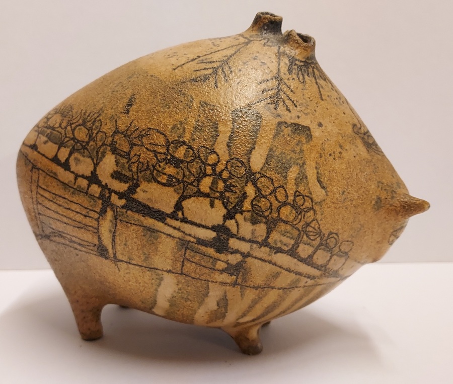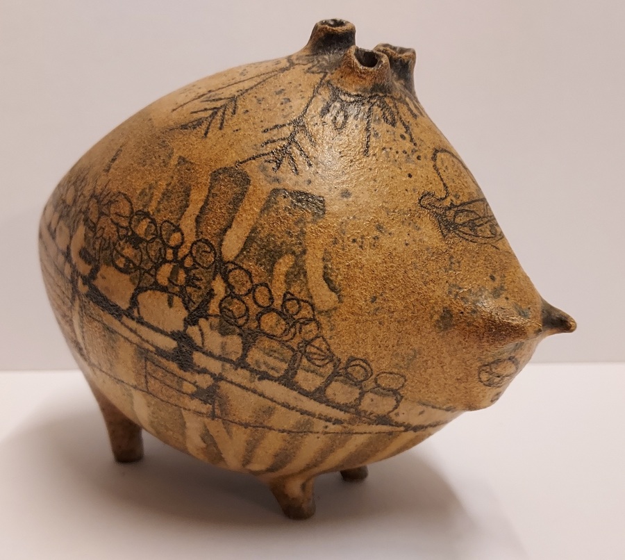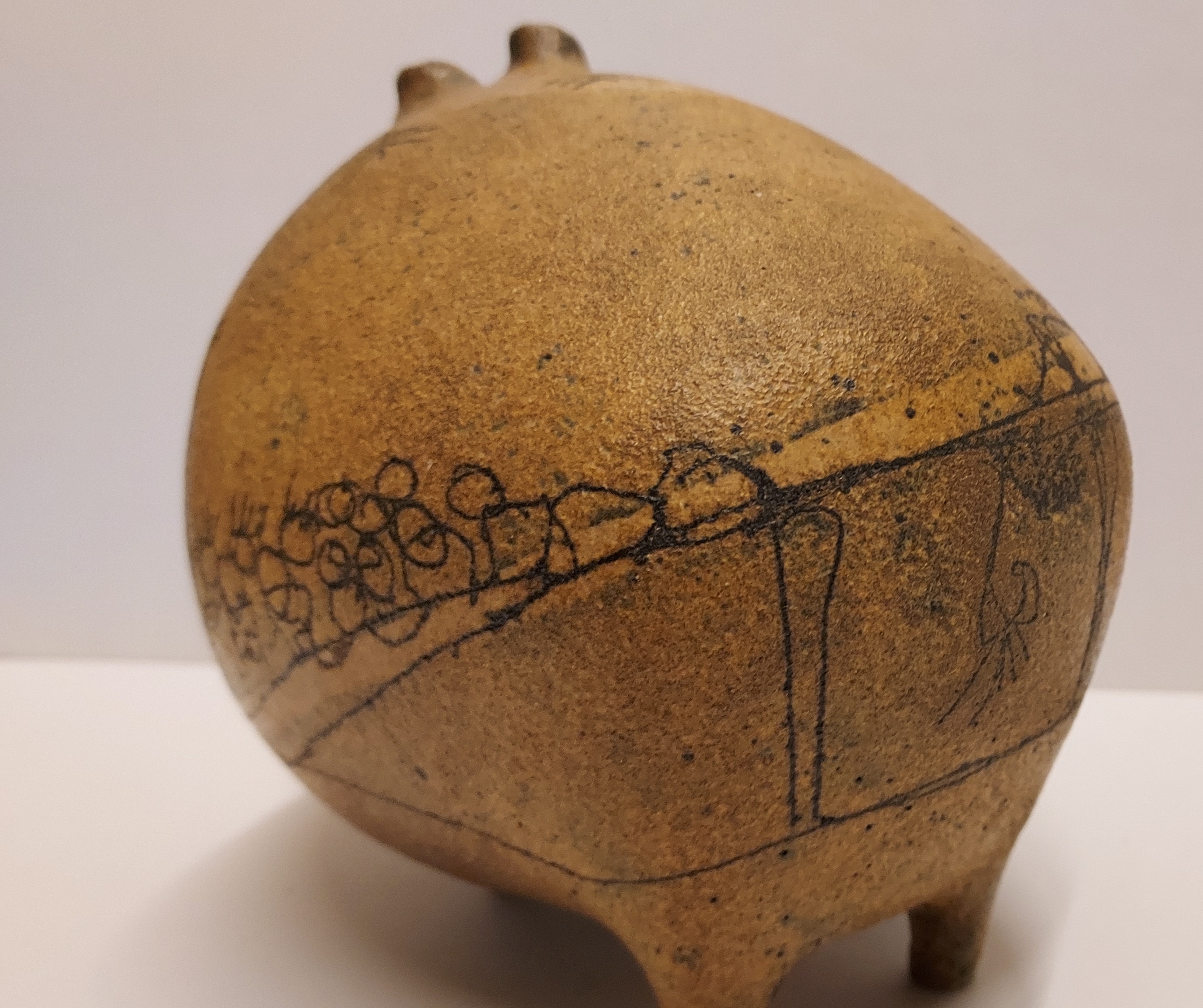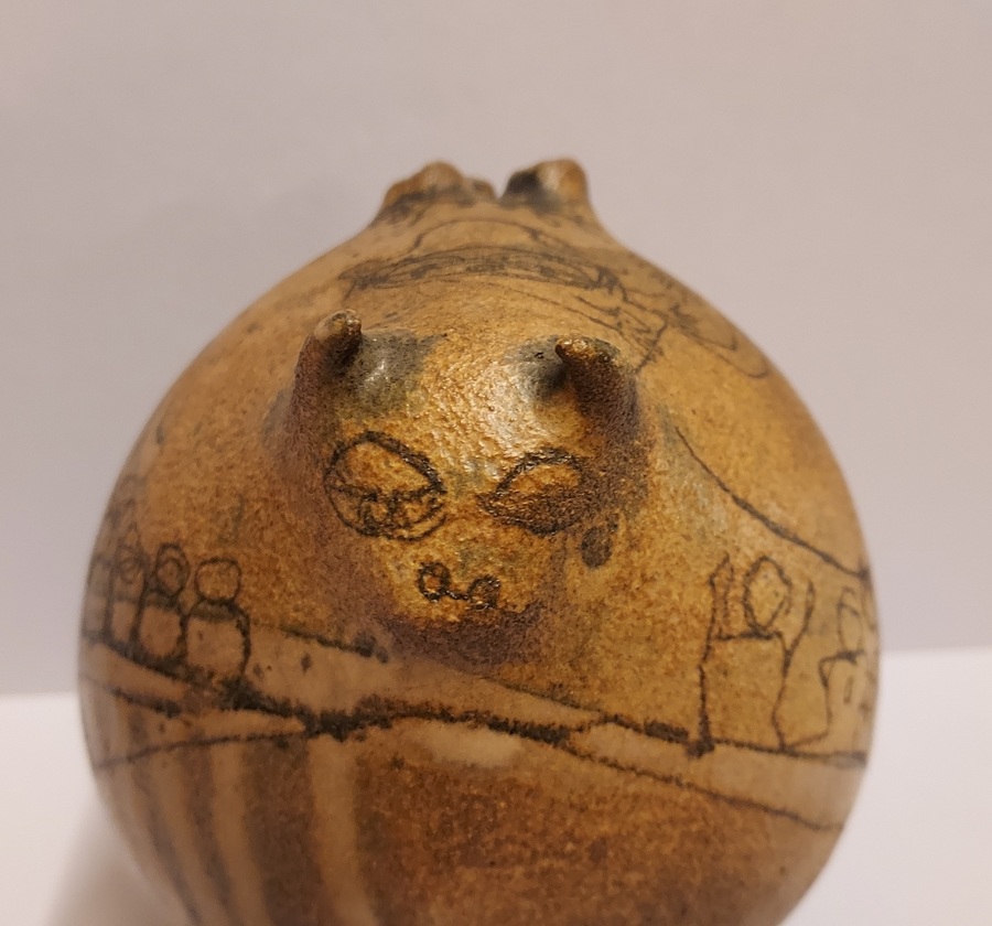 Pezzo modellato a mano in ceramica massiccia "Miereneter" con decorazione incisa. Firmato sul fondo da BvL. Realizzato dal reparto sperimentale della Porcleyne Fles Delft.