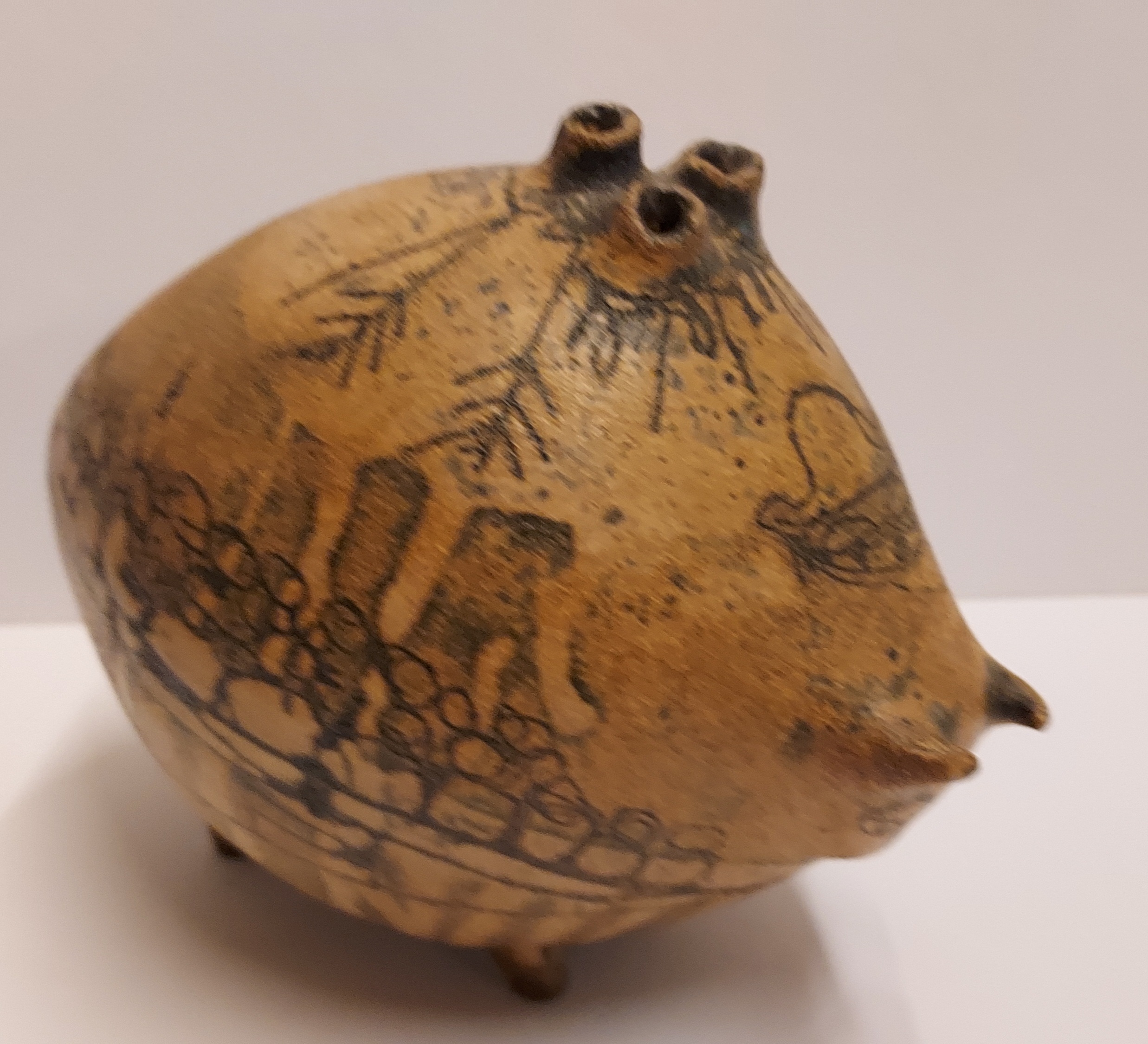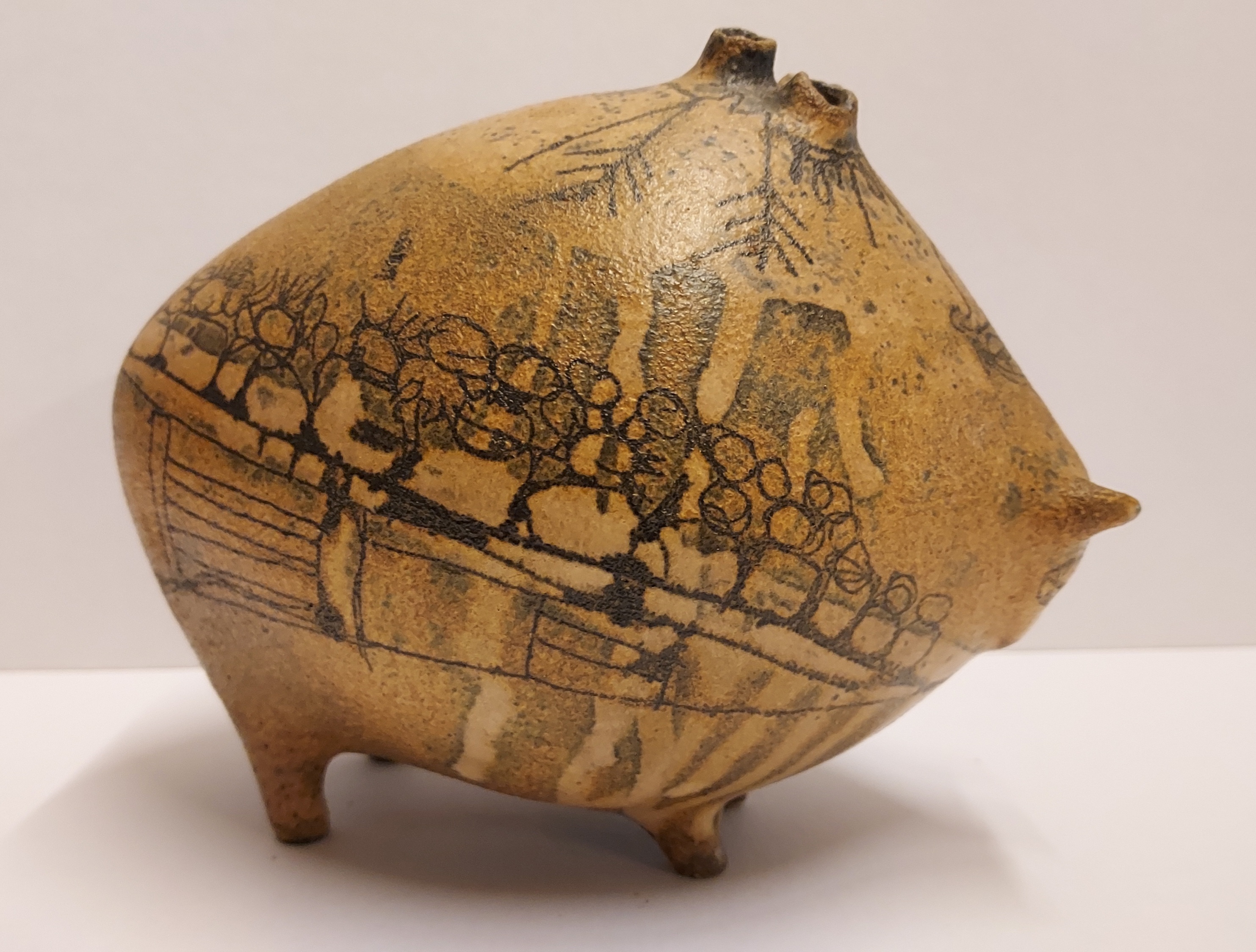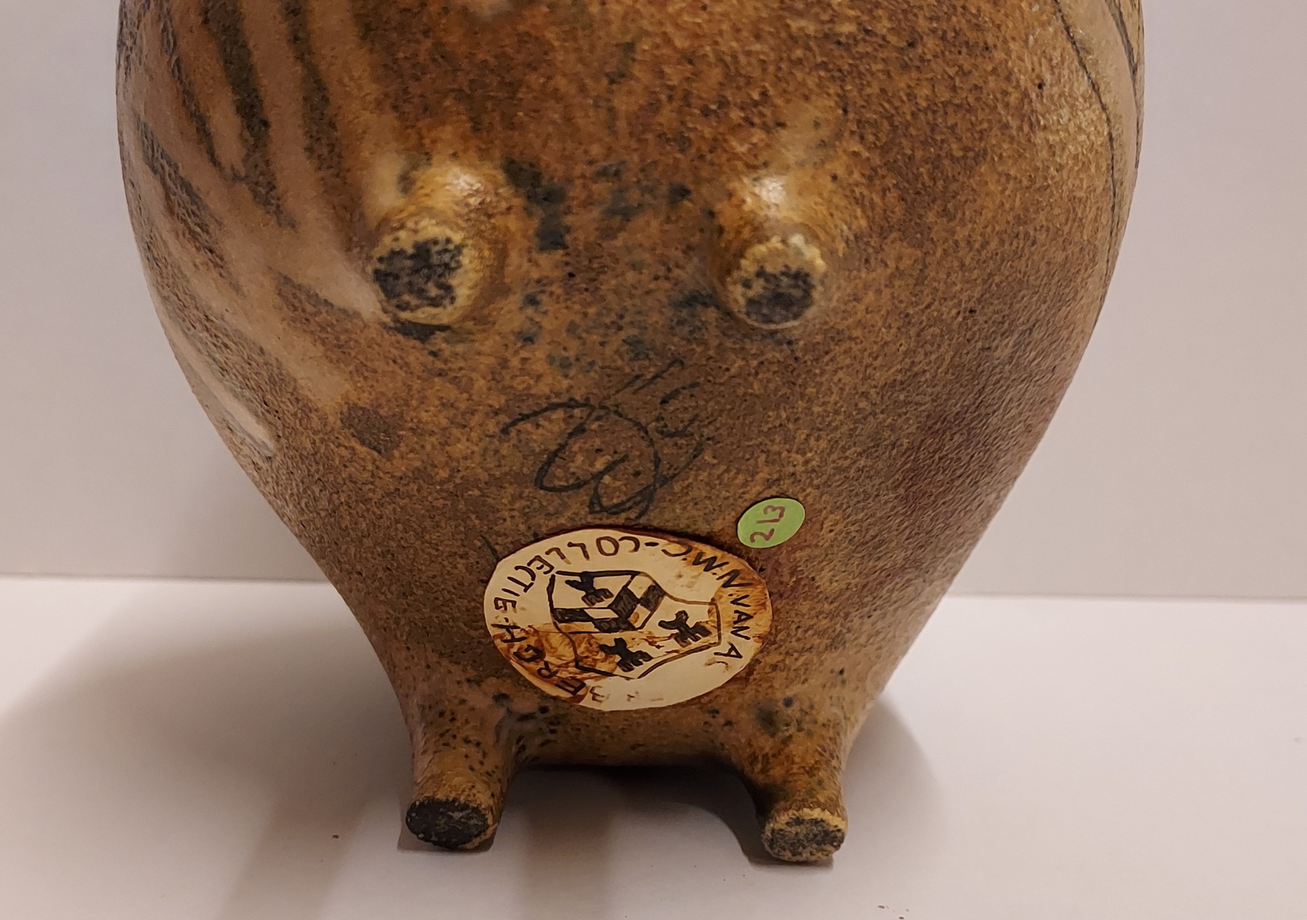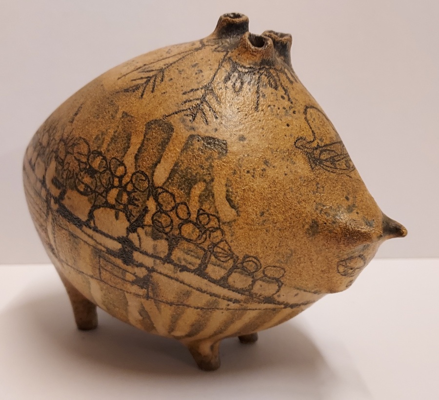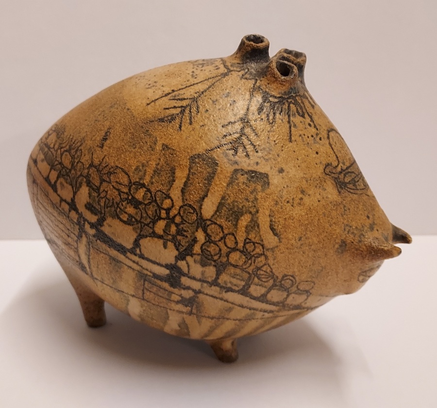 Pezzo modellato a mano in ceramica massiccia "Miereneter" con decorazione incisa. Firmato sul fondo da BvL. Realizzato dal reparto sperimentale della Porcleyne Fles Delft.