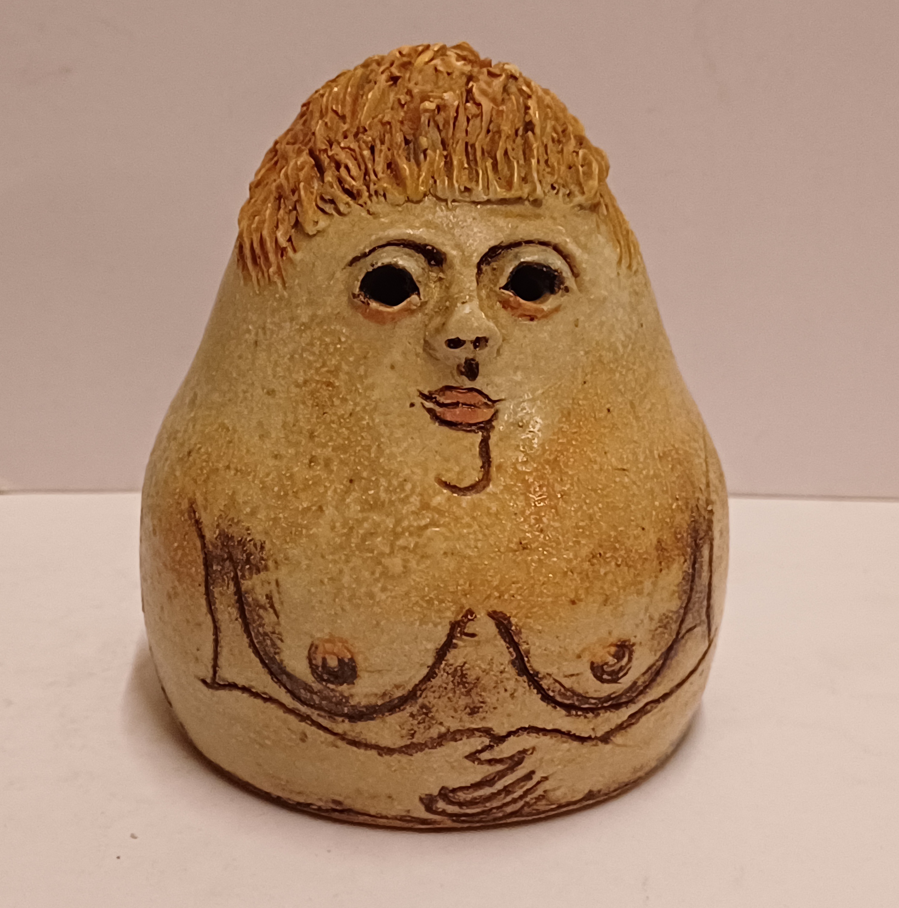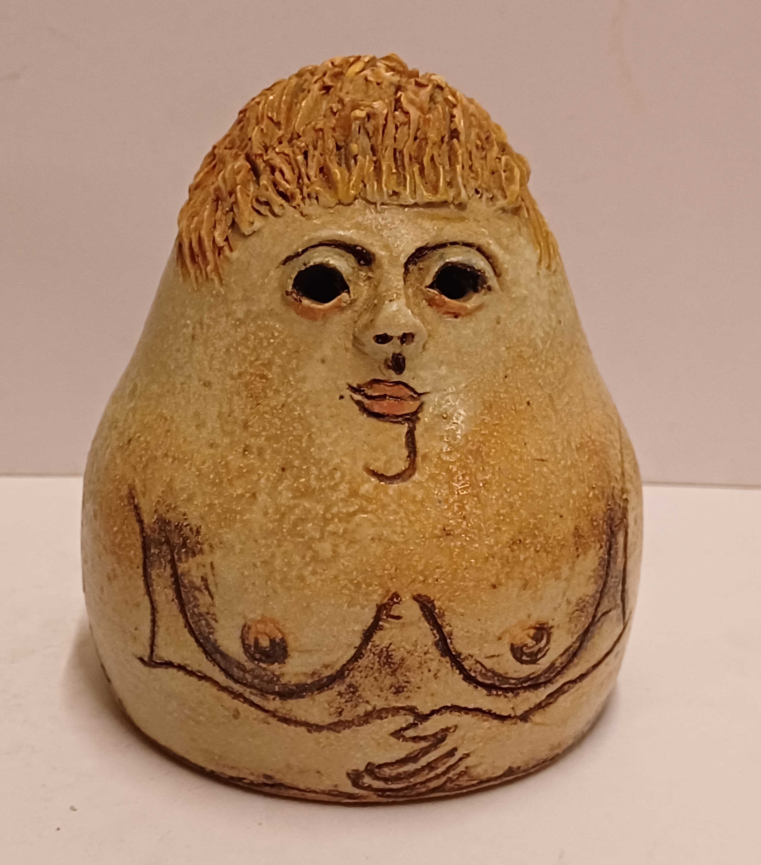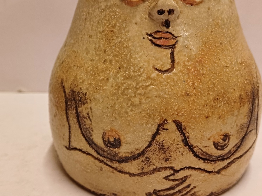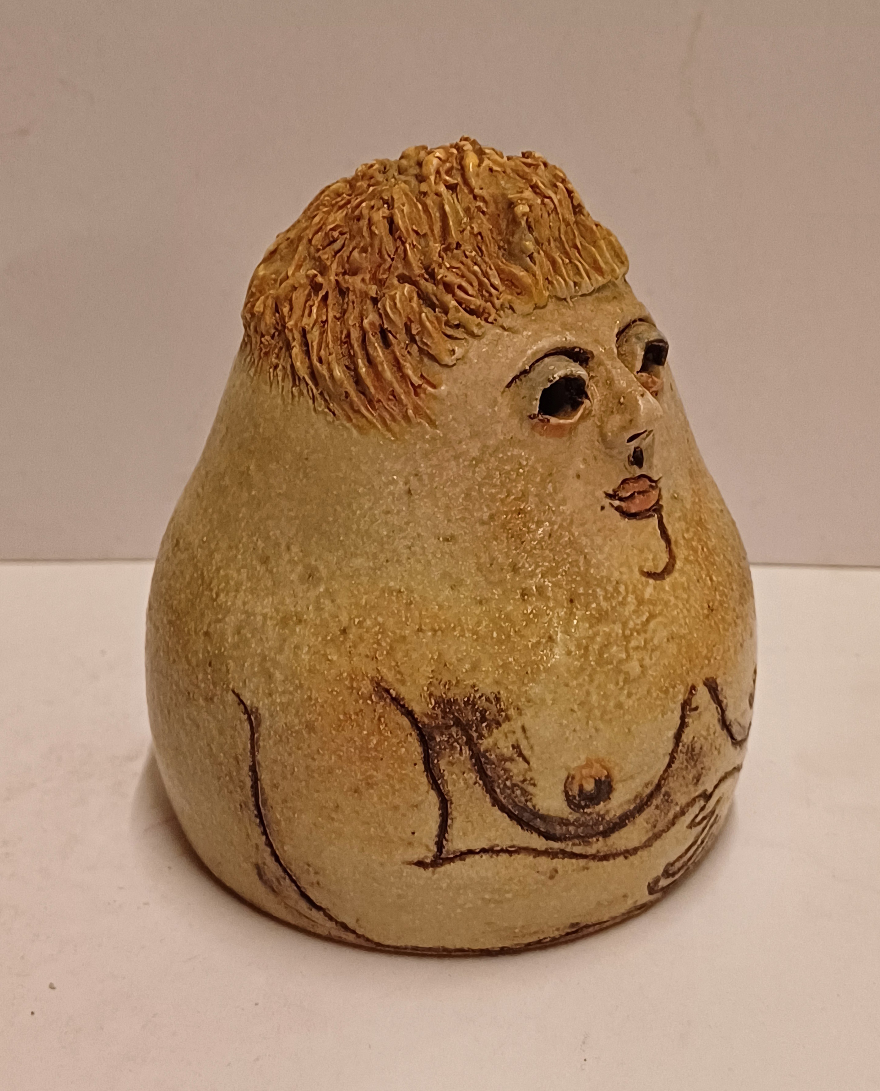 Scultura in ceramica "Saunavrouwtje", retro con firma e spiga di orzo. Inferiore con marchio di collezionista (collezione Brantas).