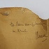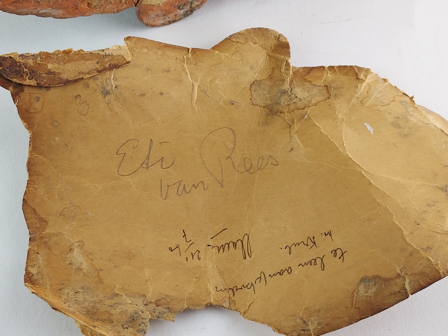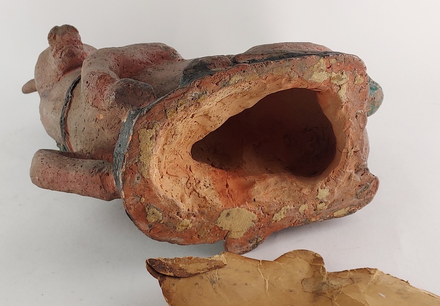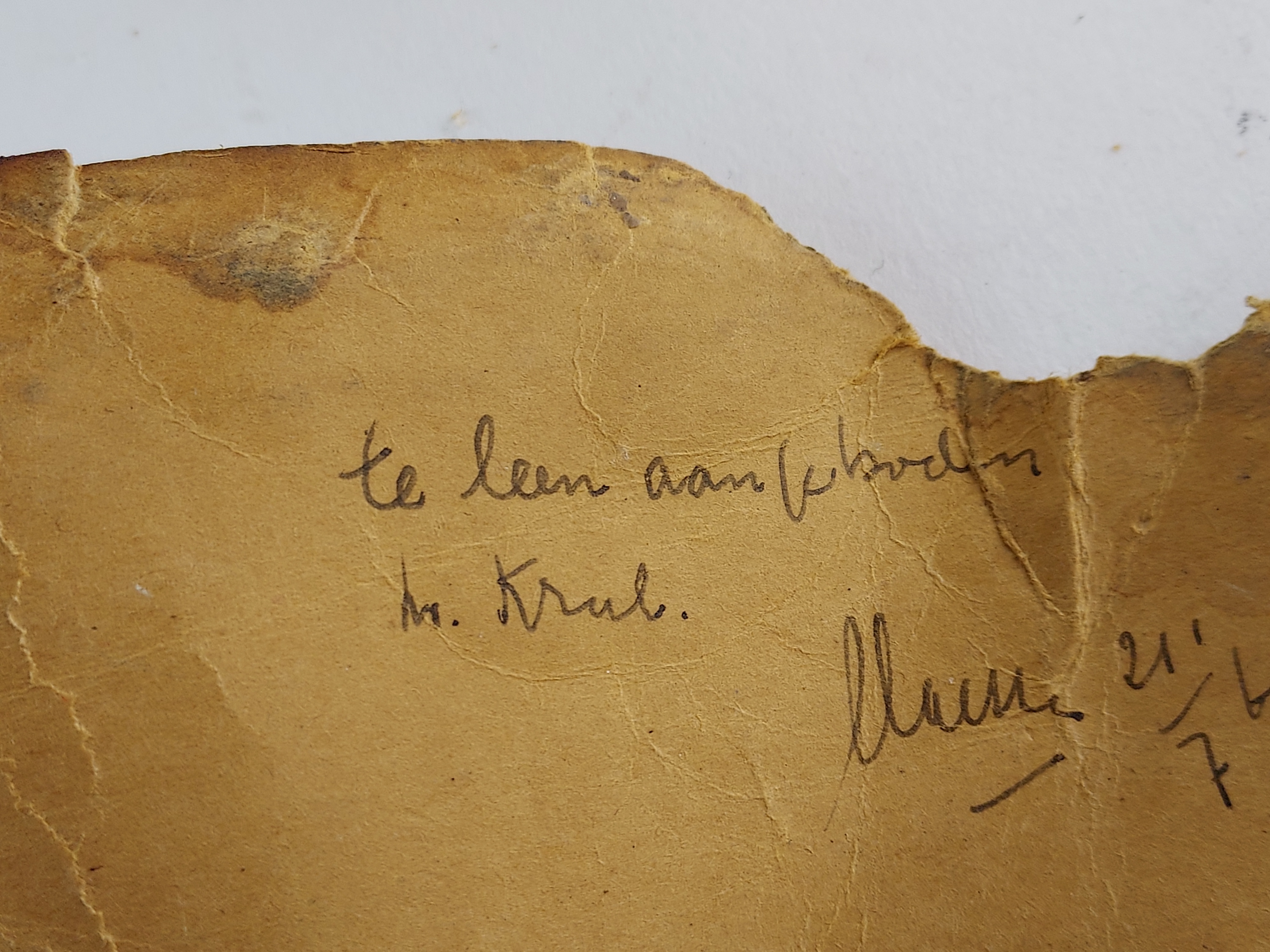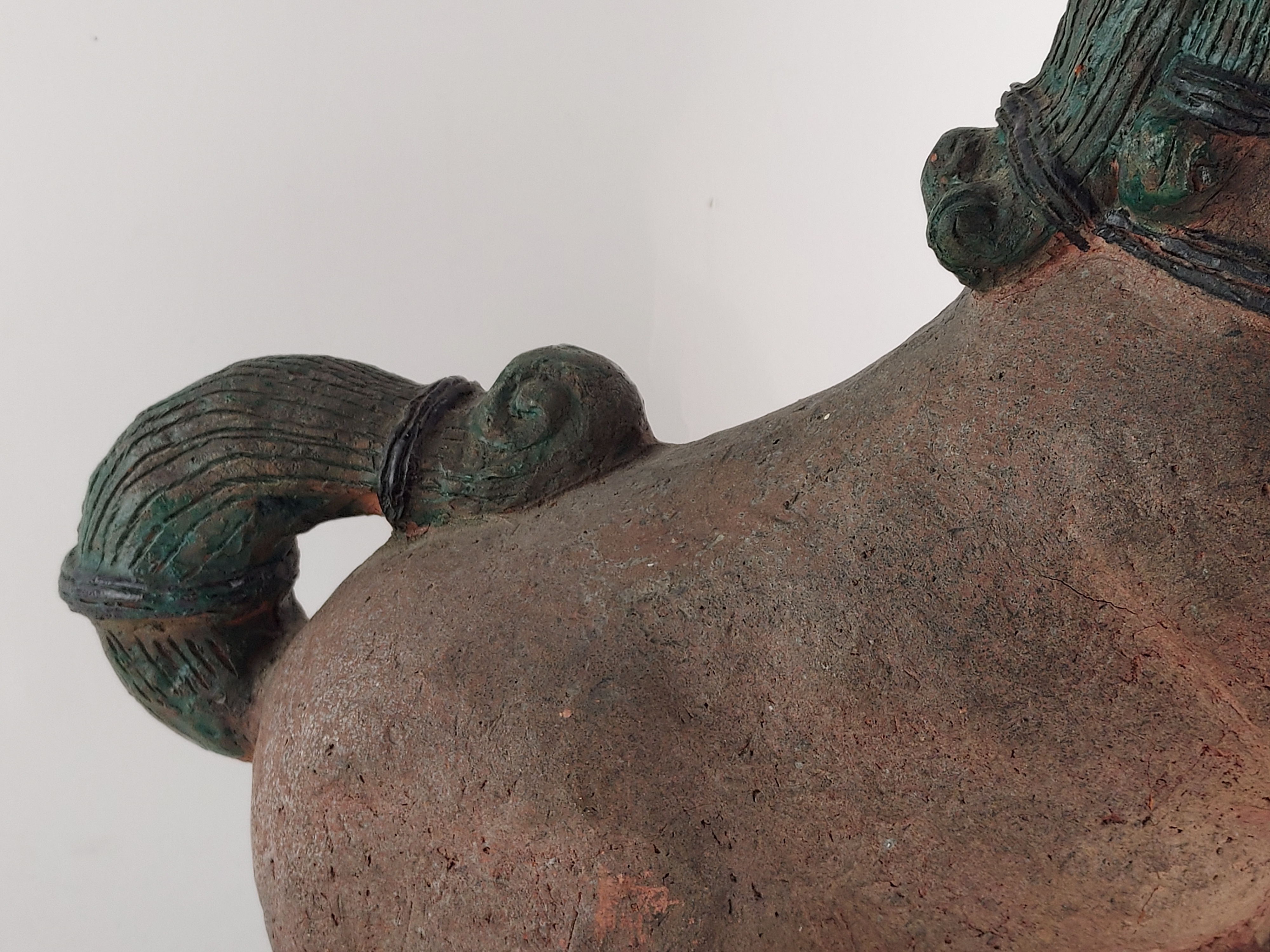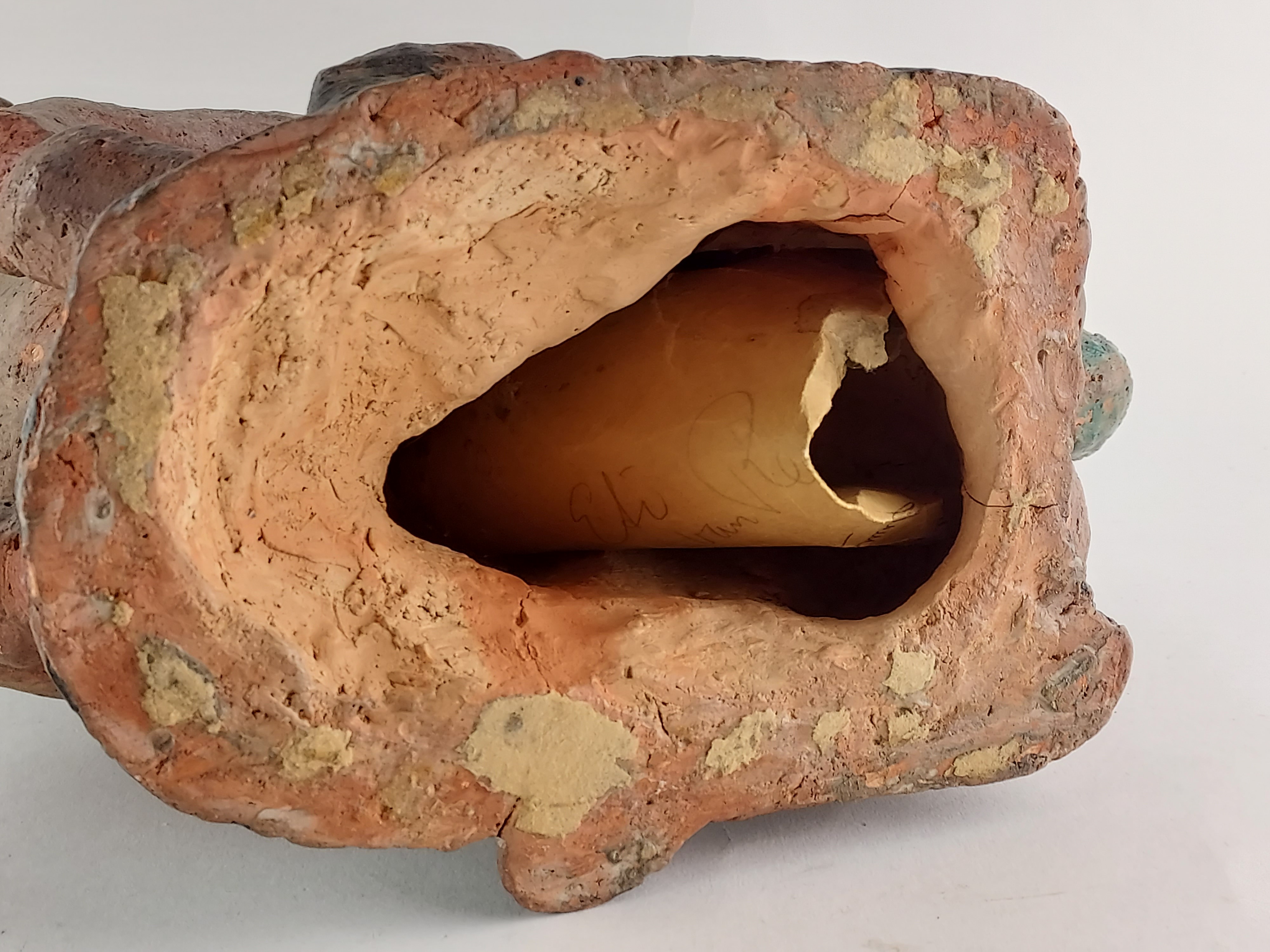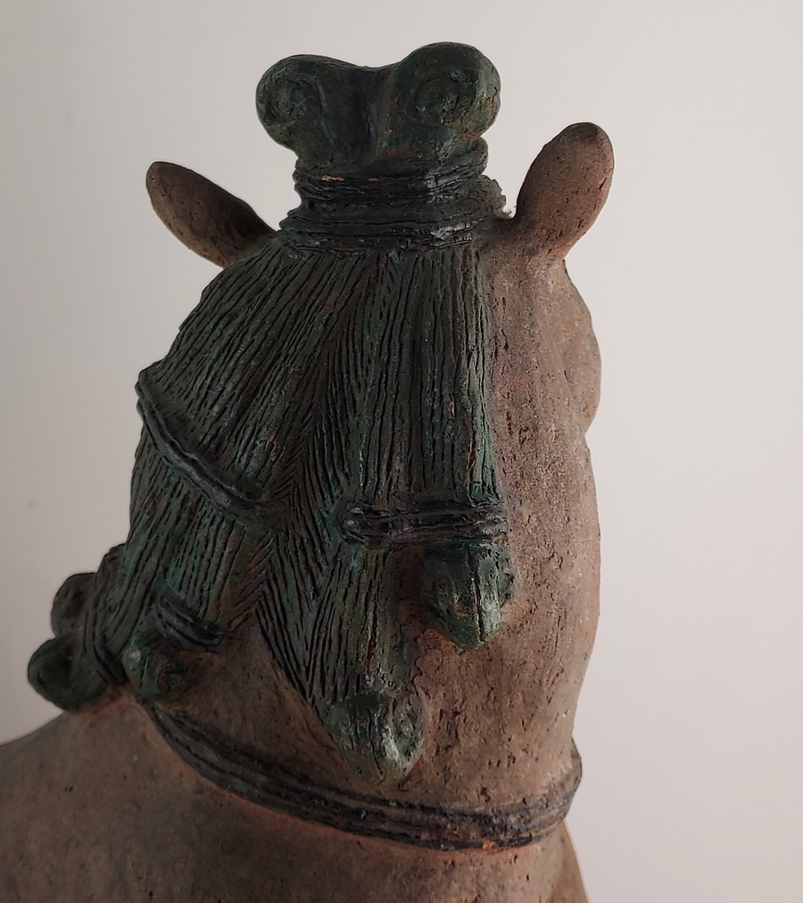 Scultura ceramica modellata a mano raffigurante un cavallo seduto. Non firmata, parte interna con vecchio etichetta cartacea con firma e annotazione "Te leen aan geboden Hr Krul 21/7 60". Realizzata nel proprio atelier a Wassenaar.