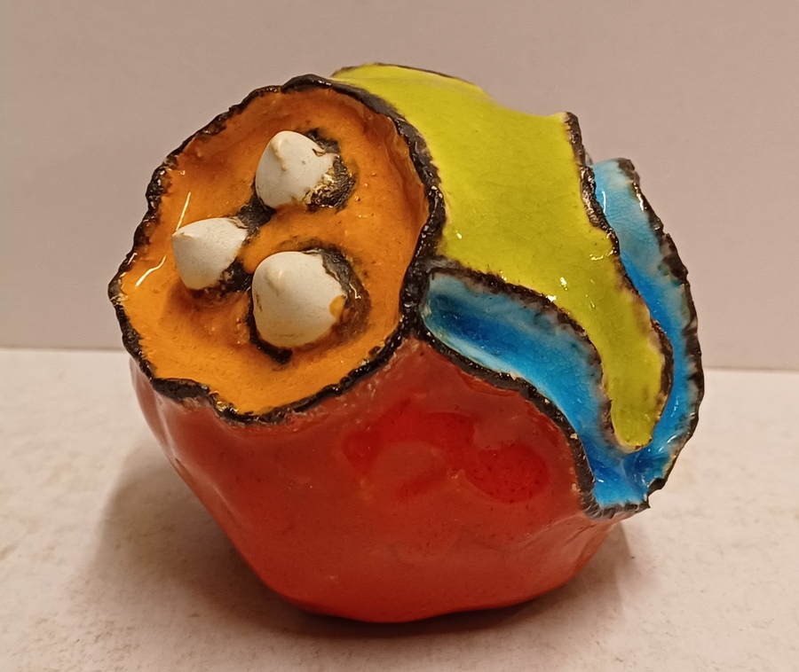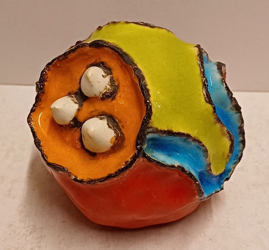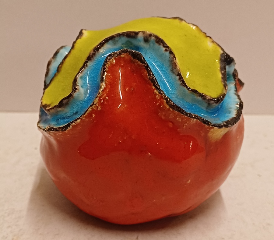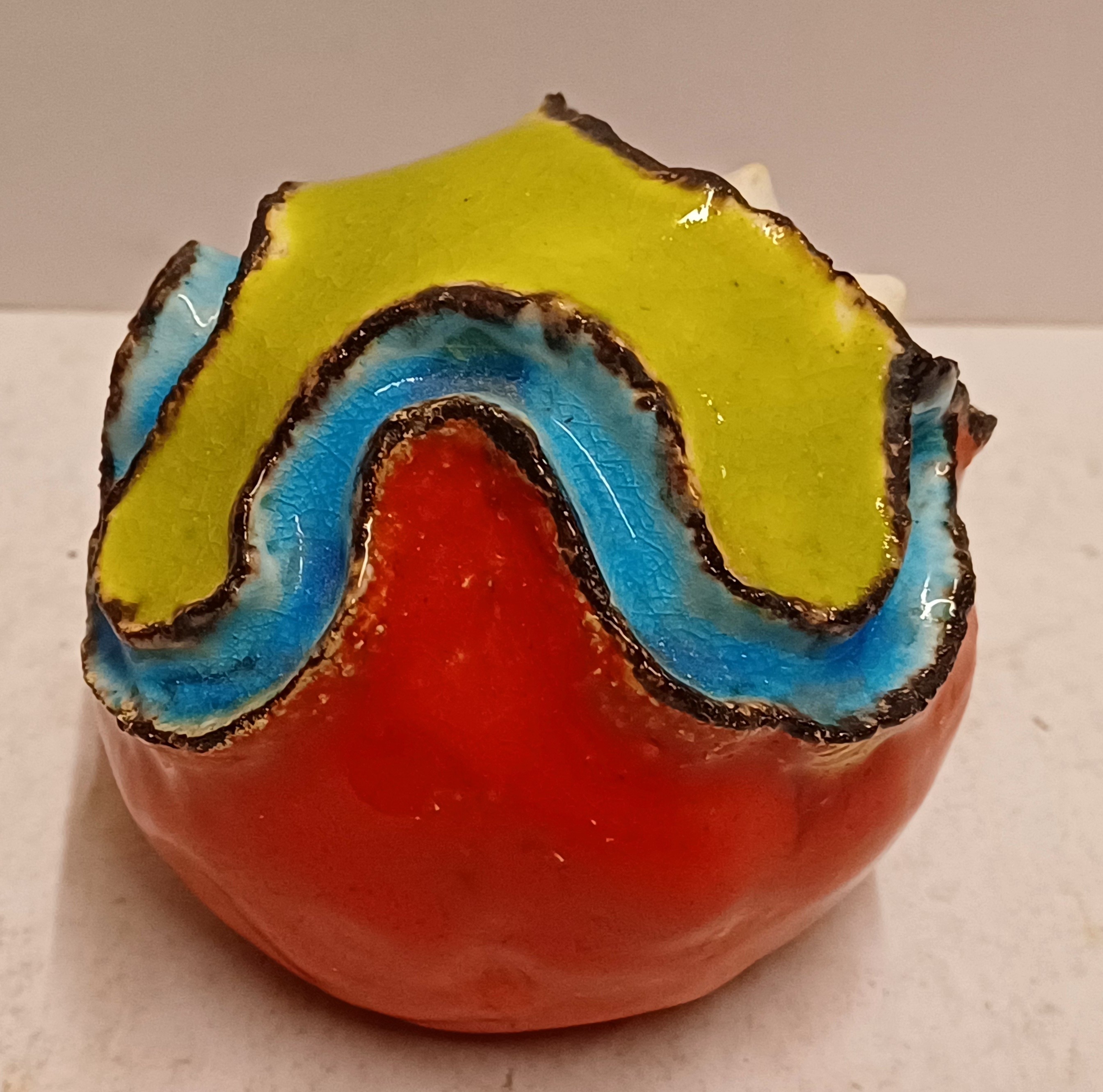 Aardewerken bol sculptuur in de vorm van een planeet. Niet gesigneerd