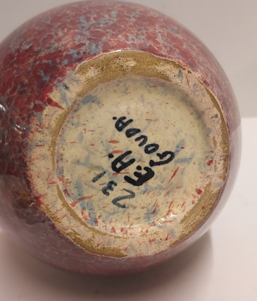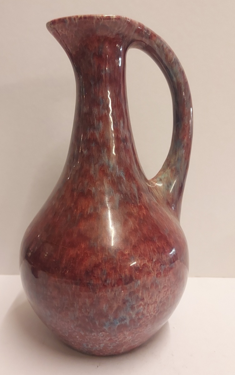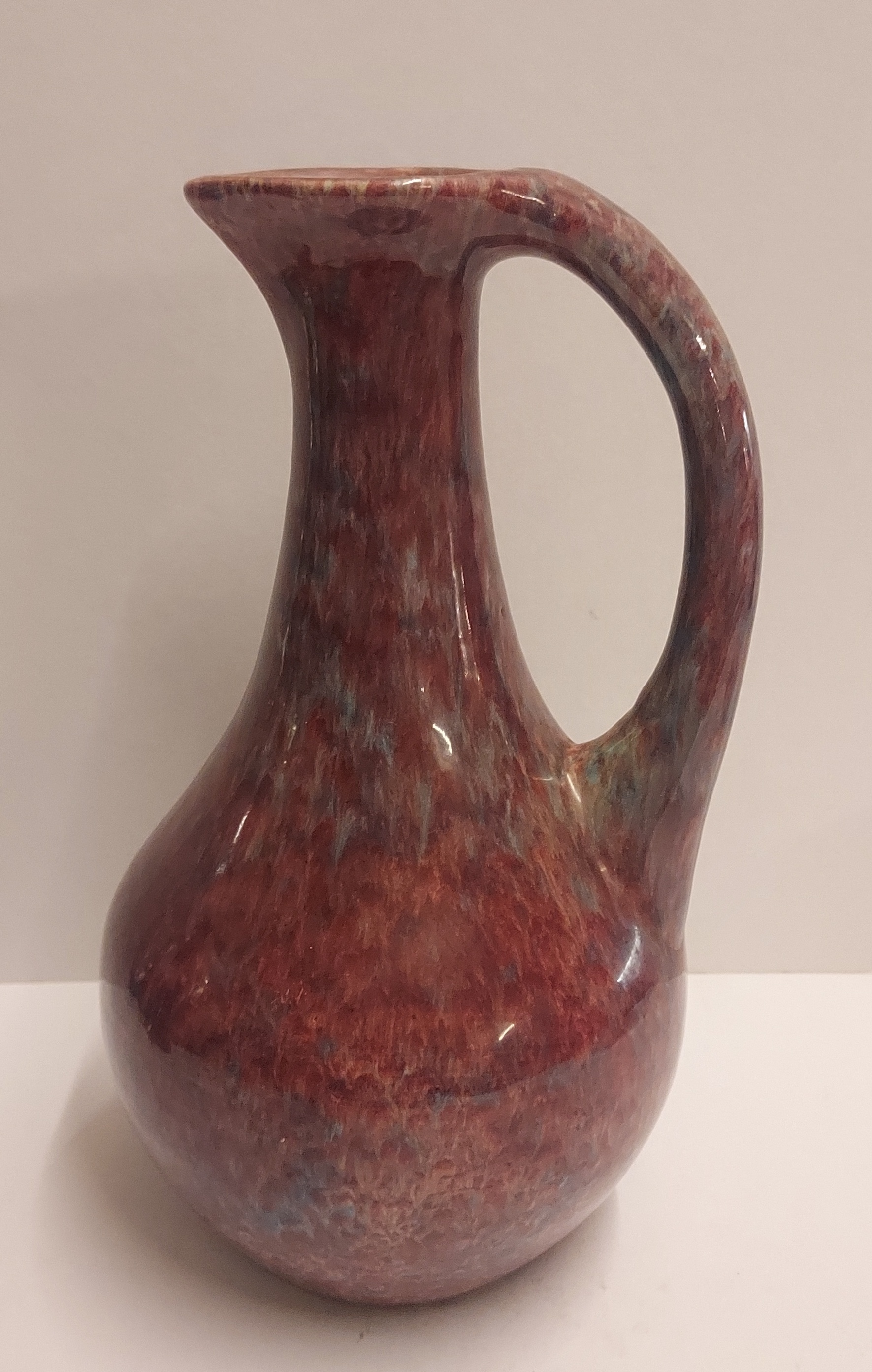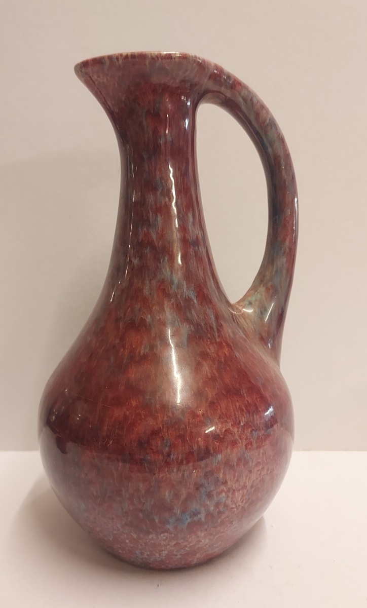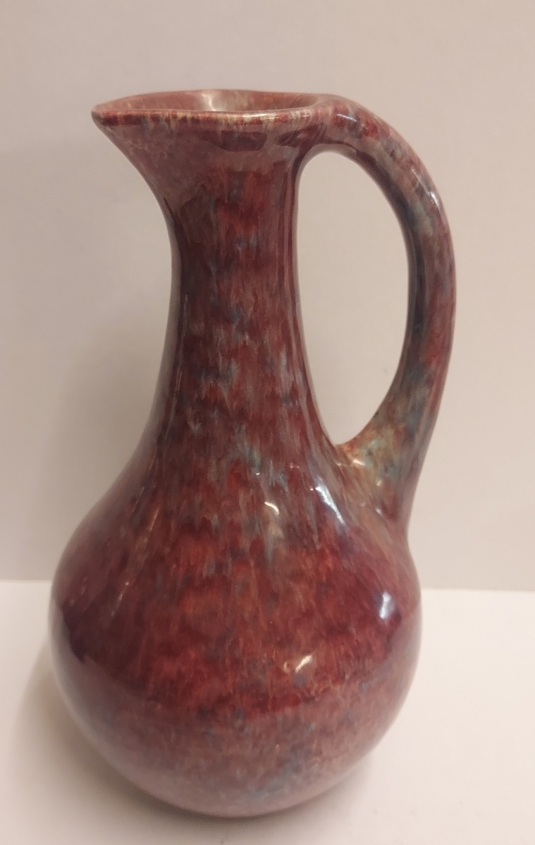 Brocca in Pars rosso maculato con manico alto. Sul fondo firma E.A. Gouda e numero di modello 231.