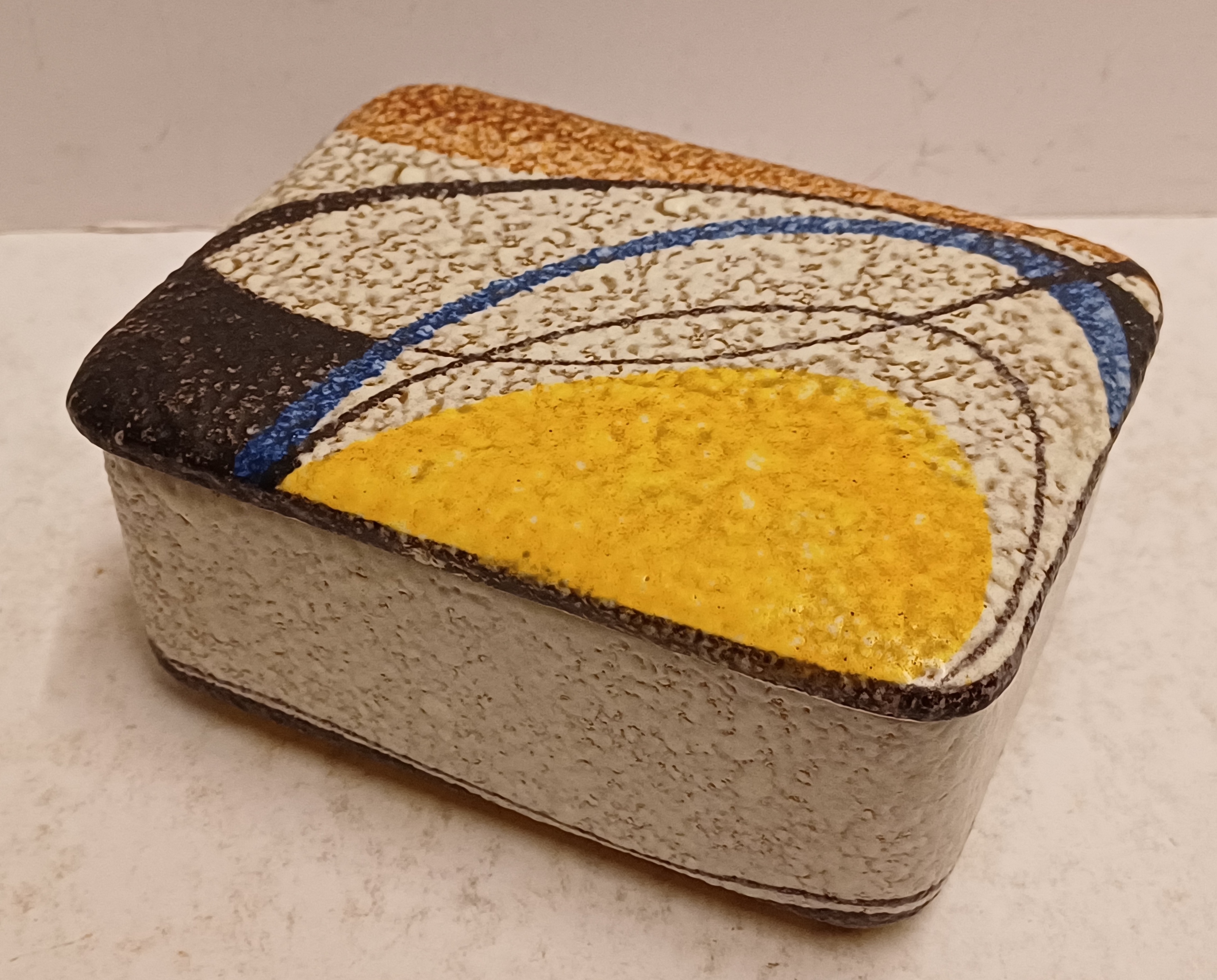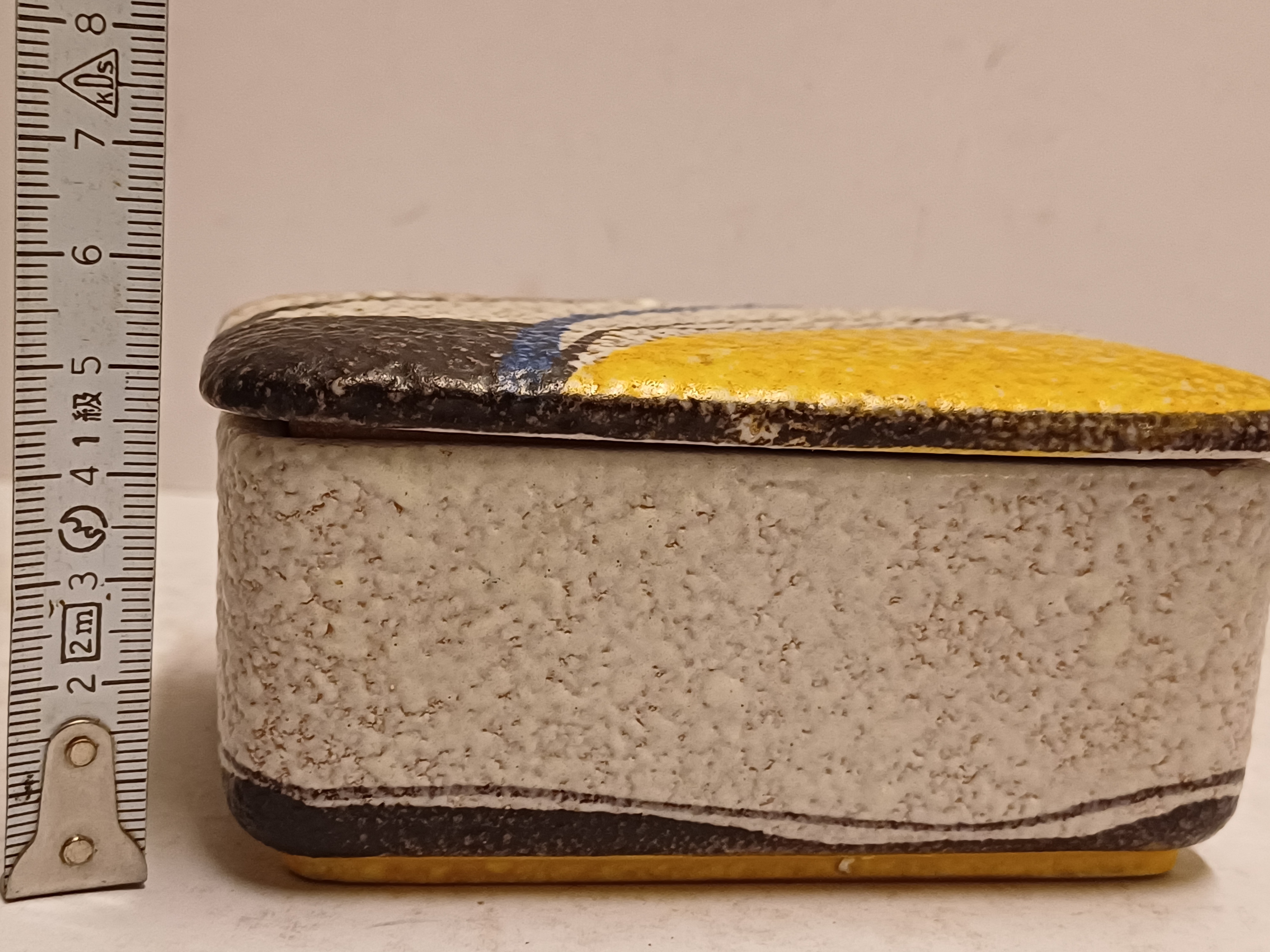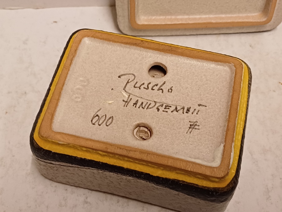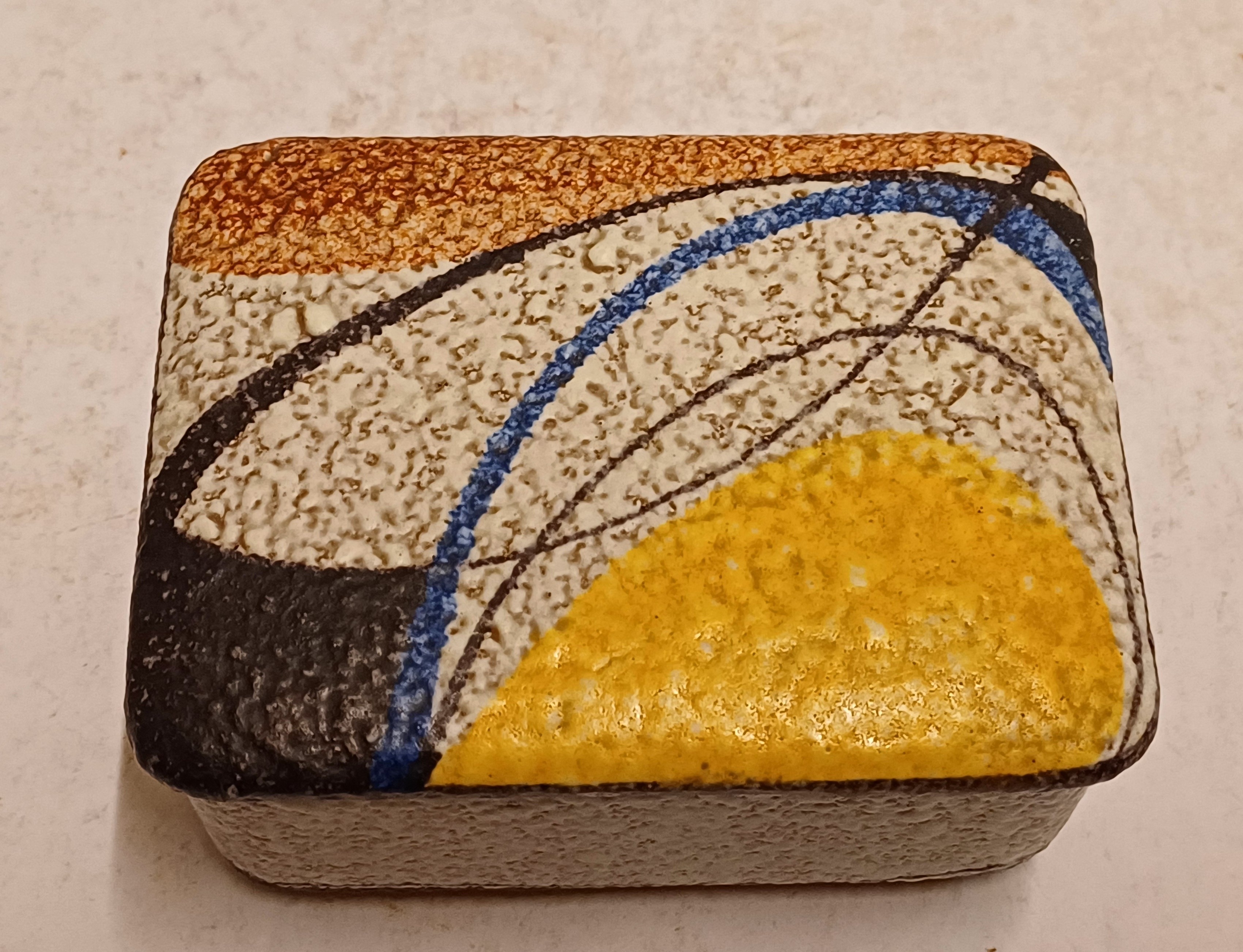 Dekseldoos voor sigaretten met gestileerd decor Milano naar ontwerp van Rudolf Schardt. Uitvoering Ruscha, onderzijde met signatuur.
