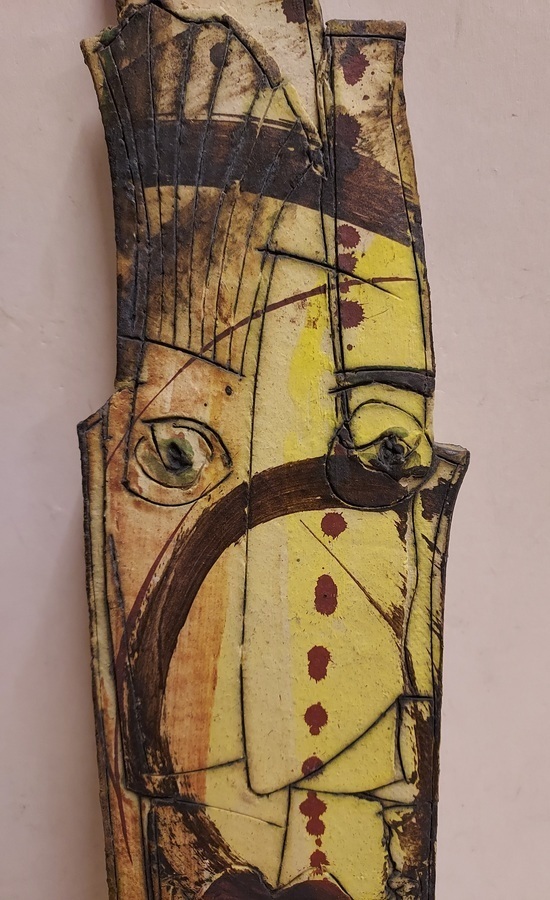 Piastrella con un volto. Firmata e datata '69 o '89.