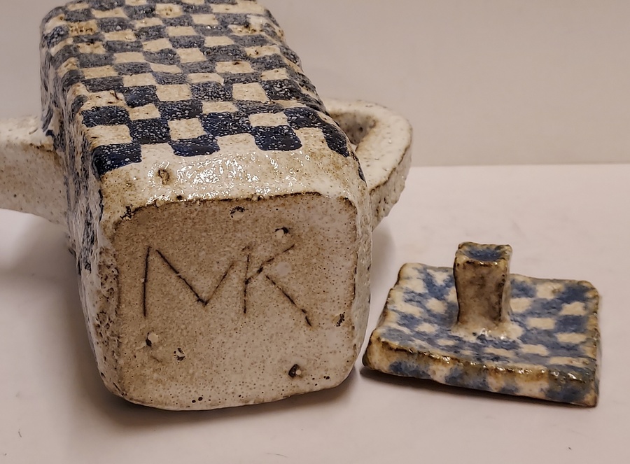 Con motivo a quadretti blu. Parte inferiore marcata MK.