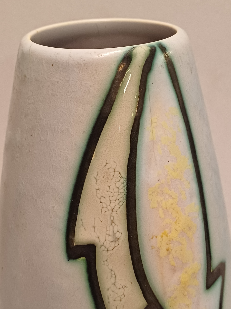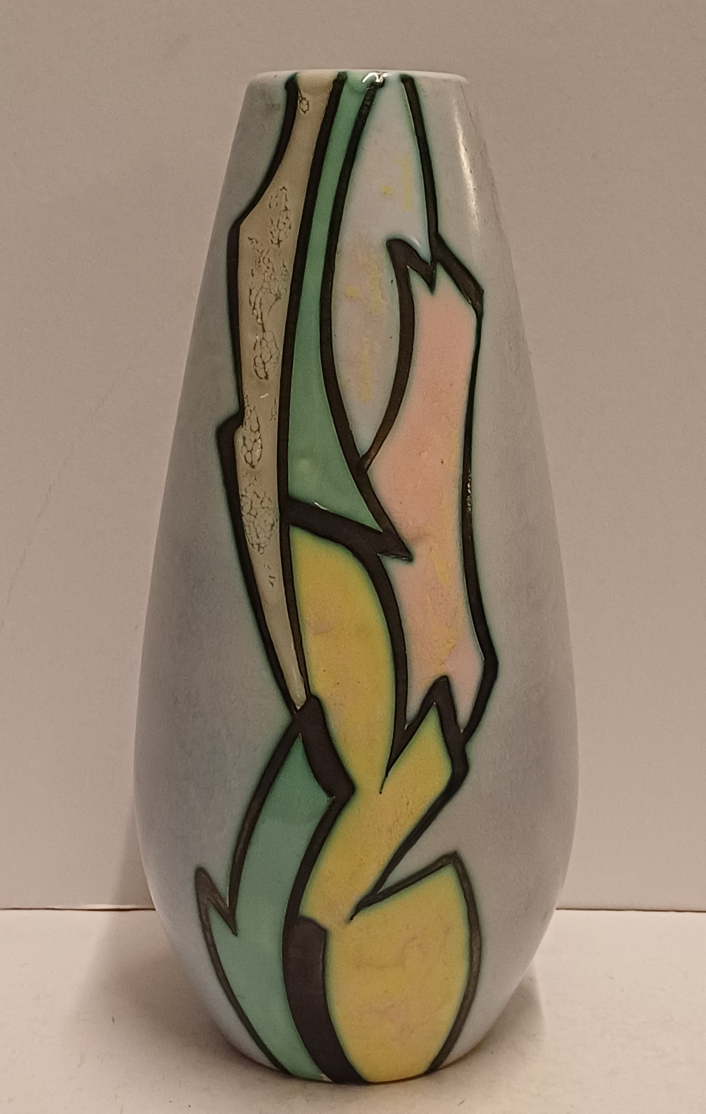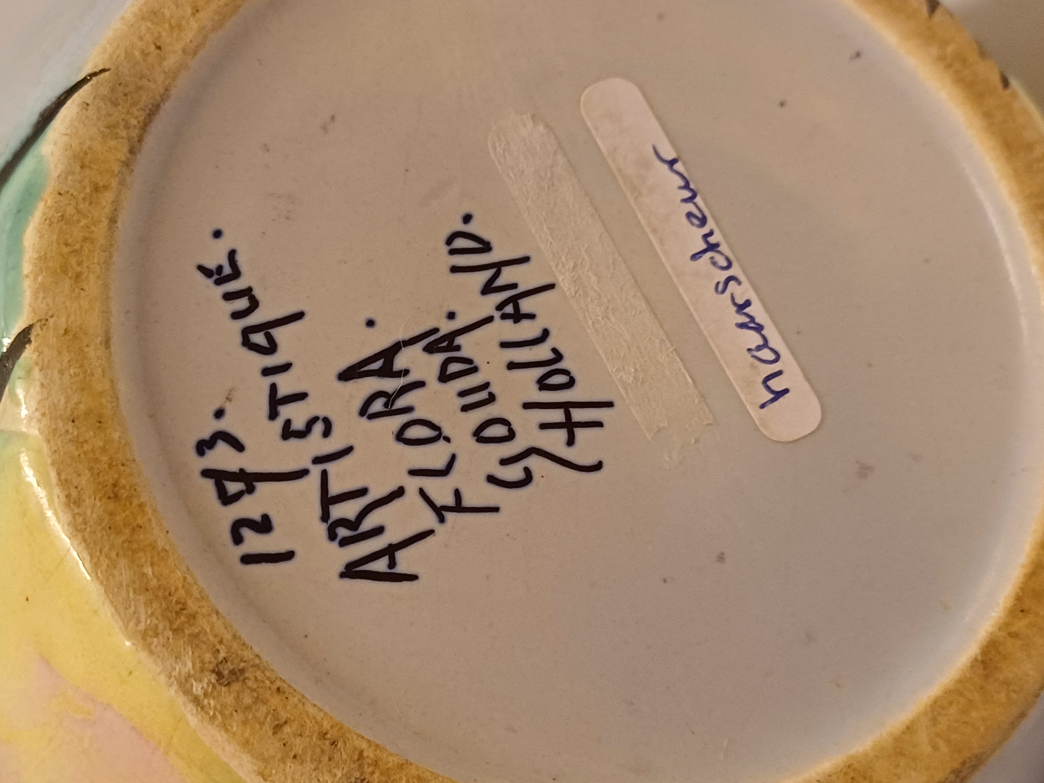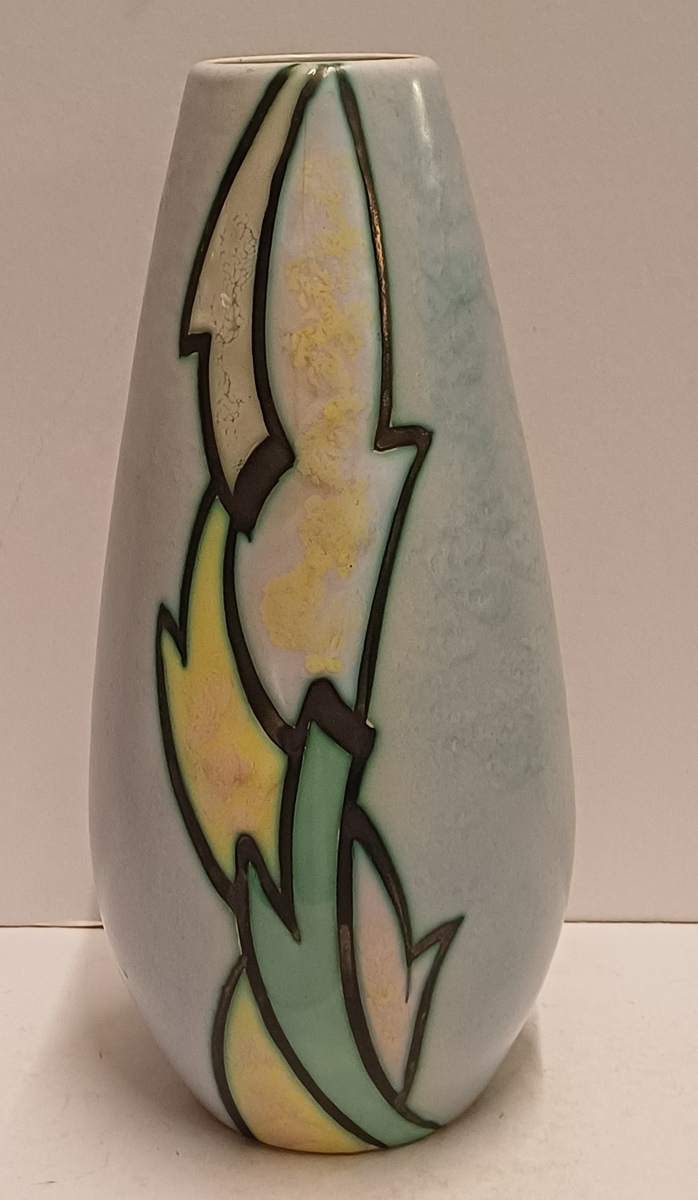 Platelen vaas met decor artistique. Onderzijde met fabrieksmerk en modelnummer.
