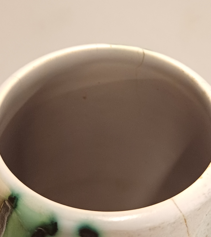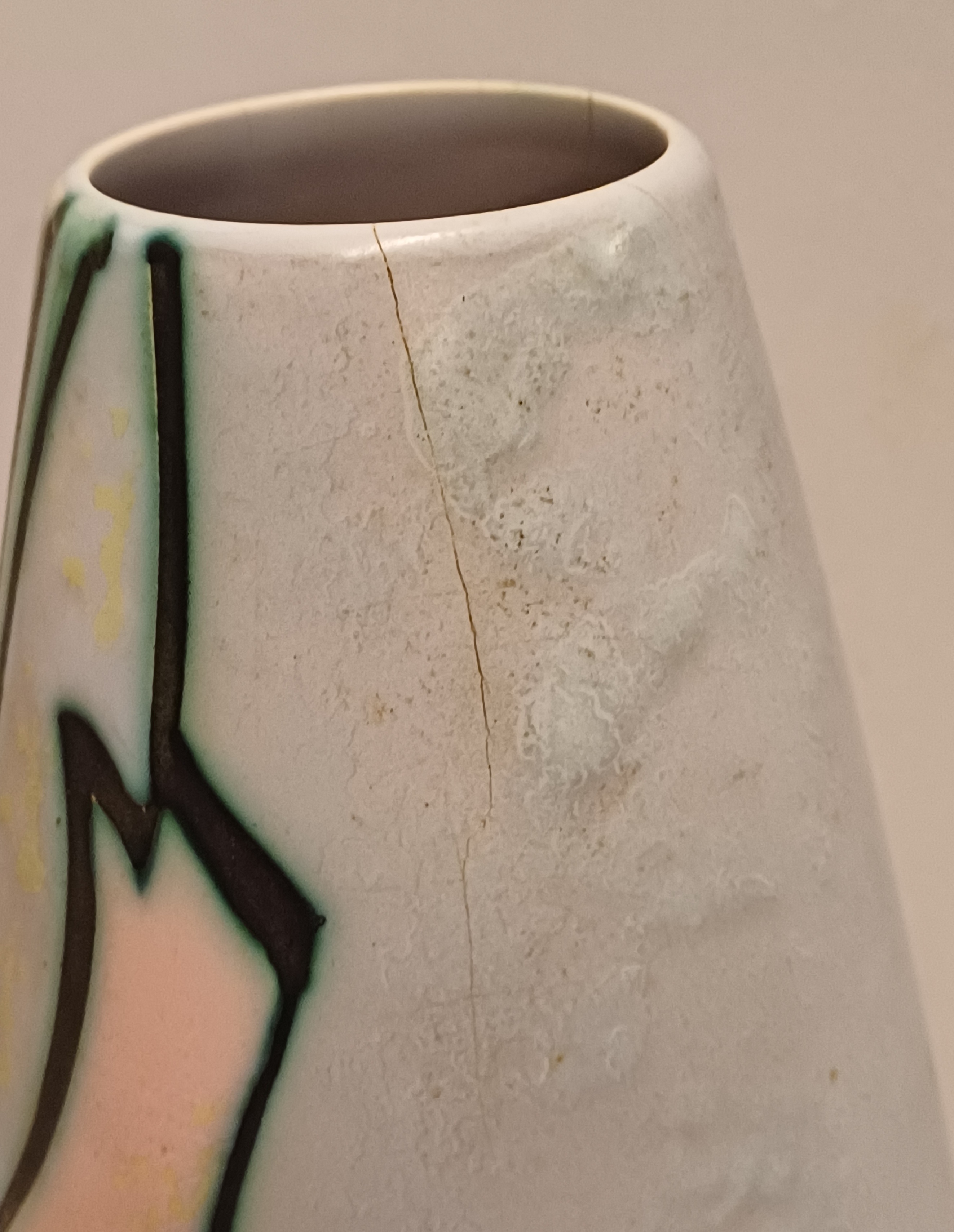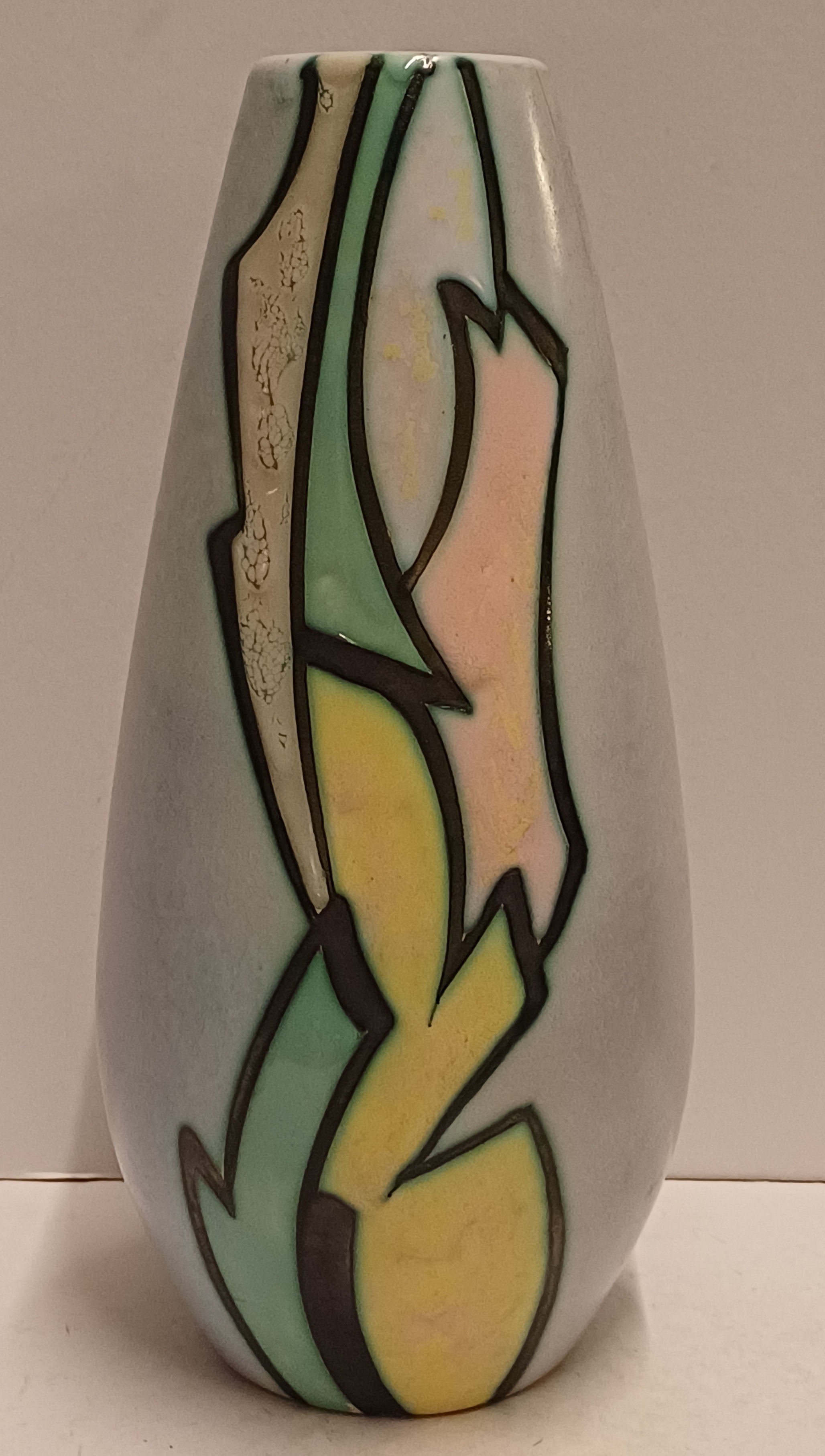 Platelen vaas met decor artistique. Onderzijde met fabrieksmerk en modelnummer.