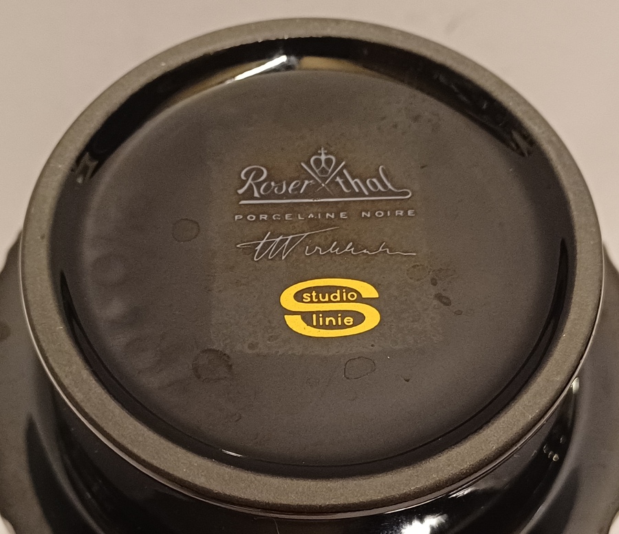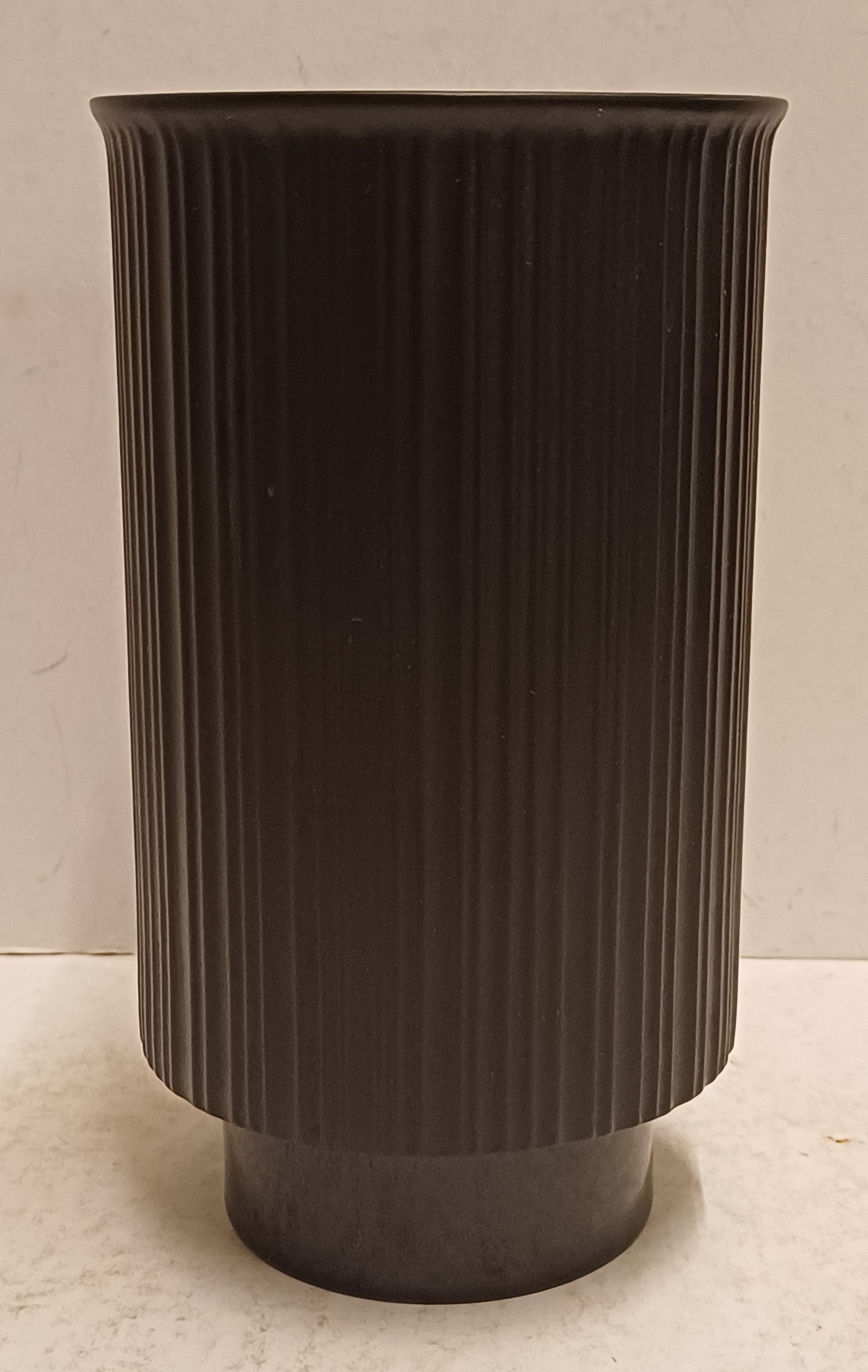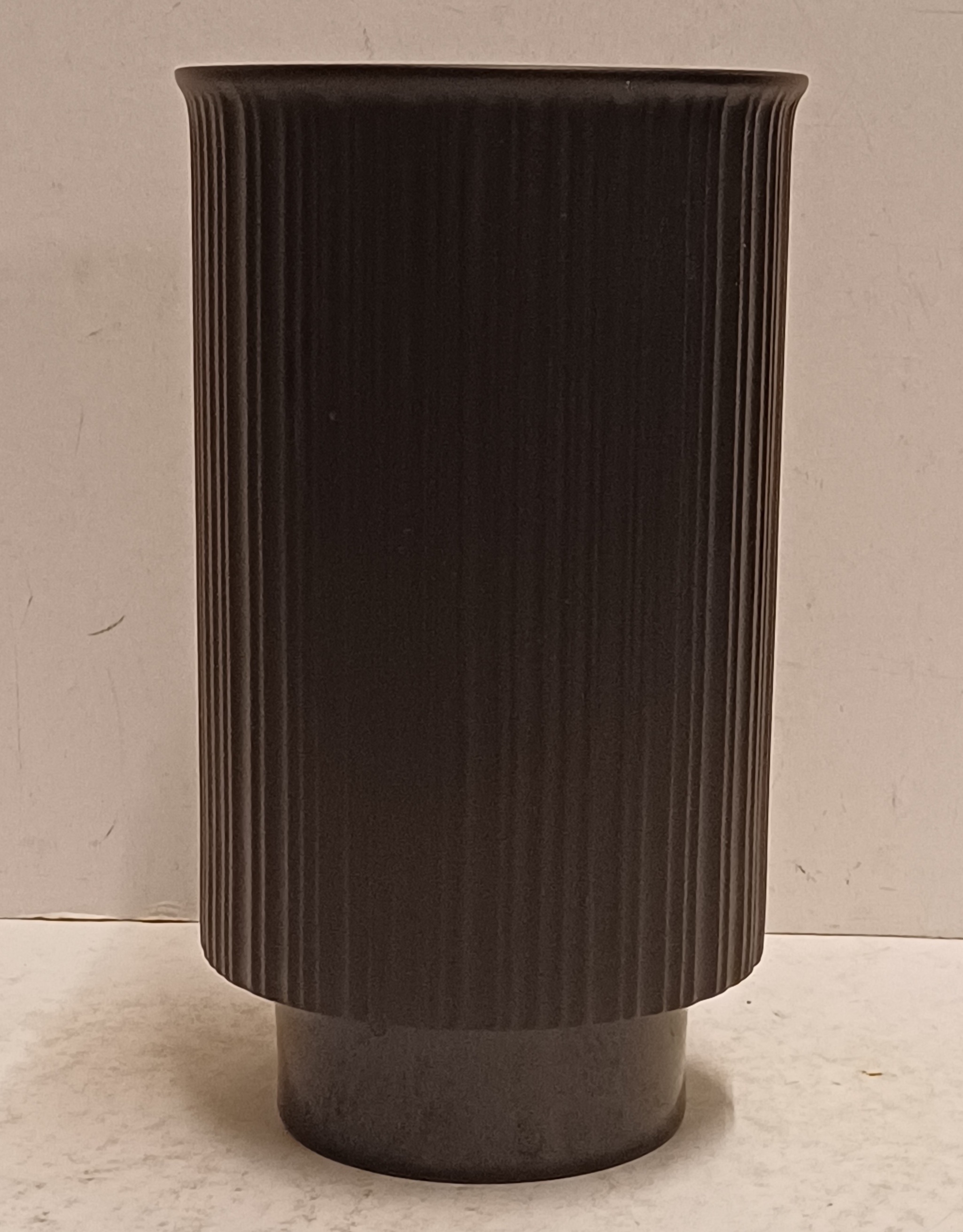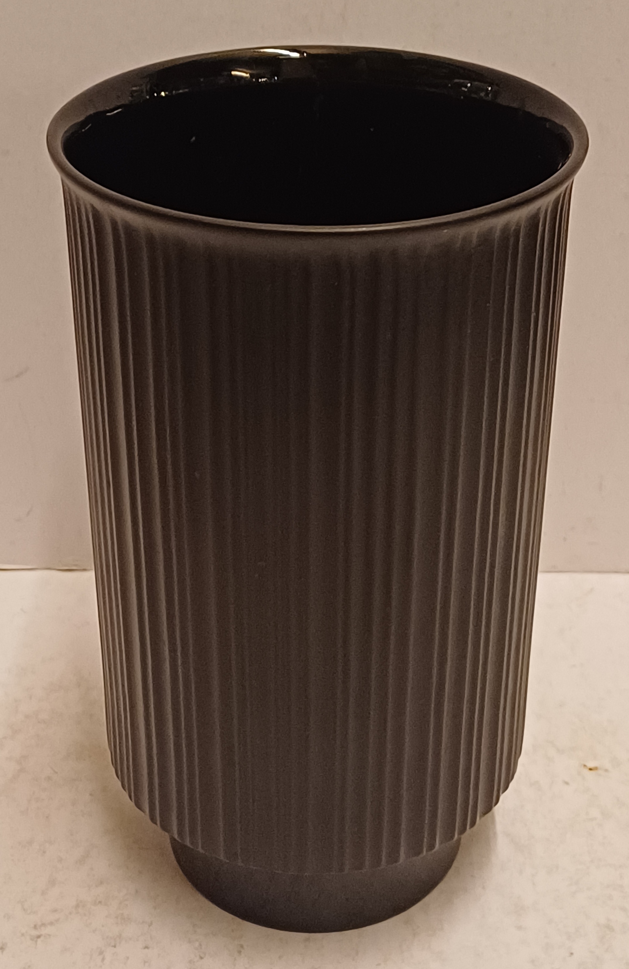 Porcelain Noire vaas met deels gematteerd oppervlak met verticale fijne lijnen. Onderzijde met fabrieksmerk en kunstenaars signatuur.