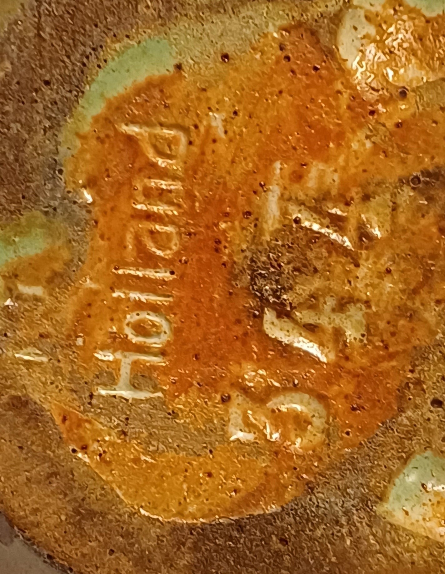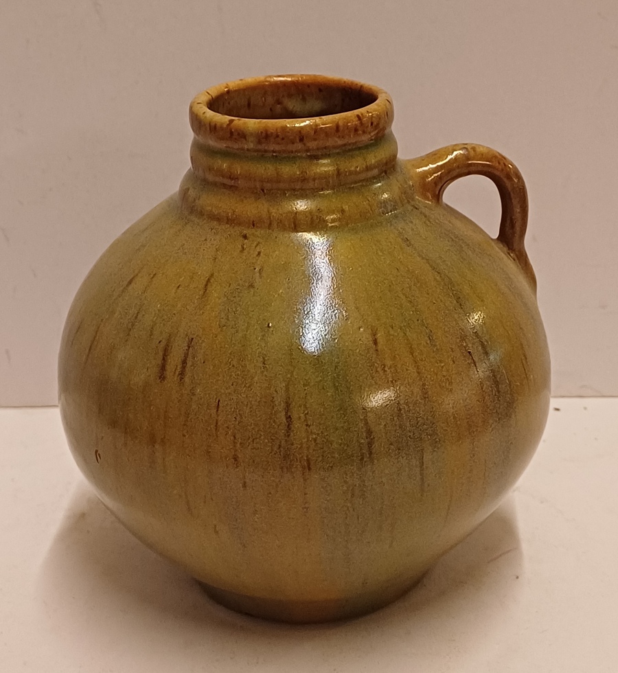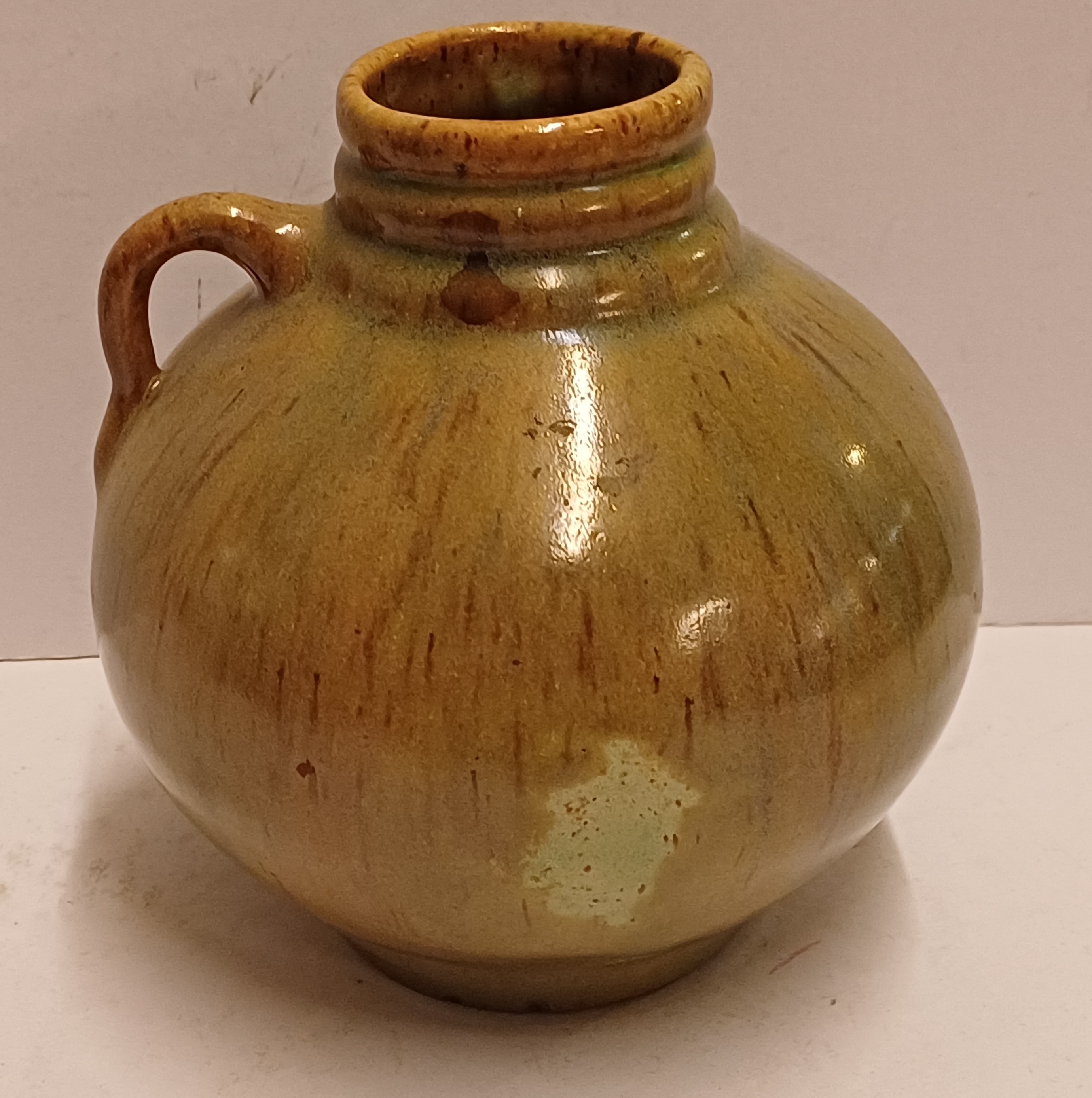 Vasetto con manico e smalto lucido. Parte inferiore con marchio di fabbrica.