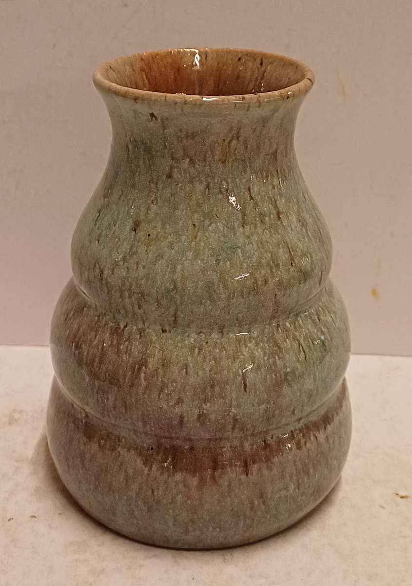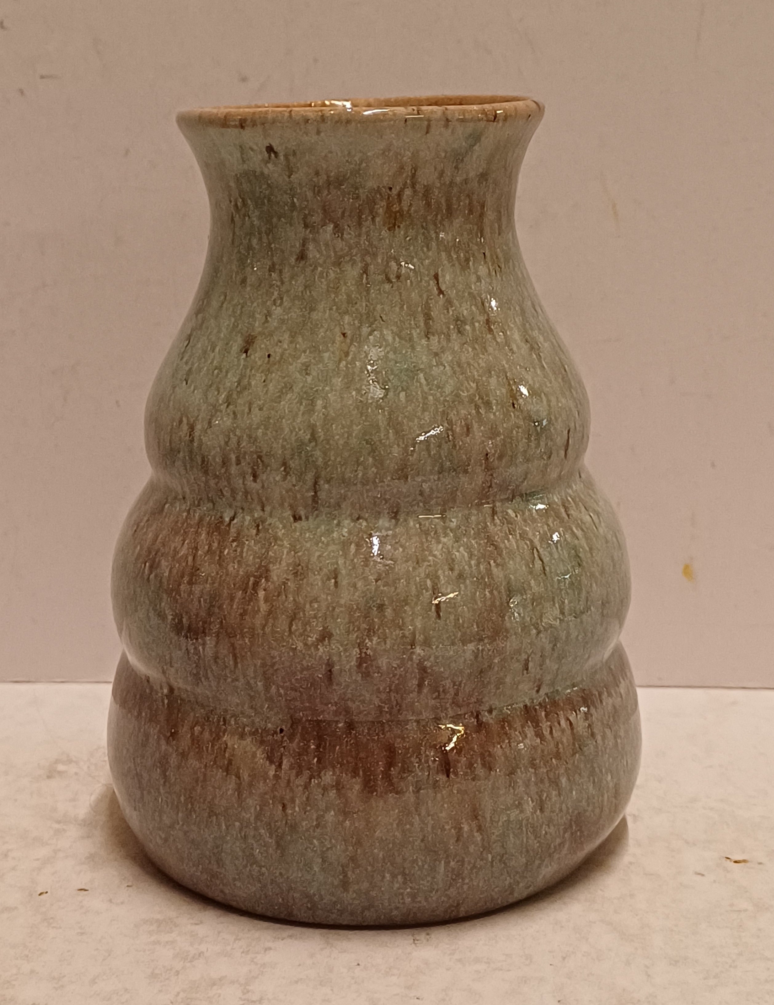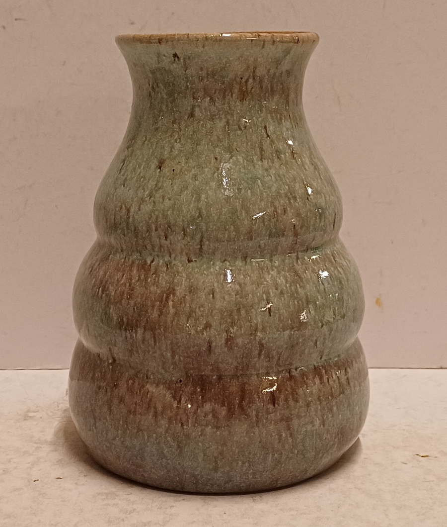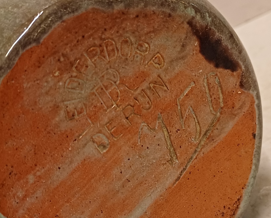 Vroege vaas met meerkleurige glazuur. Onderzijde met DR Fabrieksmerk.