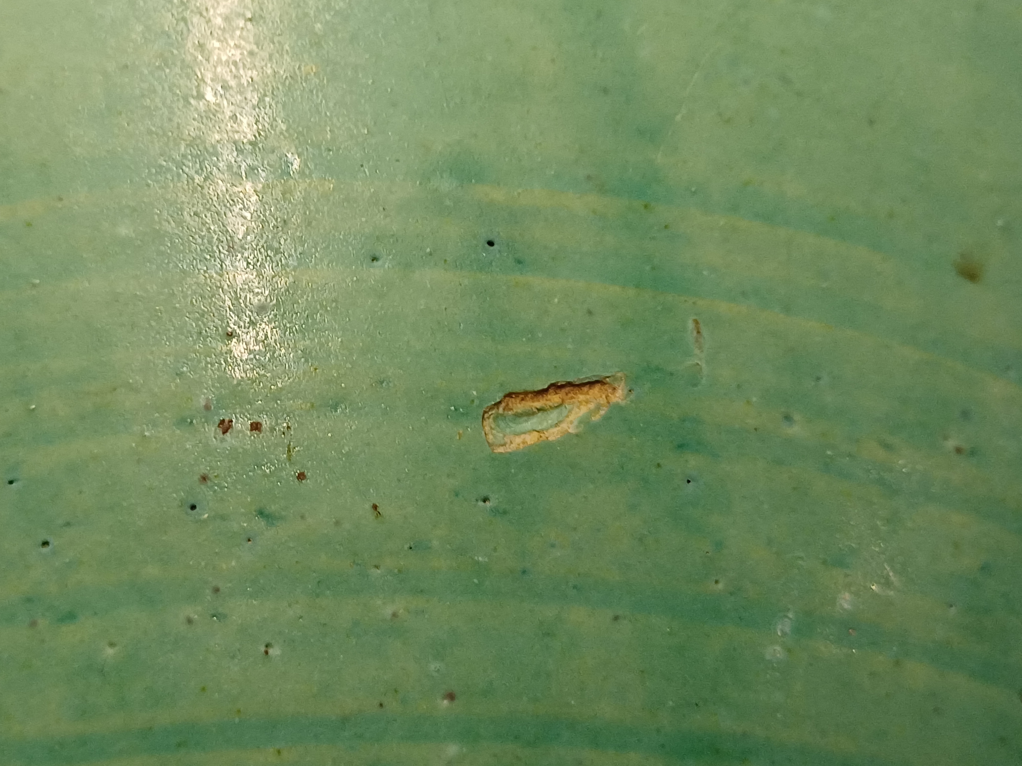 Aantal plekjes op de mondrand en 1 schaafplek op de buik.