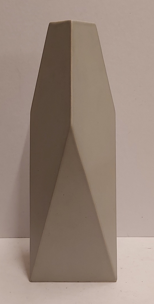Vaso con smalto grigio e superfici appiattite. Firmato e datato '83 sul bordo inferiore.