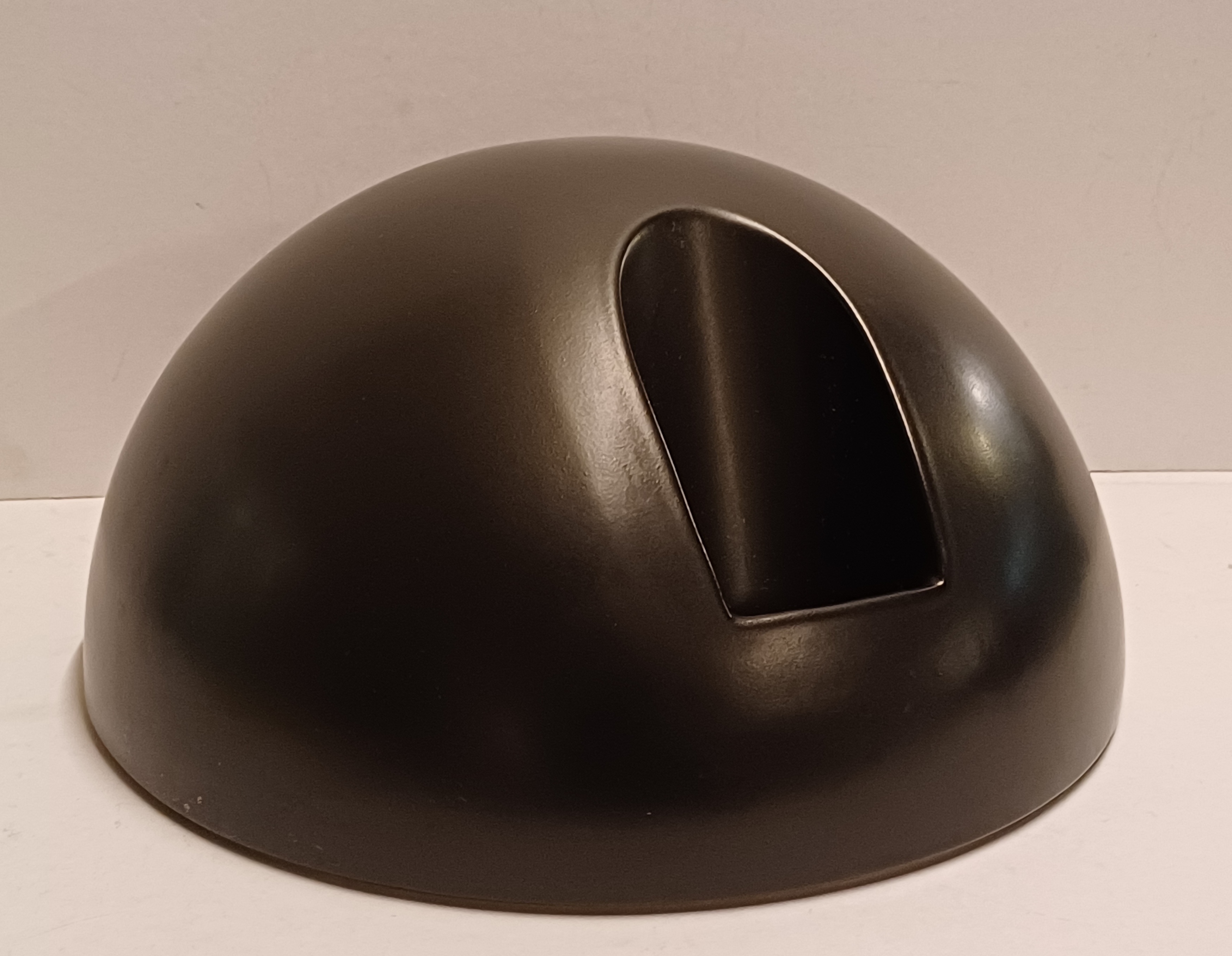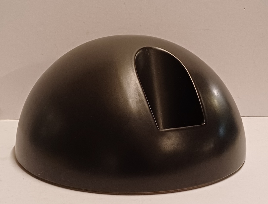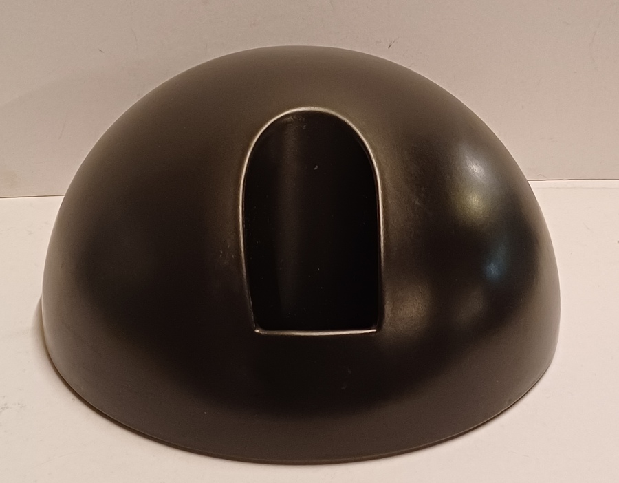 Semisfera smaltata in nero con apertura sul fronte. Parte inferiore con timbro Makkum Oar wurk.