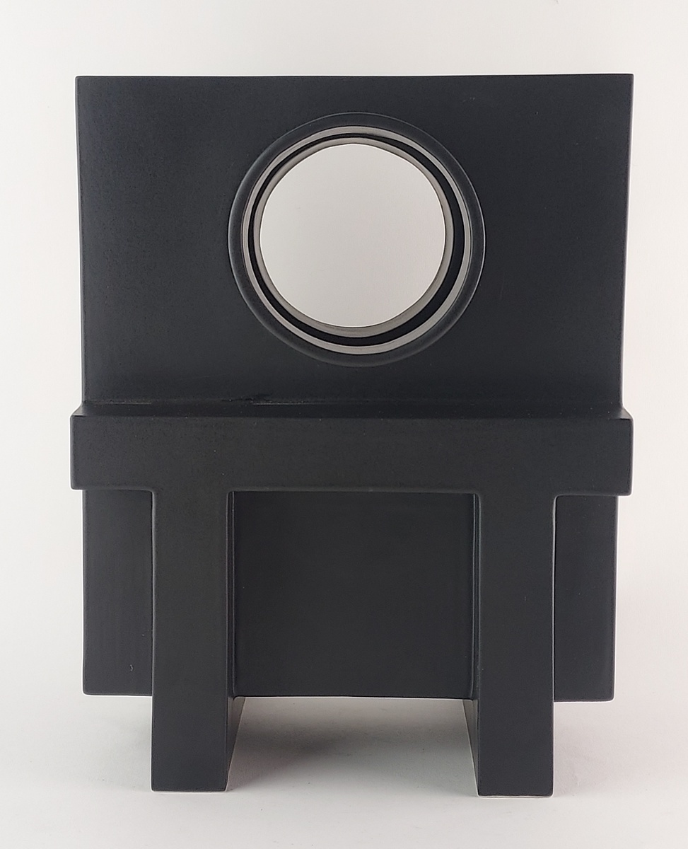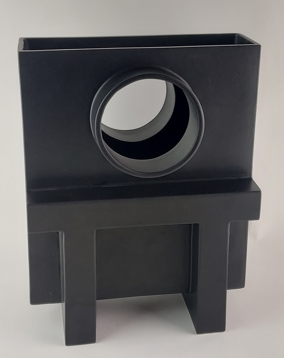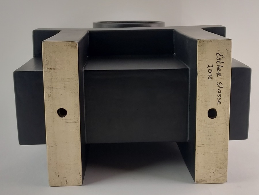 Vaso a blocco rettangolare con smalto nero e due fori rotondi sui lati. Parte inferiore firmata e datata 2010. Provenienza: Galerie Carla Koch 2010.