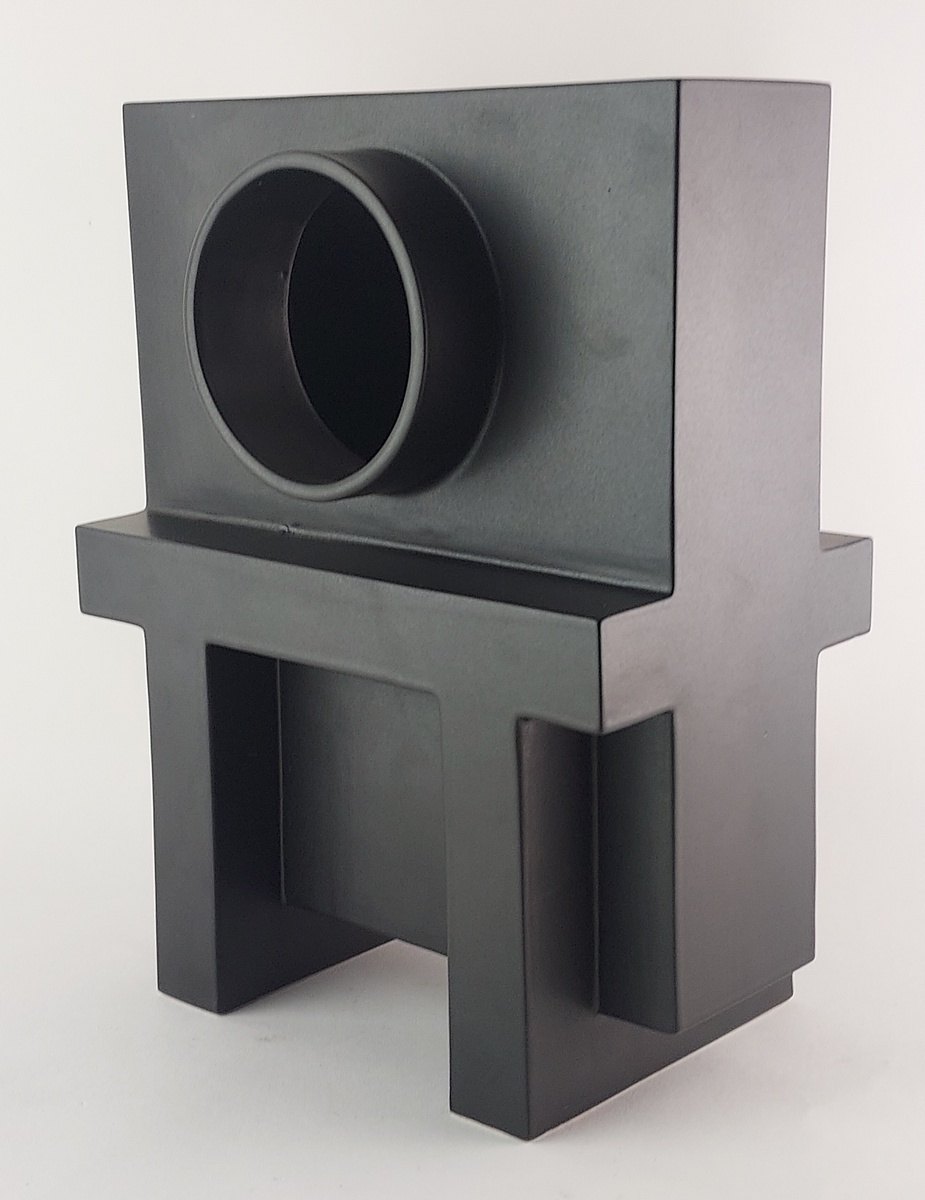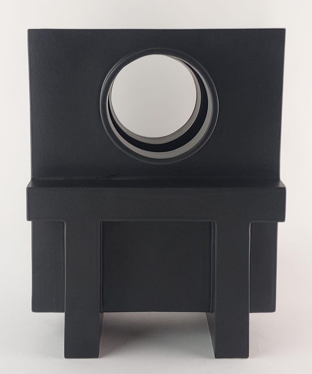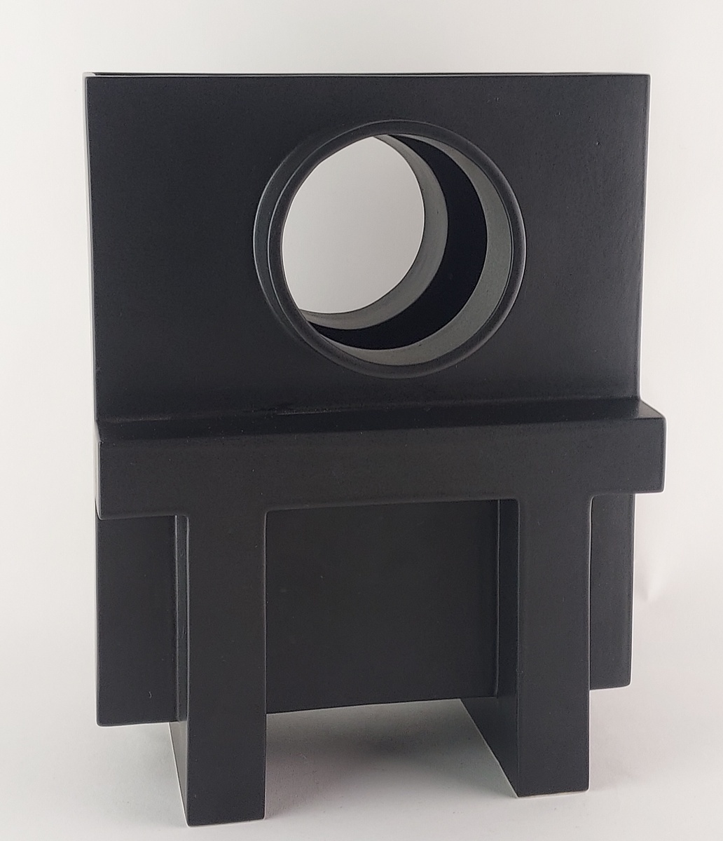 Vaso a blocco rettangolare con smalto nero e due fori rotondi sui lati. Parte inferiore firmata e datata 2010. Provenienza: Galerie Carla Koch 2010.