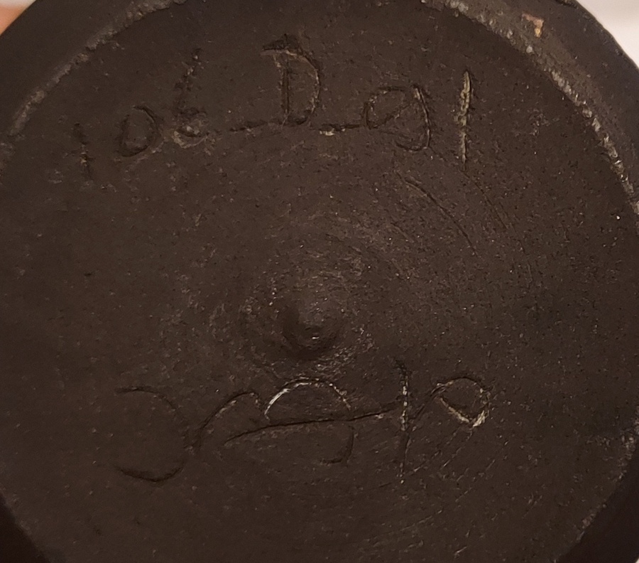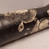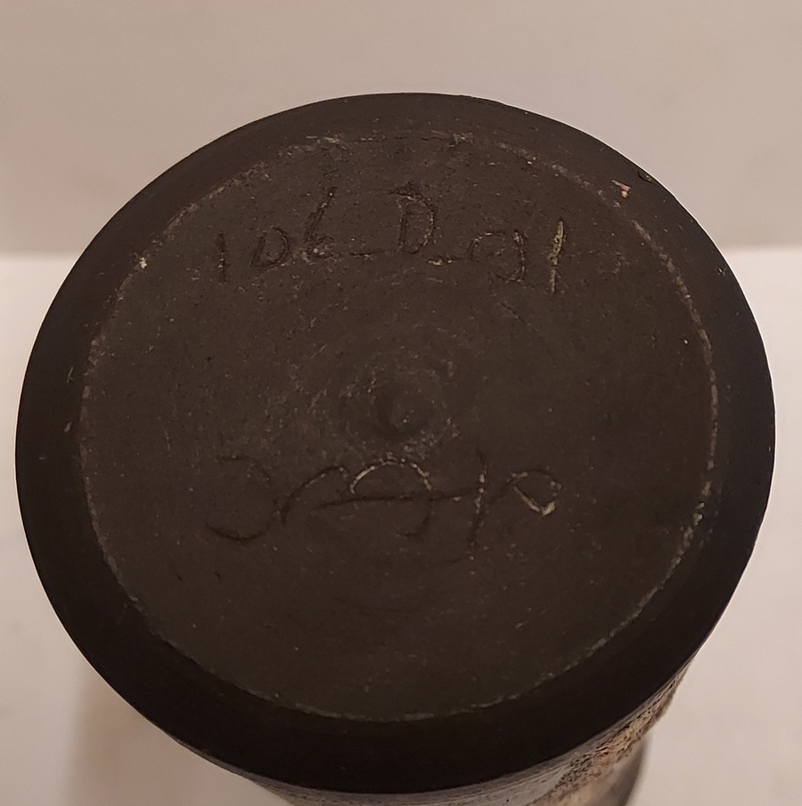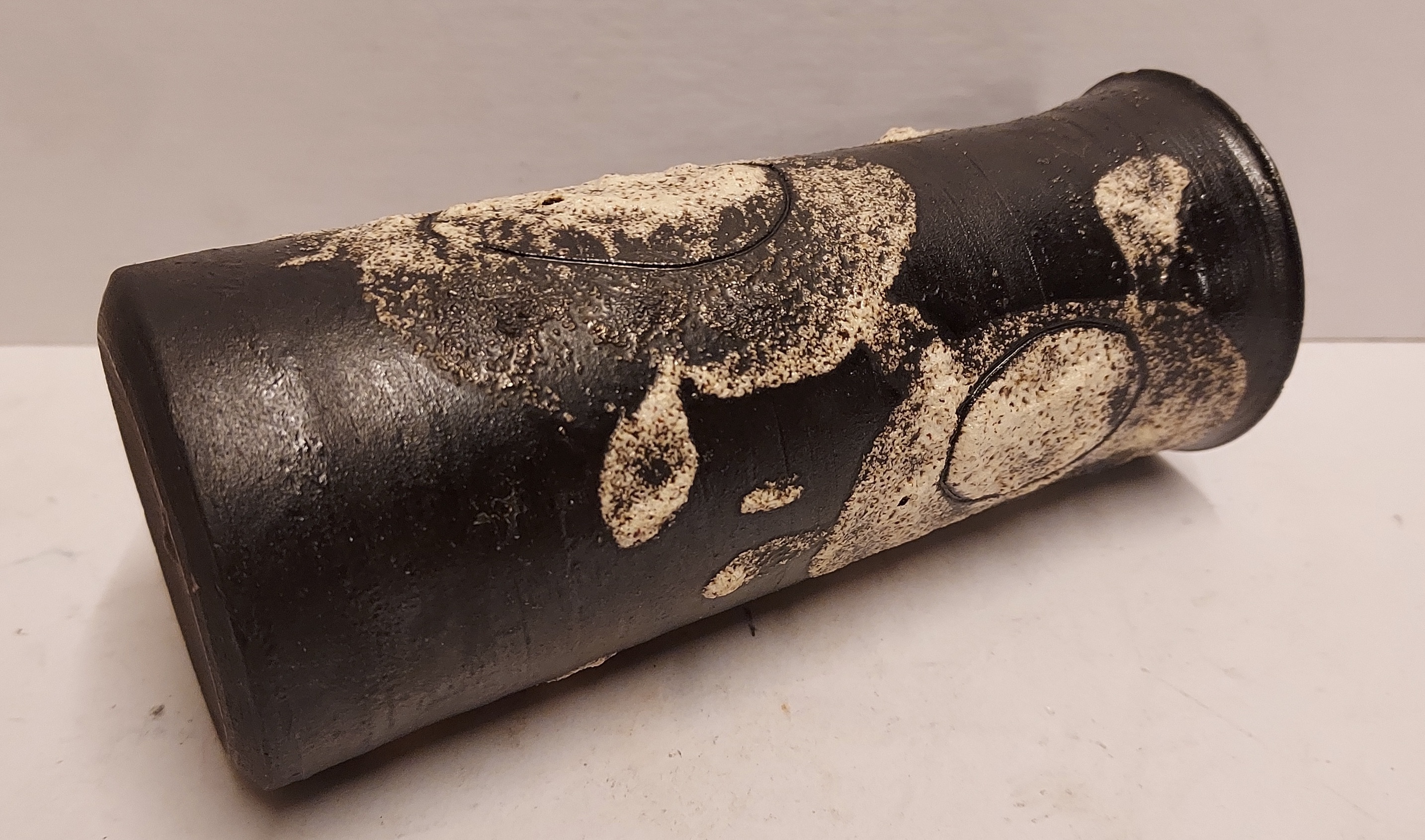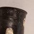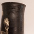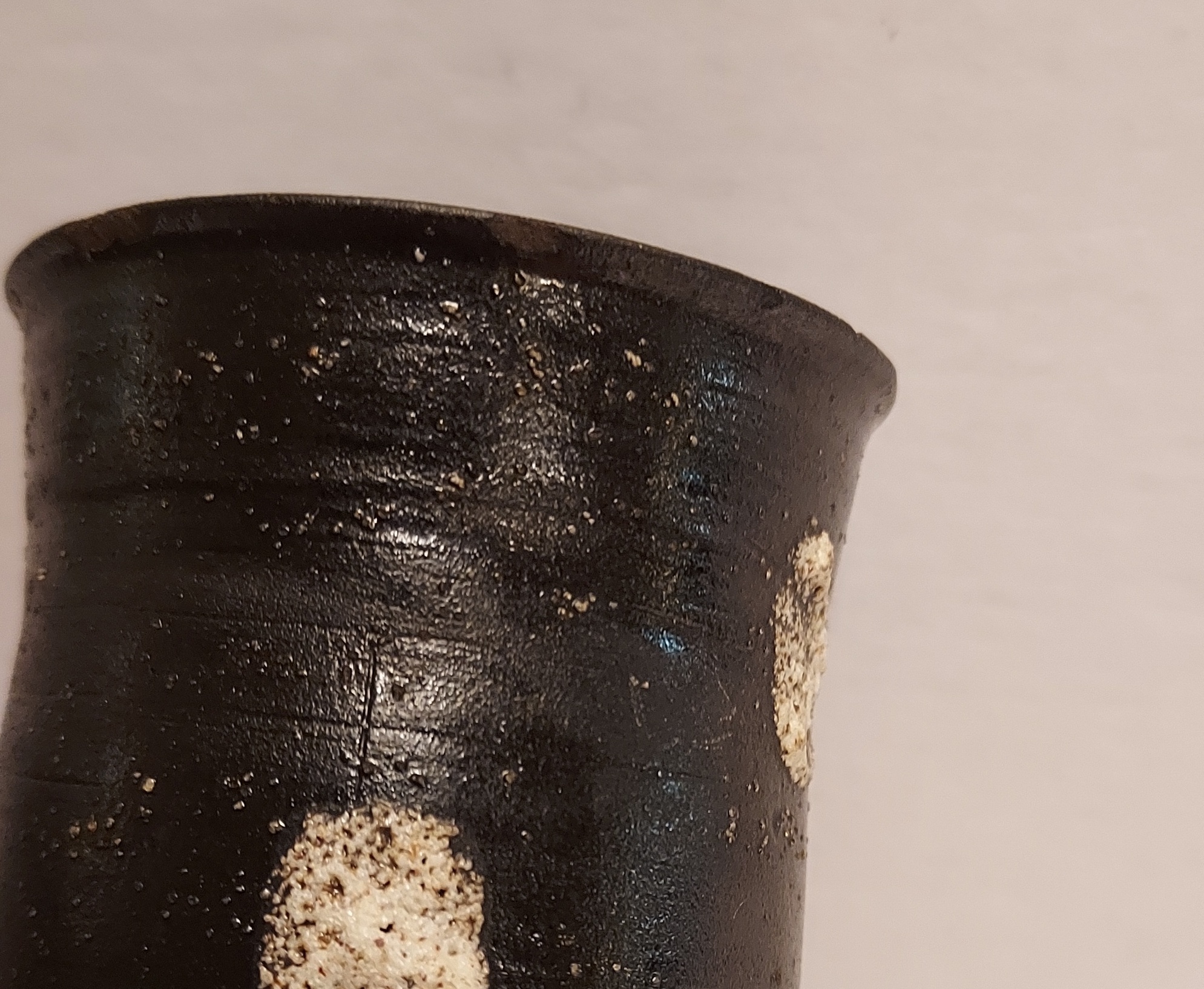 Vasetto smaltato in nero con decoro astratto Cobra in bianco. Parte inferiore firmata.