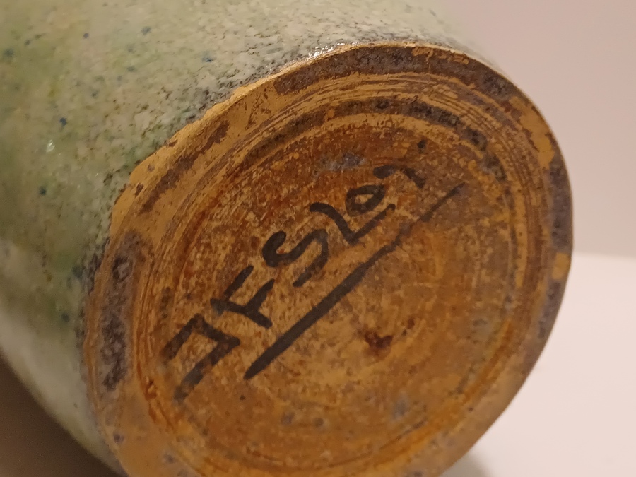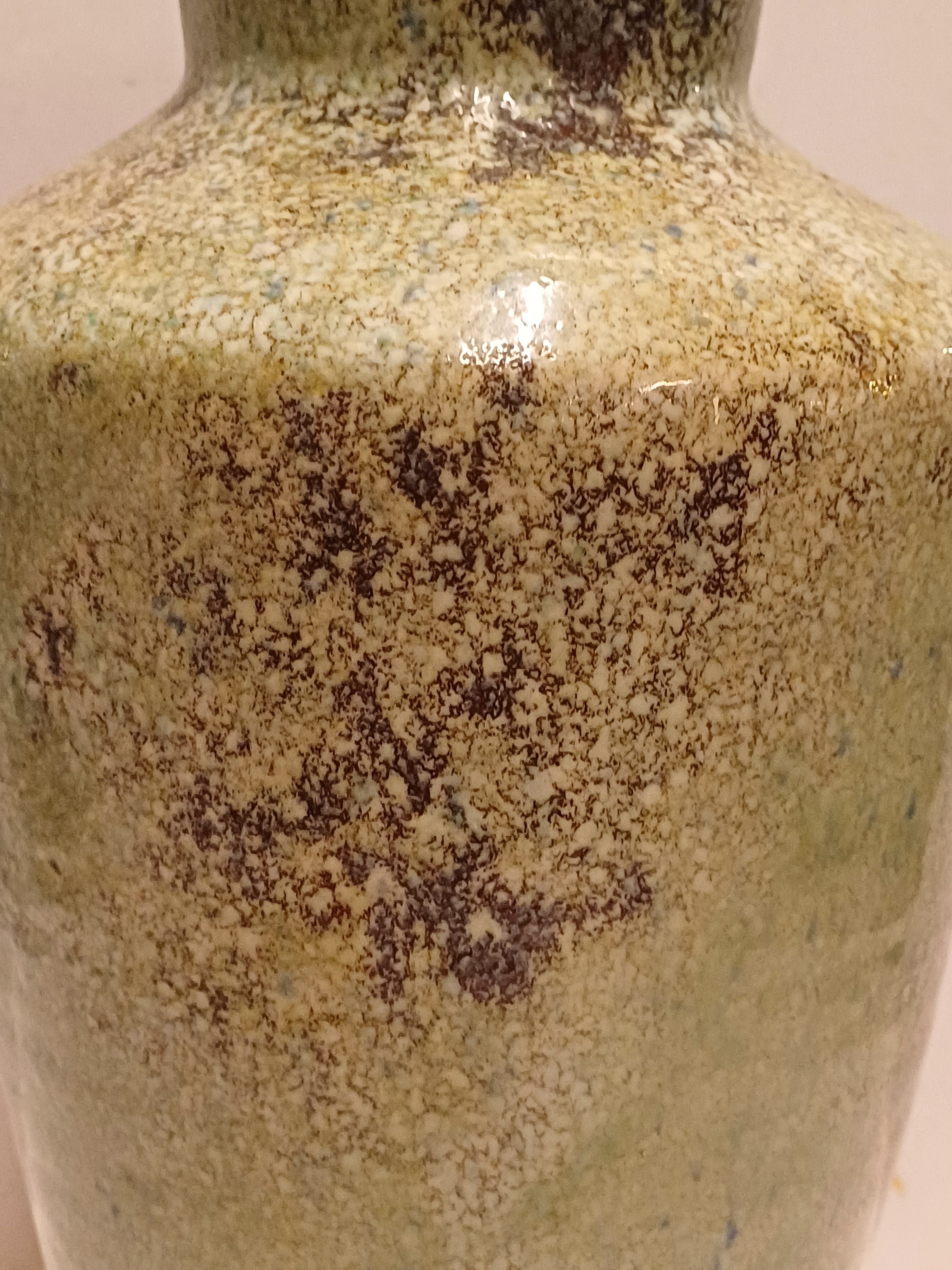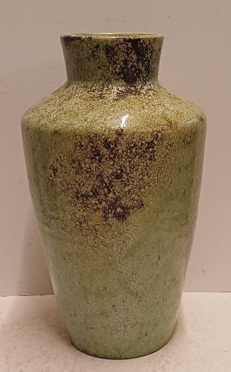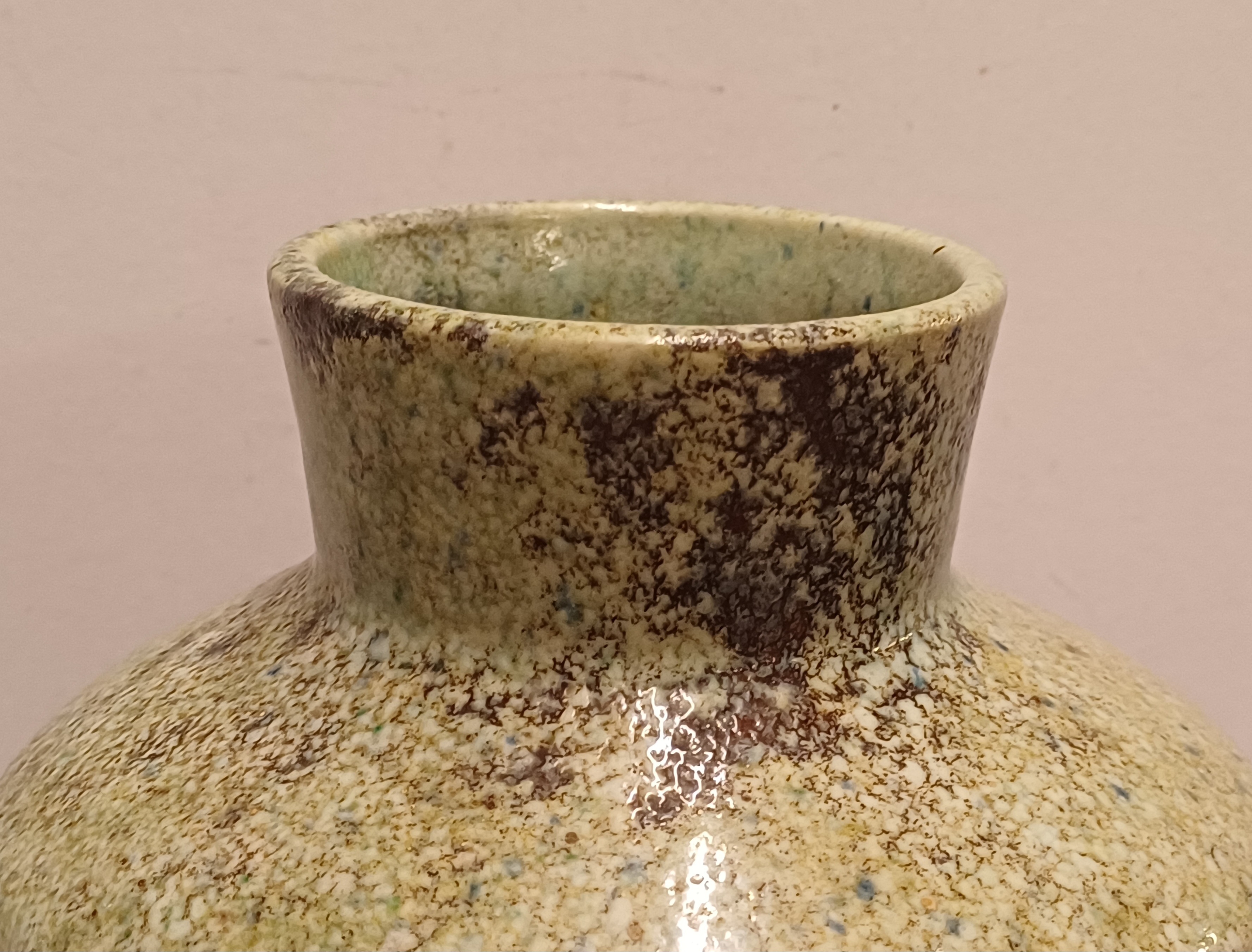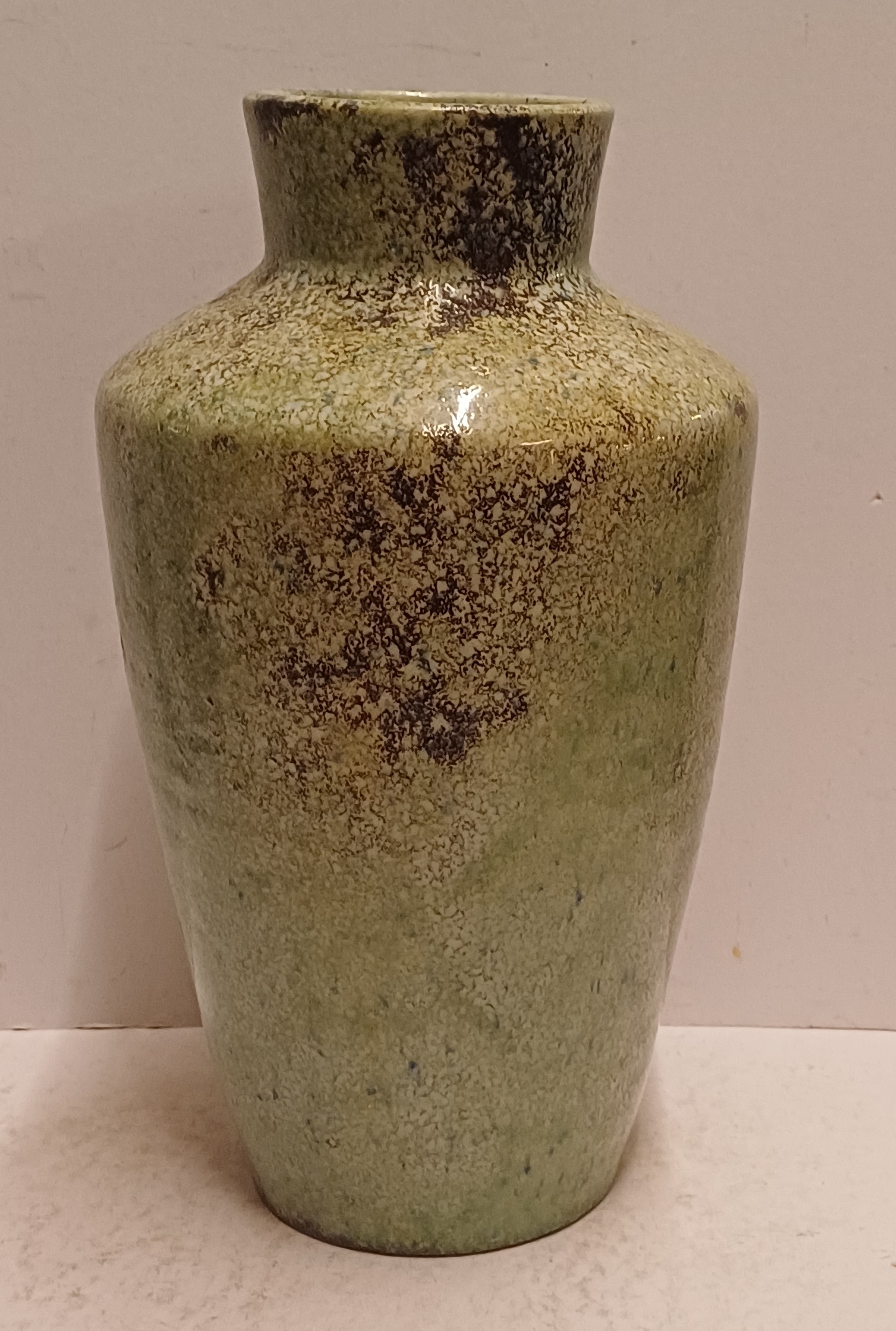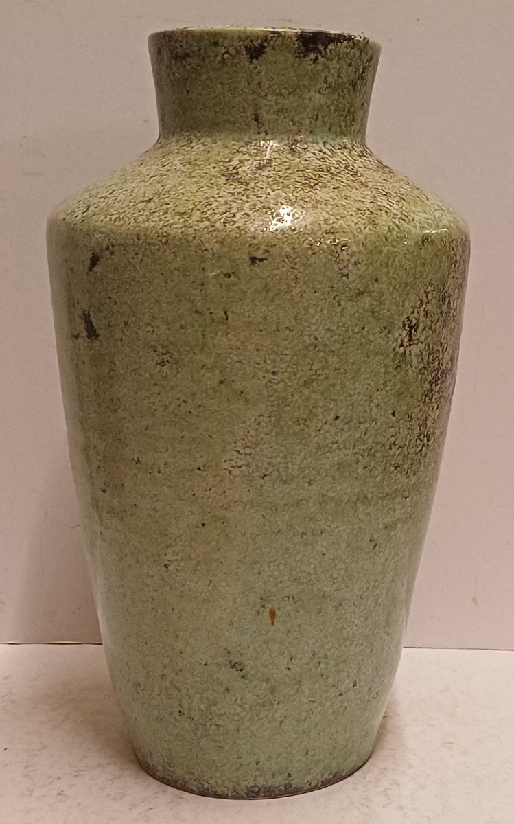 Grote vaas met groene snakeskin glazuur. Onderzijde gesigneerd