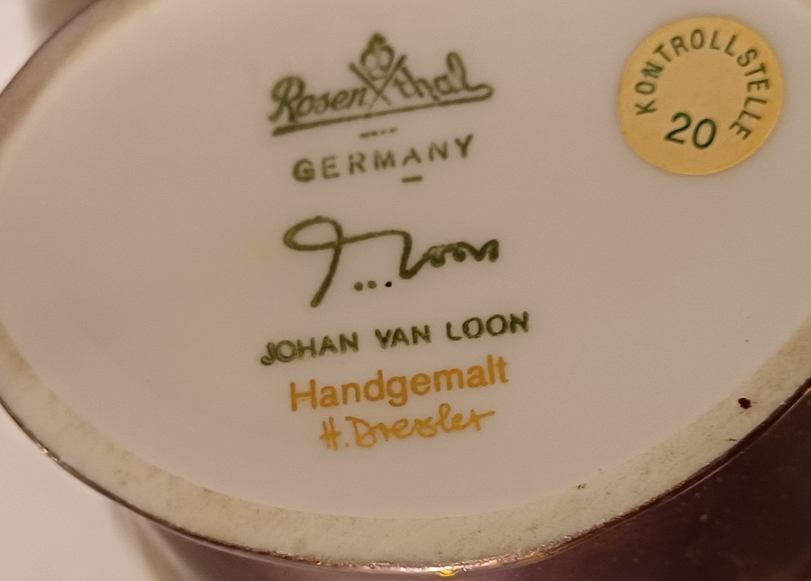 Vaso in porcellana con decoro in smalto lustrato. Design di Johan van Loon, realizzazione Rosenthal.