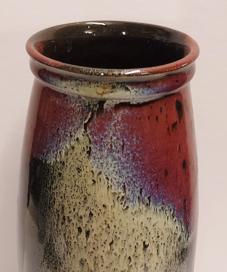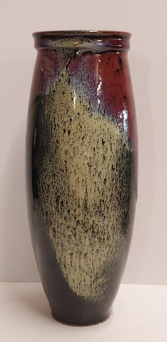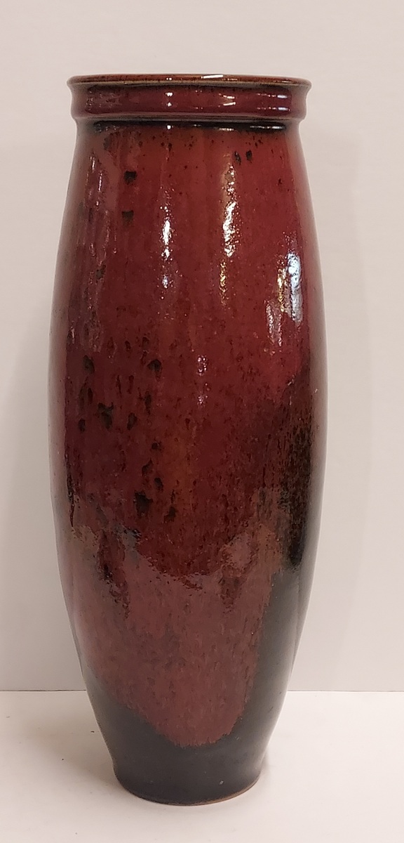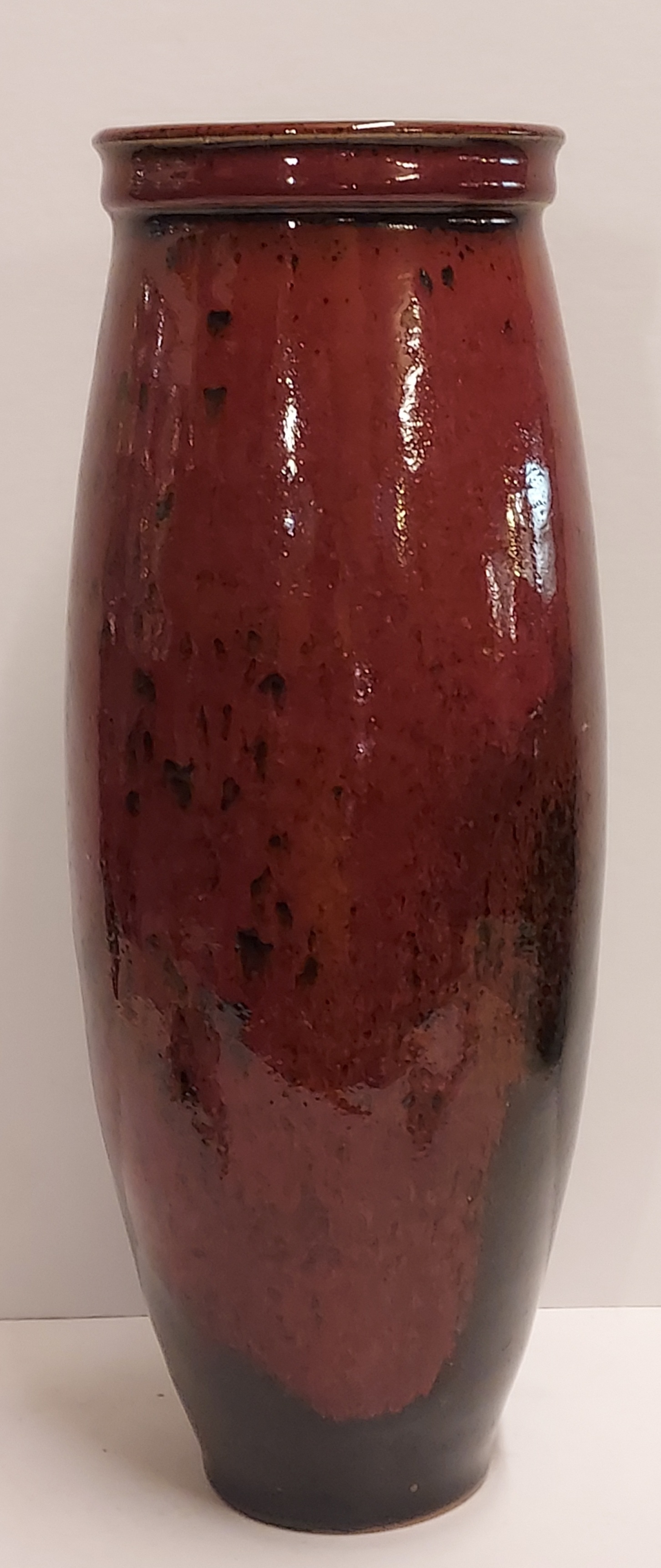 Vaso allungato con smalto Sang de Boeuf rosso. Parte inferiore non marcata.