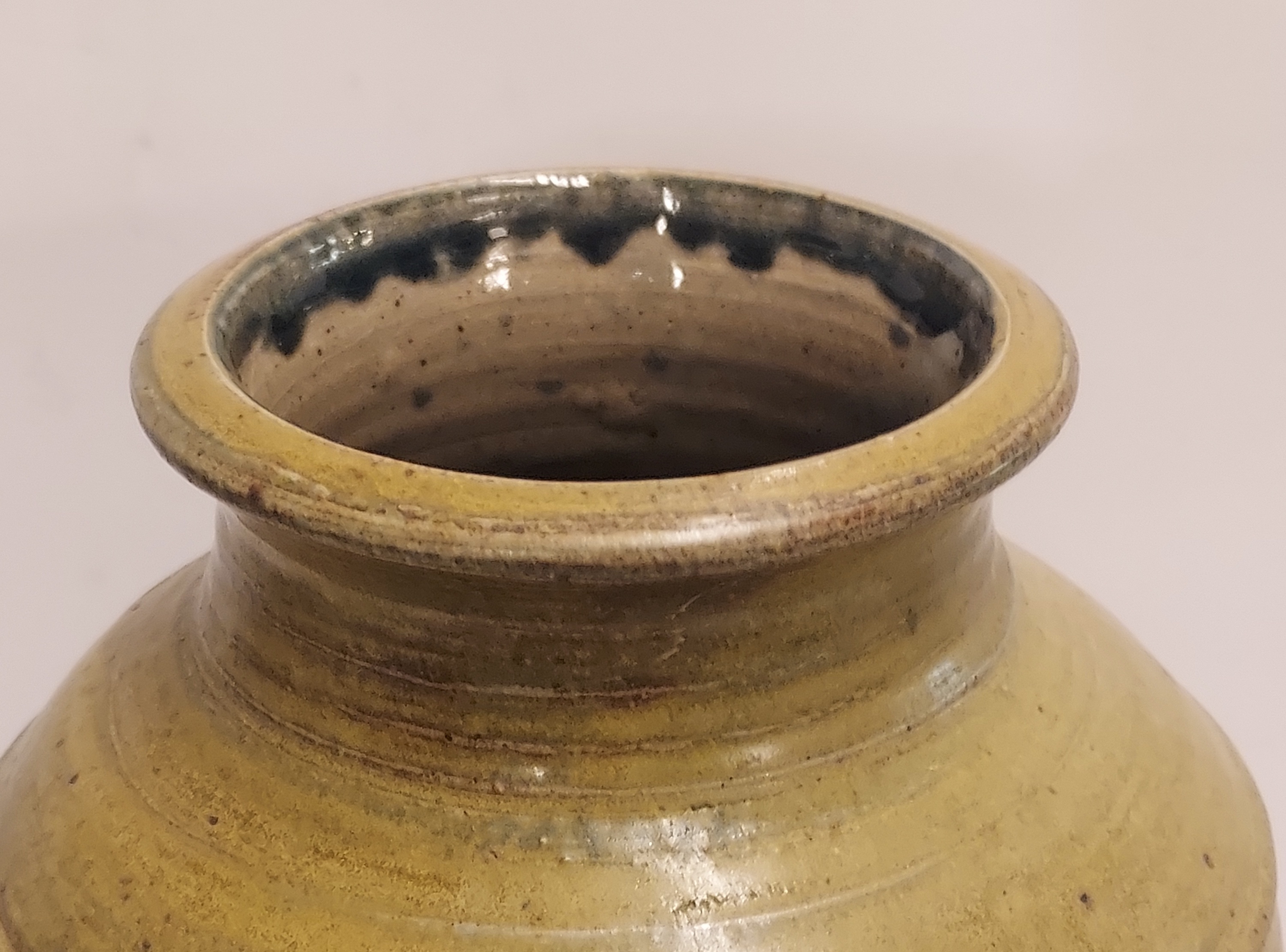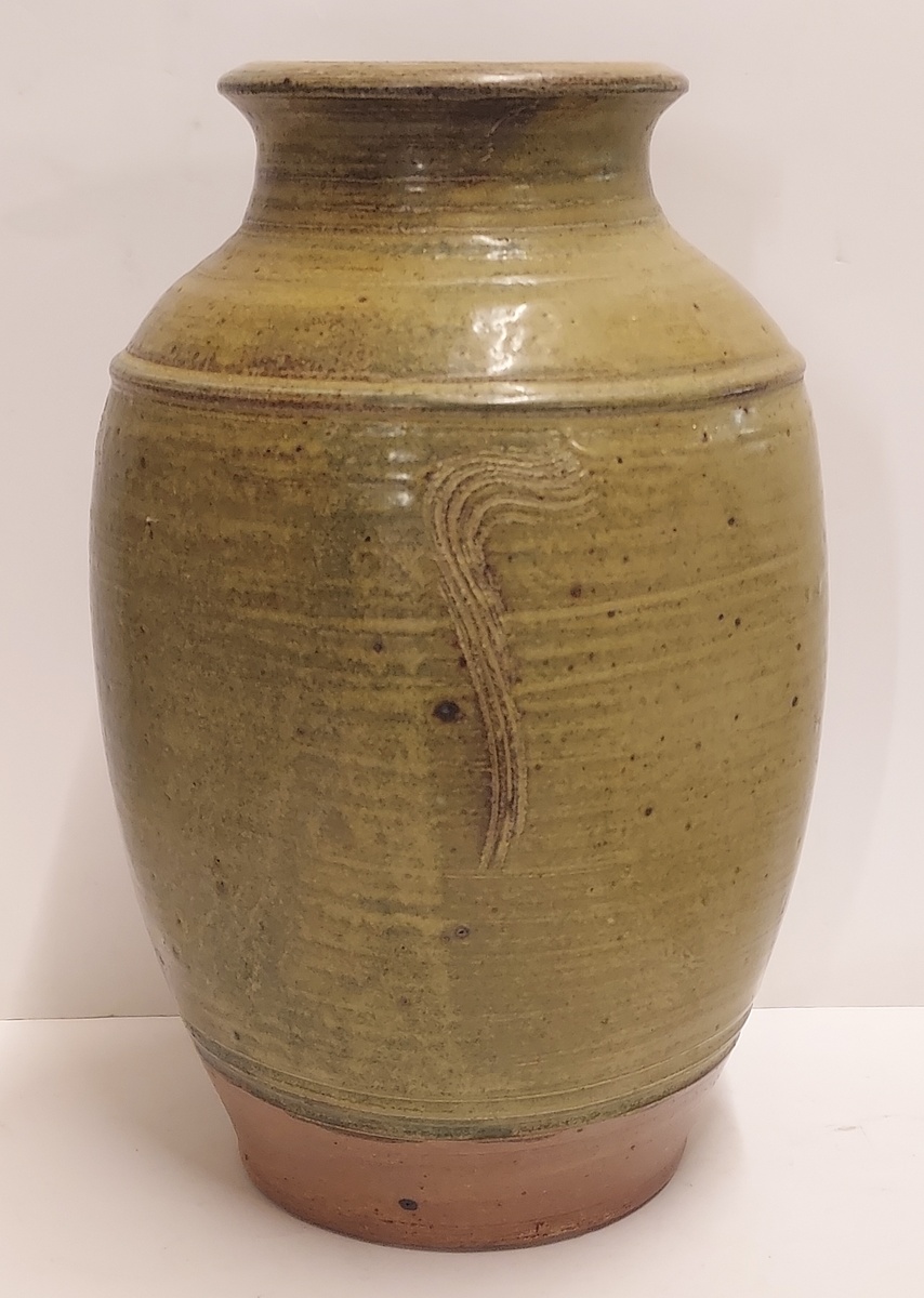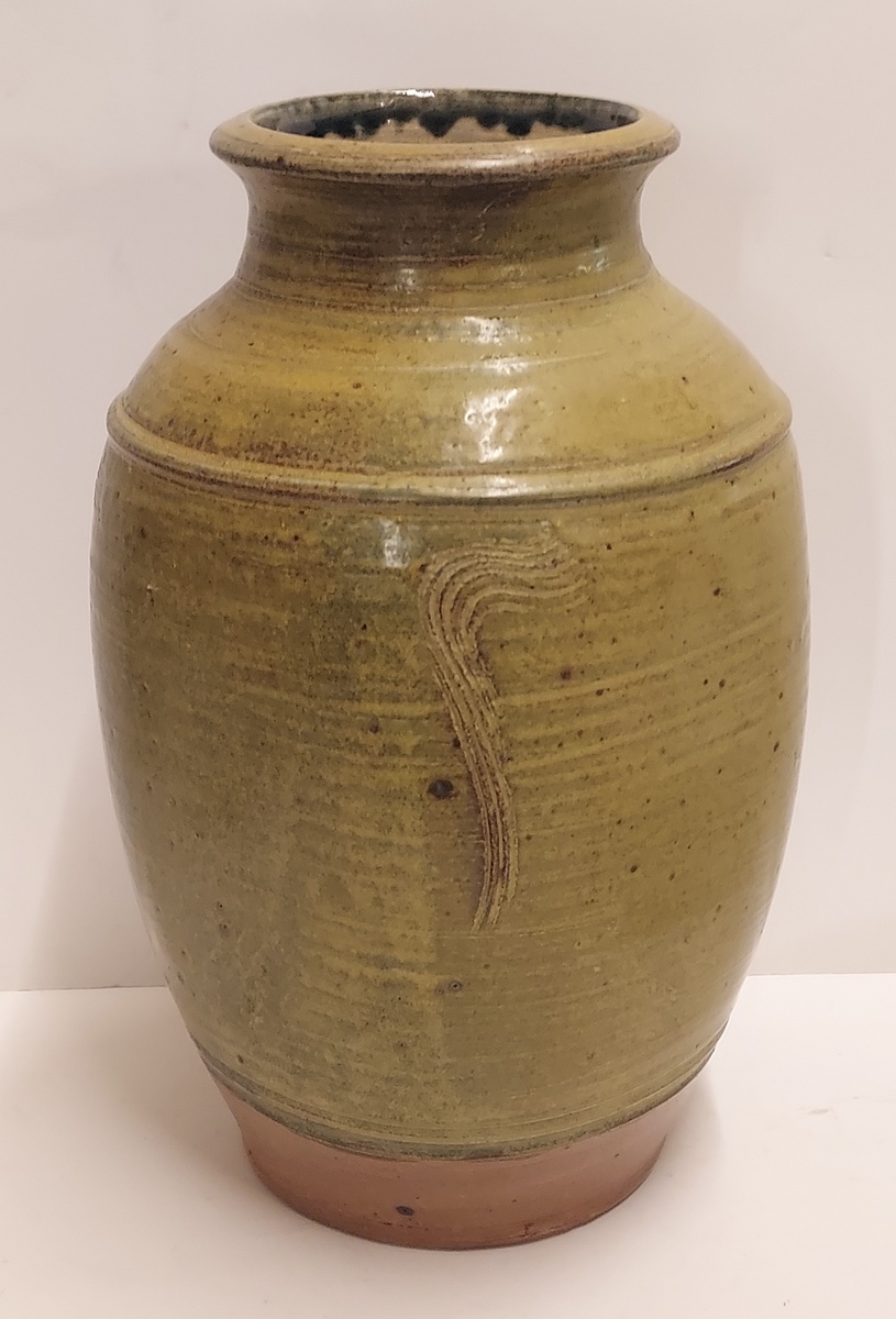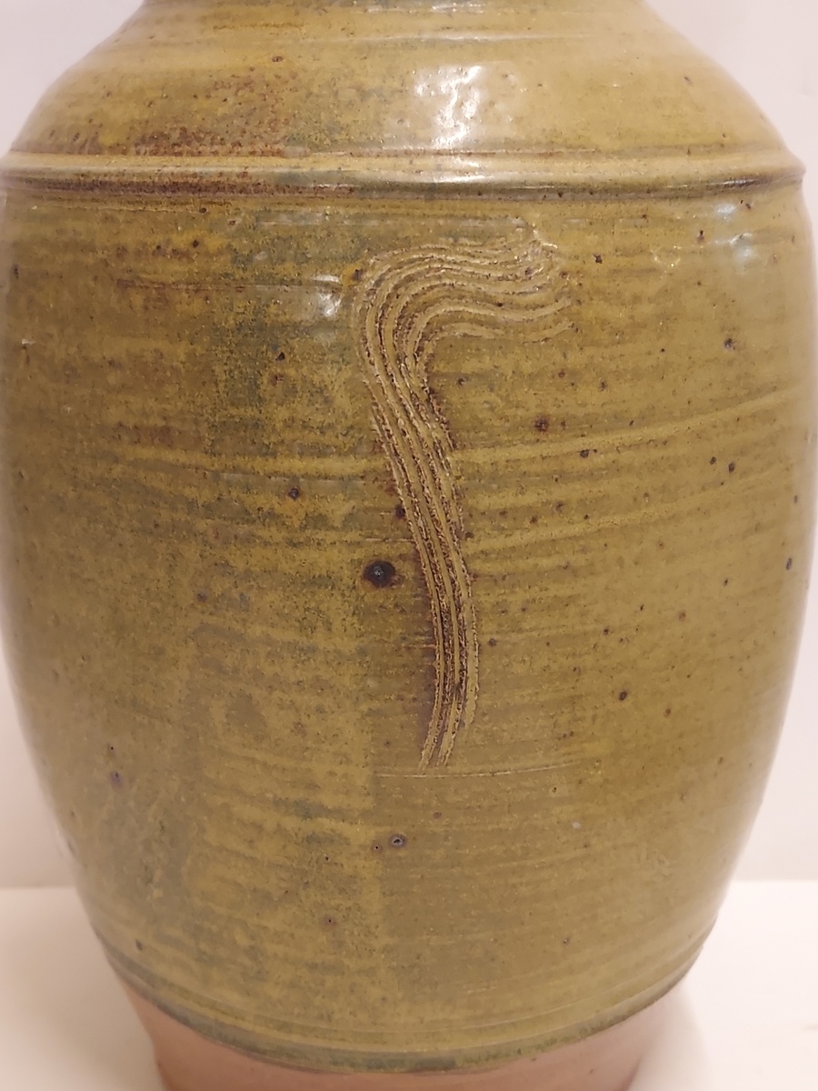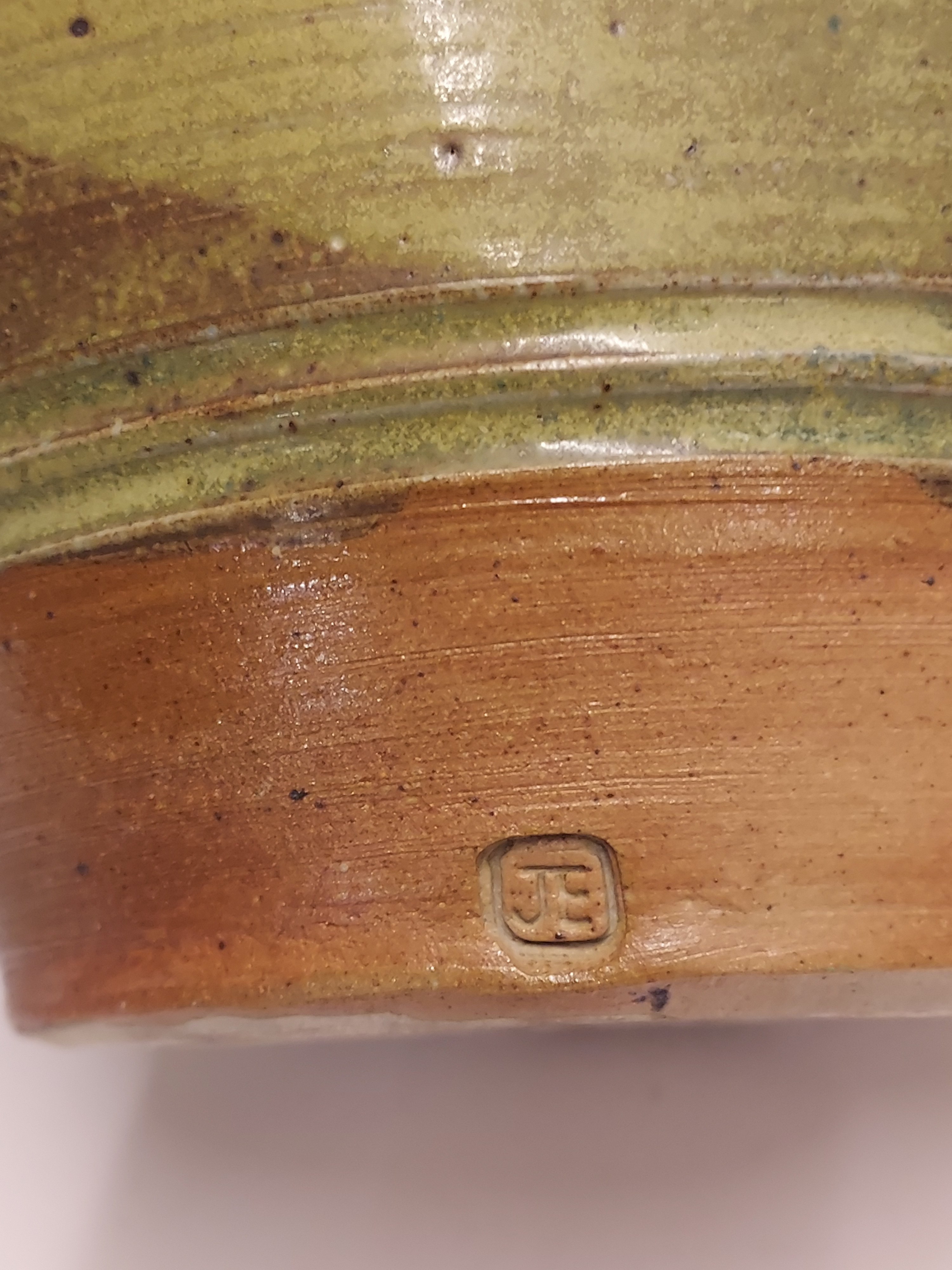 Grande vaso modello con smalto marrone-verde e incisioni. Firmato sul bordo con monogramma JE.