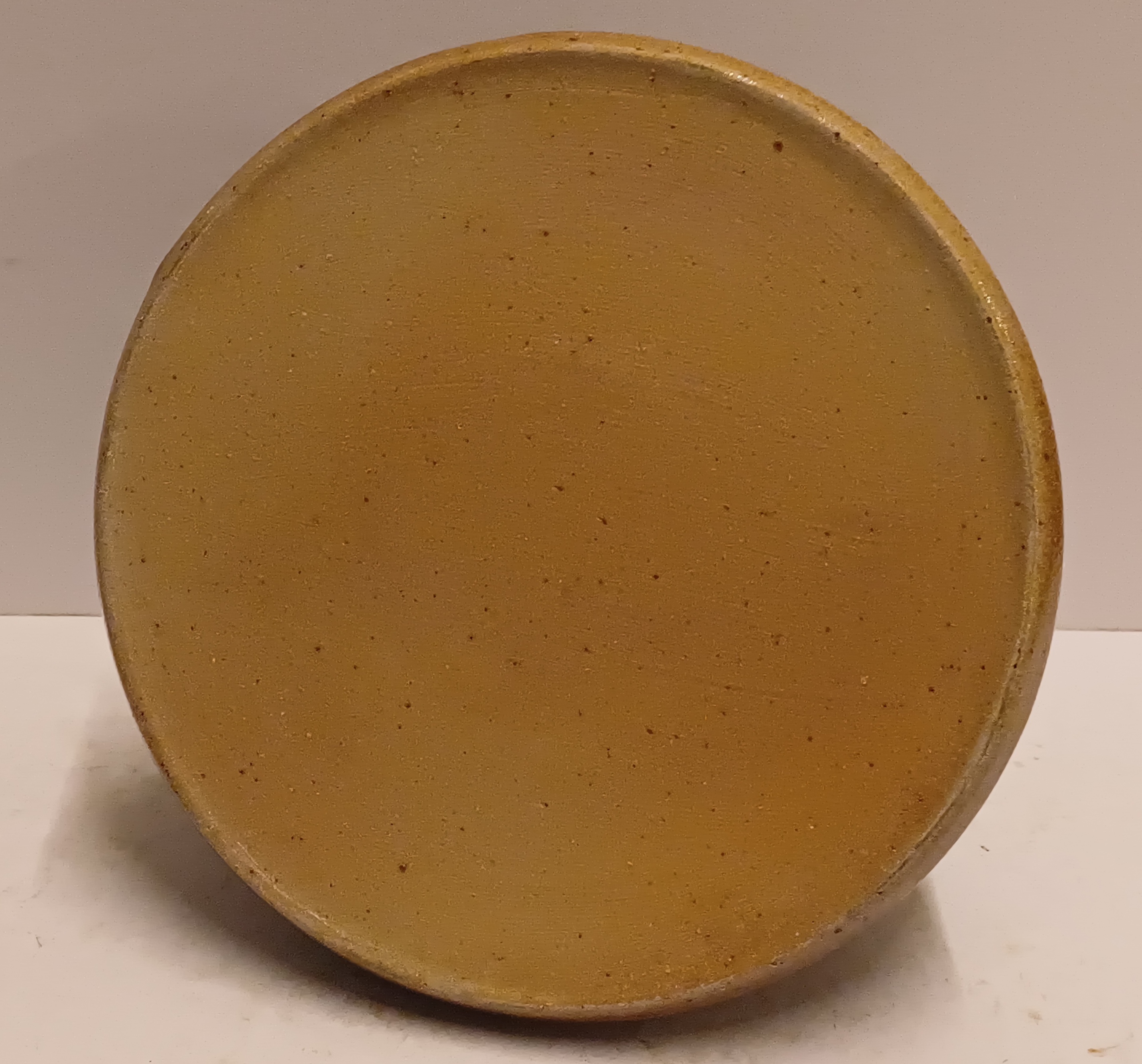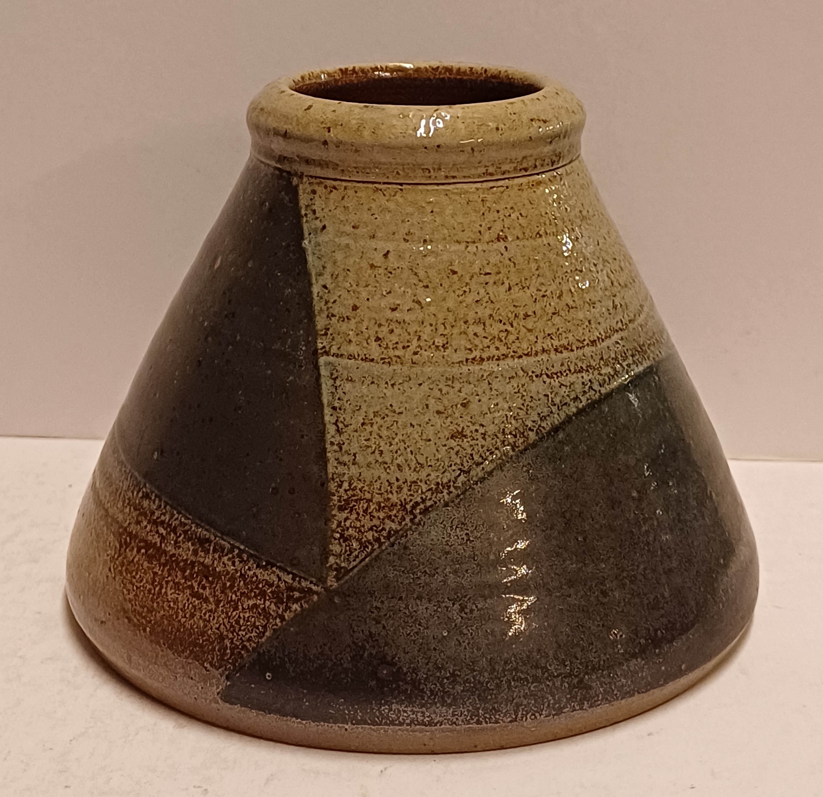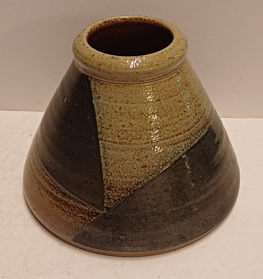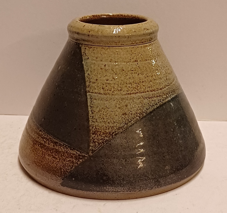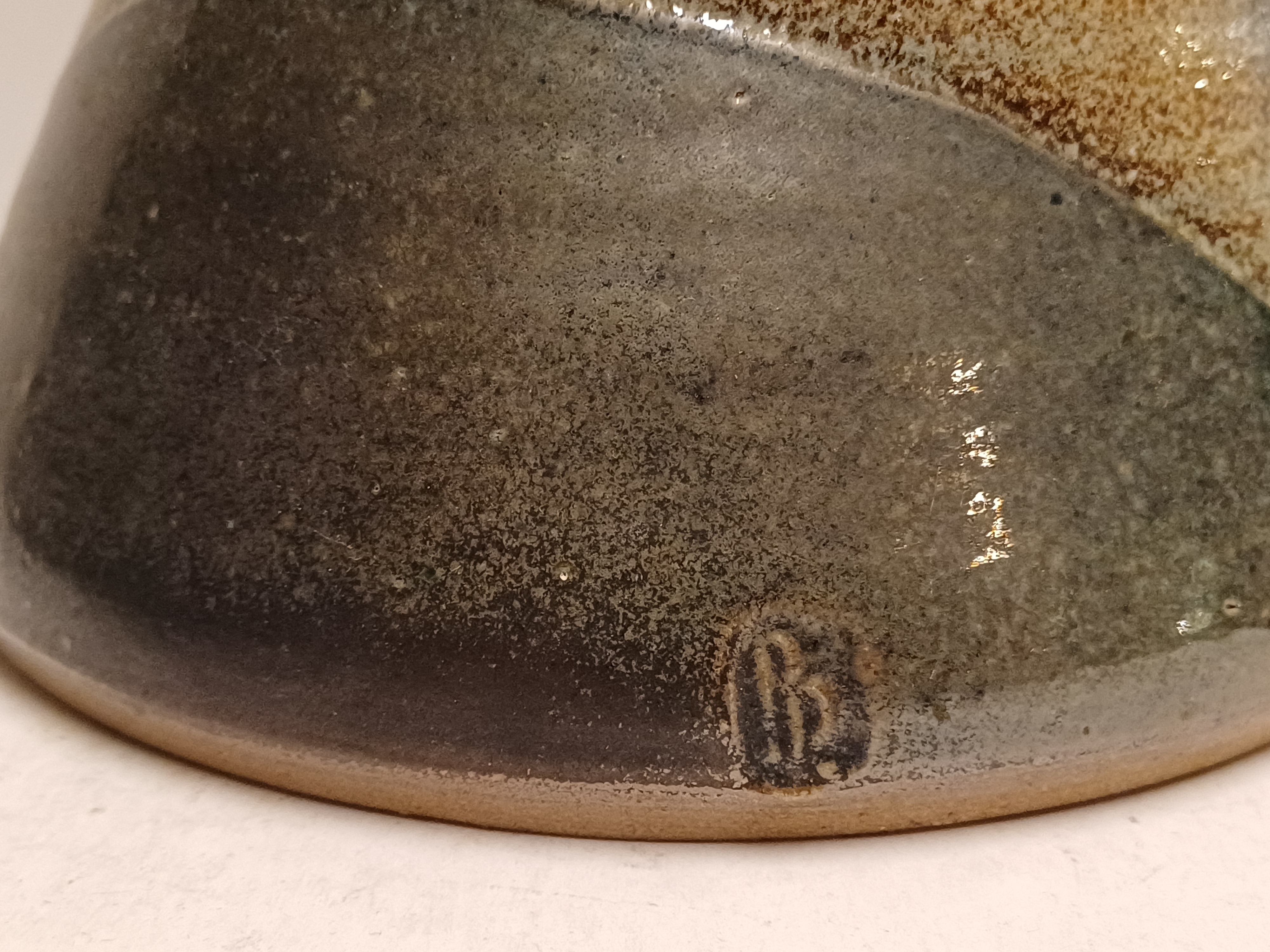 Steengoed vaas met gres glazuur, zijkant gemerkt met monogram.