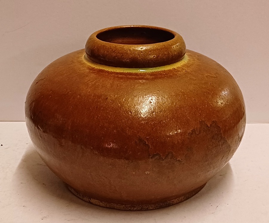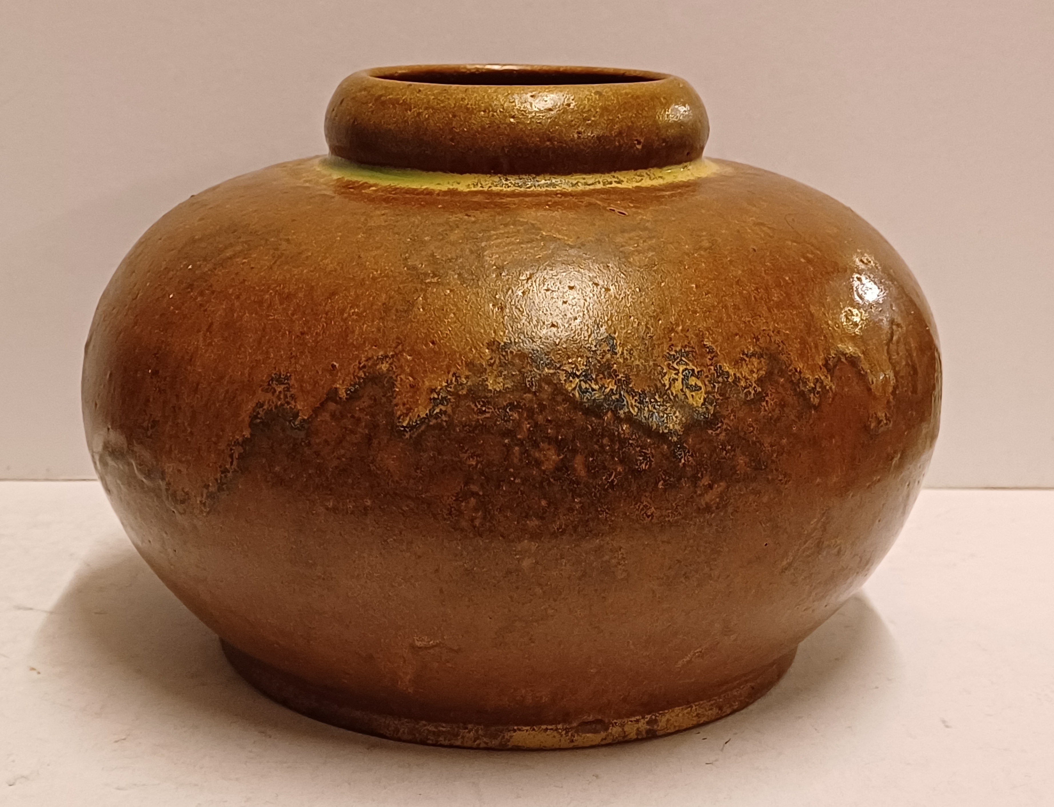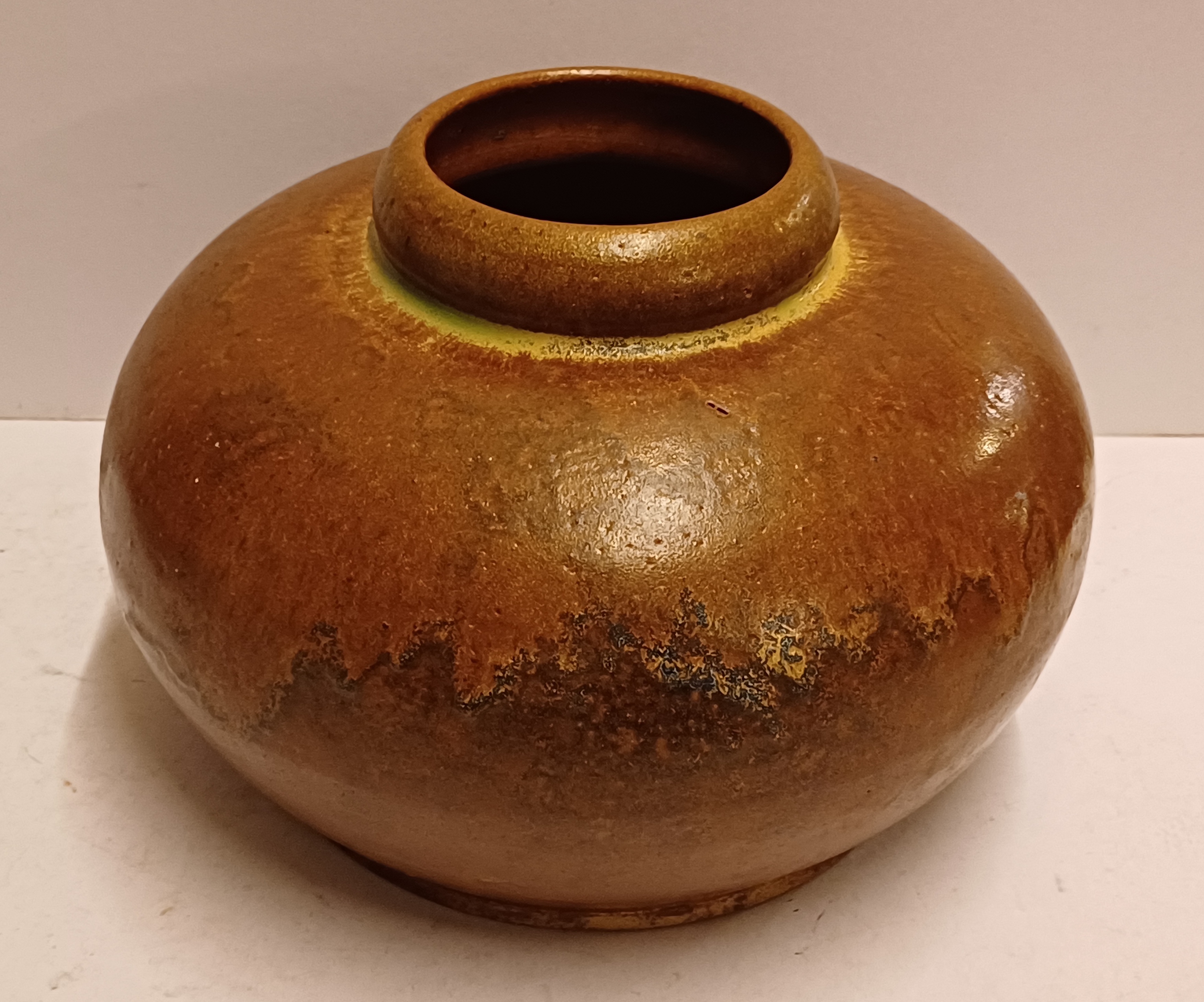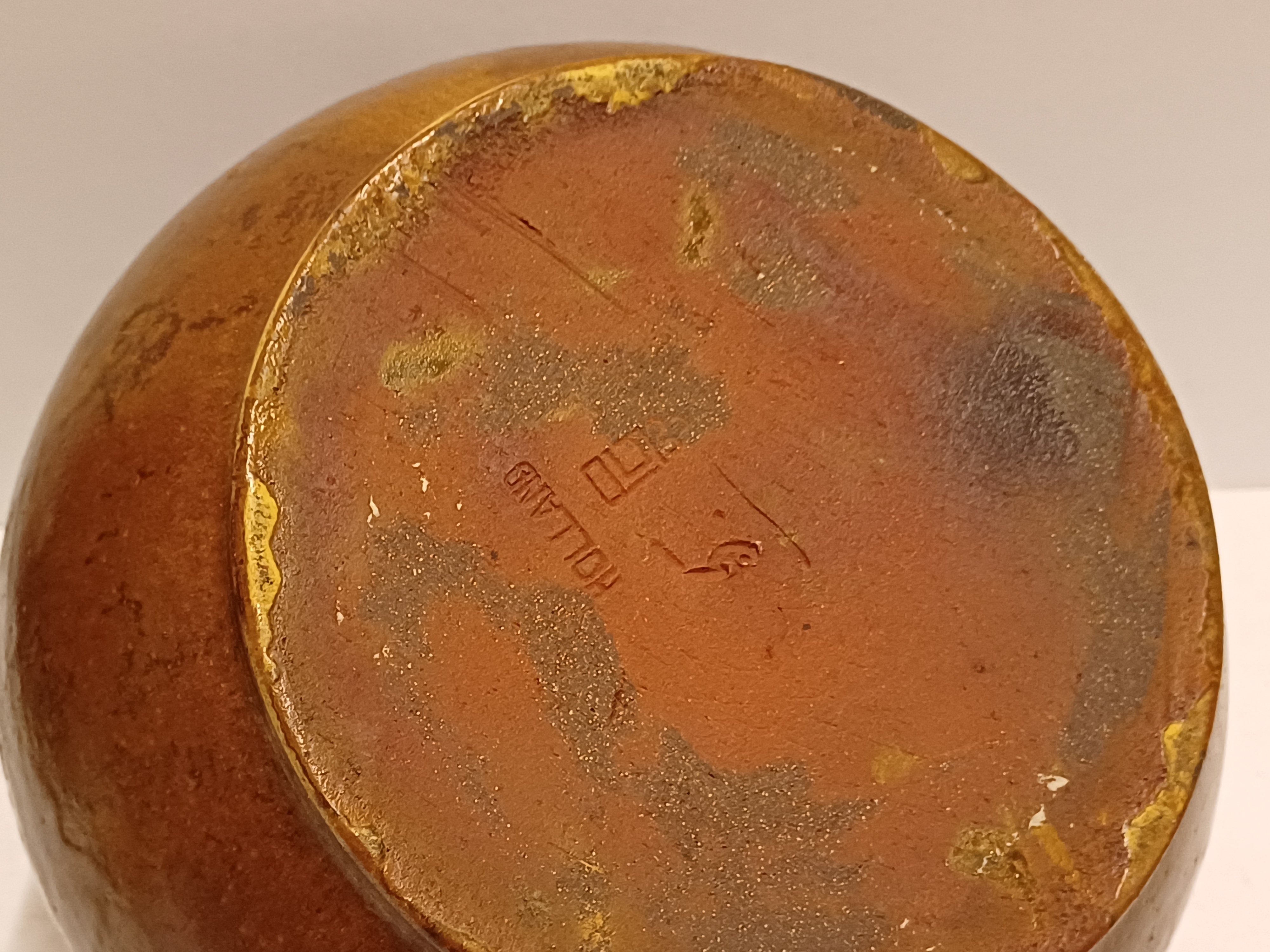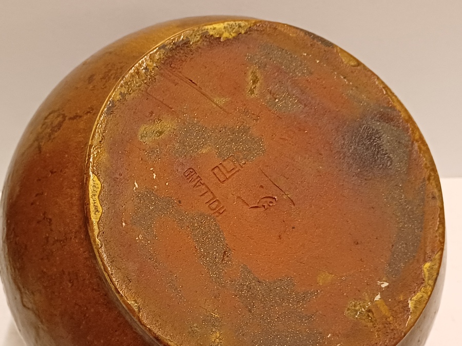 Forse vaas met bruine glazuur en typerende Groeneveldt hals. Onderzijde gestempeld merk